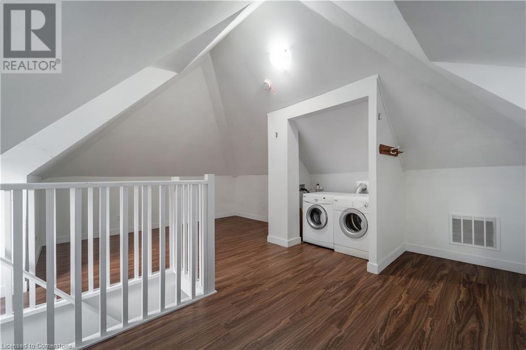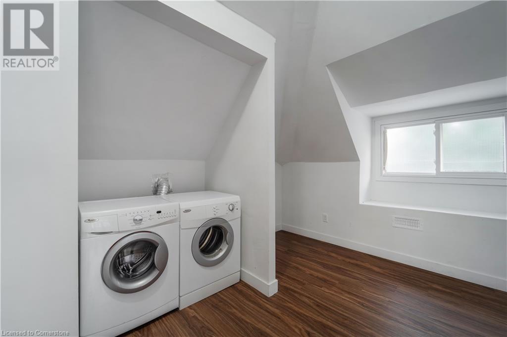 This well maintained detached duplex in Hamilton offers prime location benefits. Just 1 km from Hamilton West Harbour and Hamilton Go Centre Stations, steps from General Hospital, it provides seamless commuting options with public transit and bike lanes at your doorstep. The property offers excellent potential and includes two in suite laundry. Spacious main floor unit has 1 bedroom, 1 full bath, in-suite laundry and a door to walk out backyard and deck! Upper unit offers 2 bedroom, 1 bath and a huge attic enclave that can be used as a 3rd bedroom as well as in suite laundry. This property works well for an investor or a Buyer that can live in one unit and help pay the mortgage with the other! (id:55009)