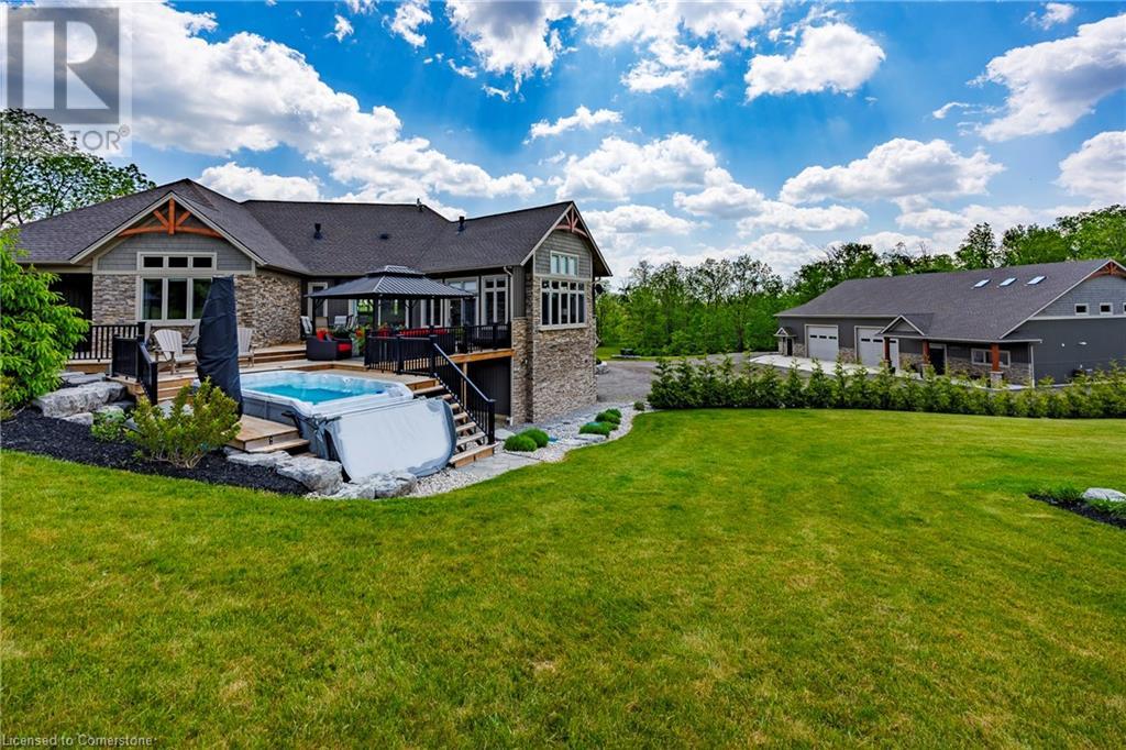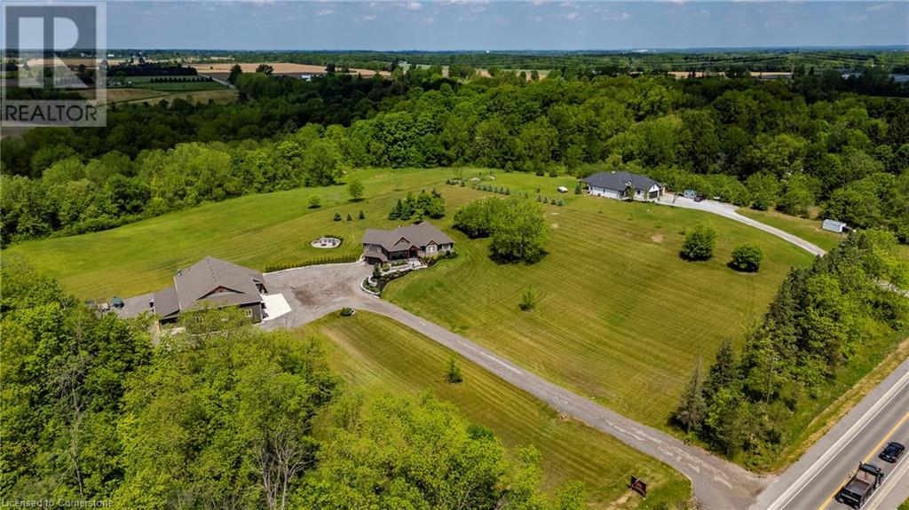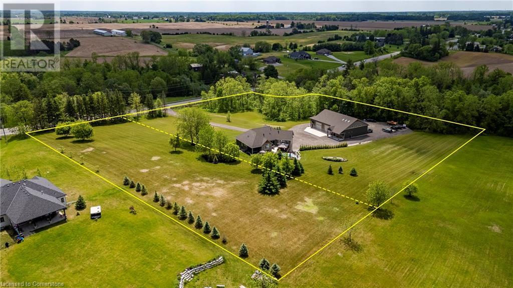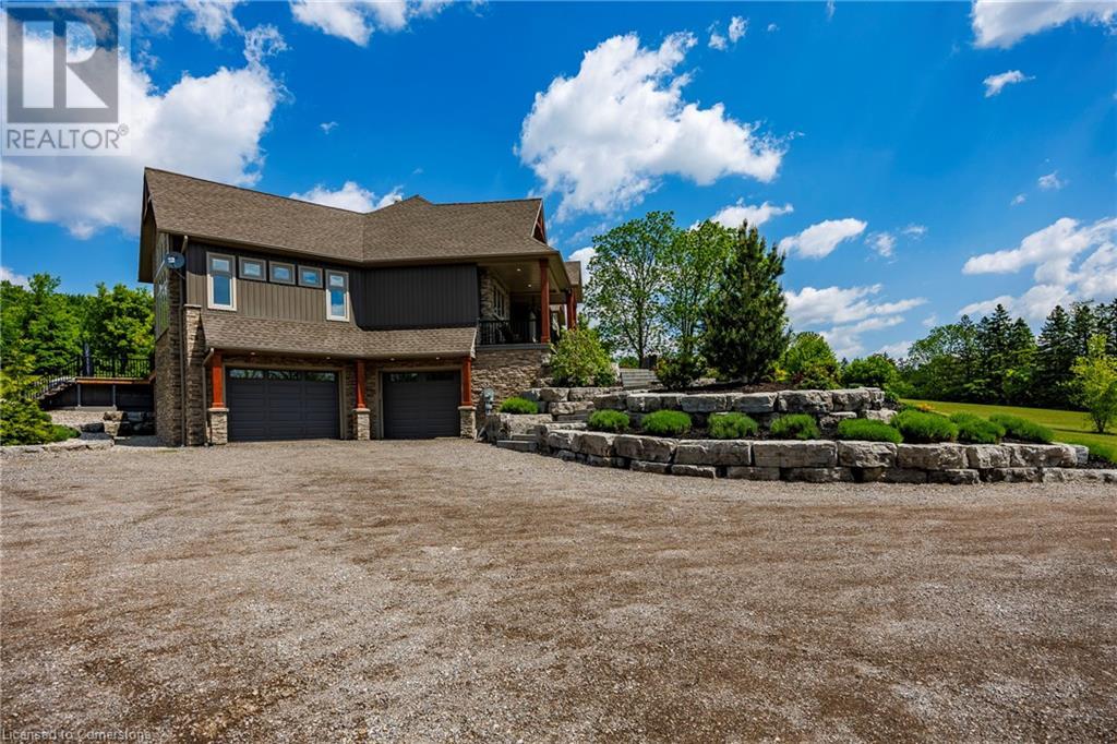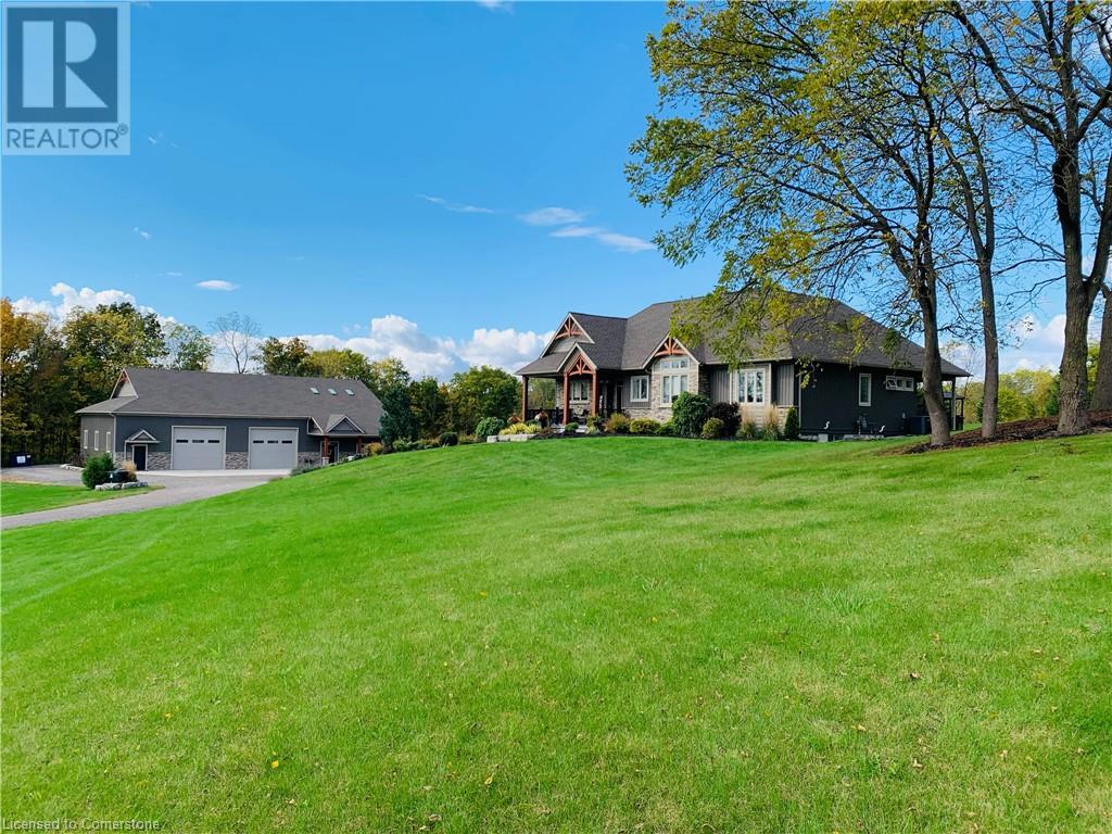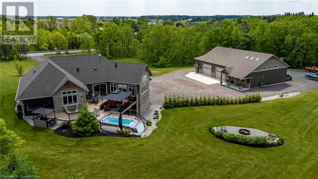 Welcome to your own private oasis nestled on 5+ acres of pristine land, where luxury and serenity converge in this custom-built masterpiece. As you approach the property, you will notice the mature trees surrounding the home, along with low maintenance gardens, 100 tonnes of armour stone, and tailored concrete steps leading to the front entrance. Step inside, and be greeted by a sense of warmth and opulence. From soaring ceilings to custom finishes, every detail has been thoughtfully curated to create an atmosphere of luxury. This home boasts an impressive 3600+ square feet of meticulously crafted living space that features a custom-built kitchen with built-in appliances, Quartz countertops, and porcelain plank flooring throughout the main level. Imagine unwinding after a long day amidst the soothing waters of the decked-out swim spa, surrounded by lush greenery and the tranquil sounds of an infinity waterfall. Beyond the main residence lies the impressive 5750 square foot shop, build in 2020 a versatile space that offers central Air and heating with endless possibilities. Whether you're a car enthusiast in need of a showroom, a hobbyist looking for a workshop, or an entrepreneur seeking a space for your business, this expansive shop provides the perfect solution. Surrounded by nature's beauty yet just moments from modern conveniences, this estate offers the best of both worlds. Lounging by the swim spa, exploring the sprawling grounds, or gathering around the fire pit on warm summer nights. Do not forget the invisible pet containment fence to keep pets from wandering off the property. Every corner of this property exudes an unparalleled sense of sophistication and style. Welcome to your haven, where luxury merges with serenity, and each day embodies a retreat-like experience. (id:55009)