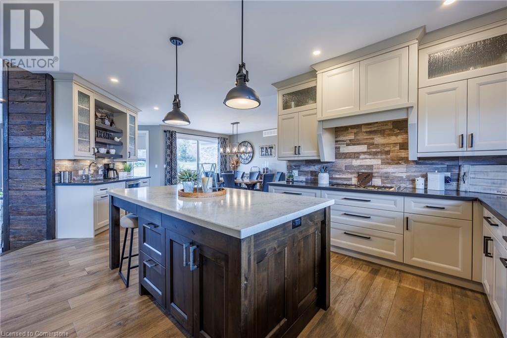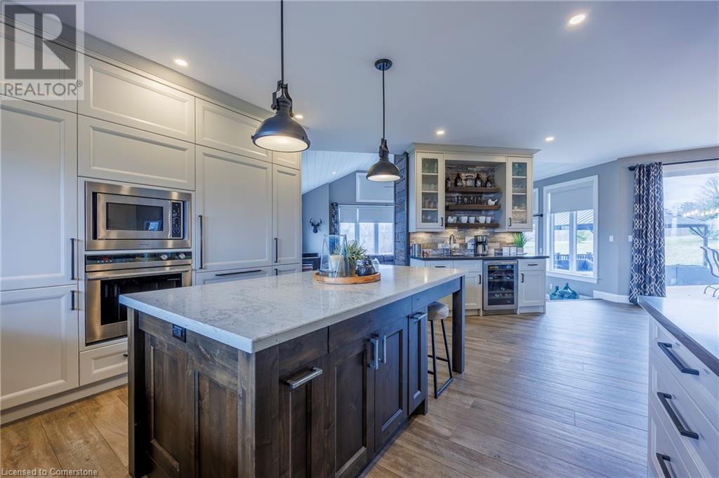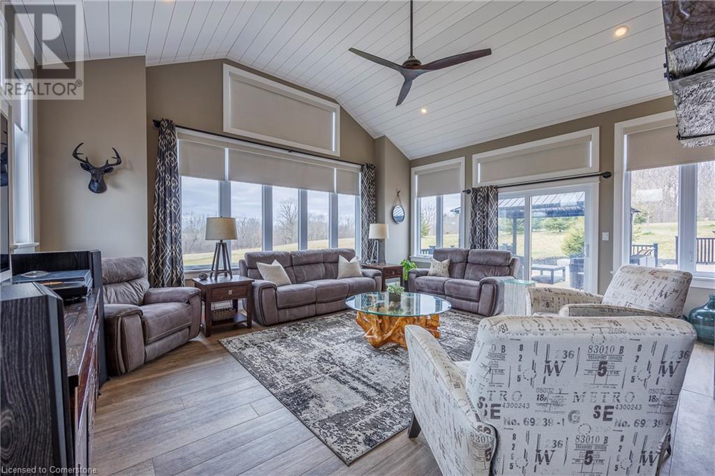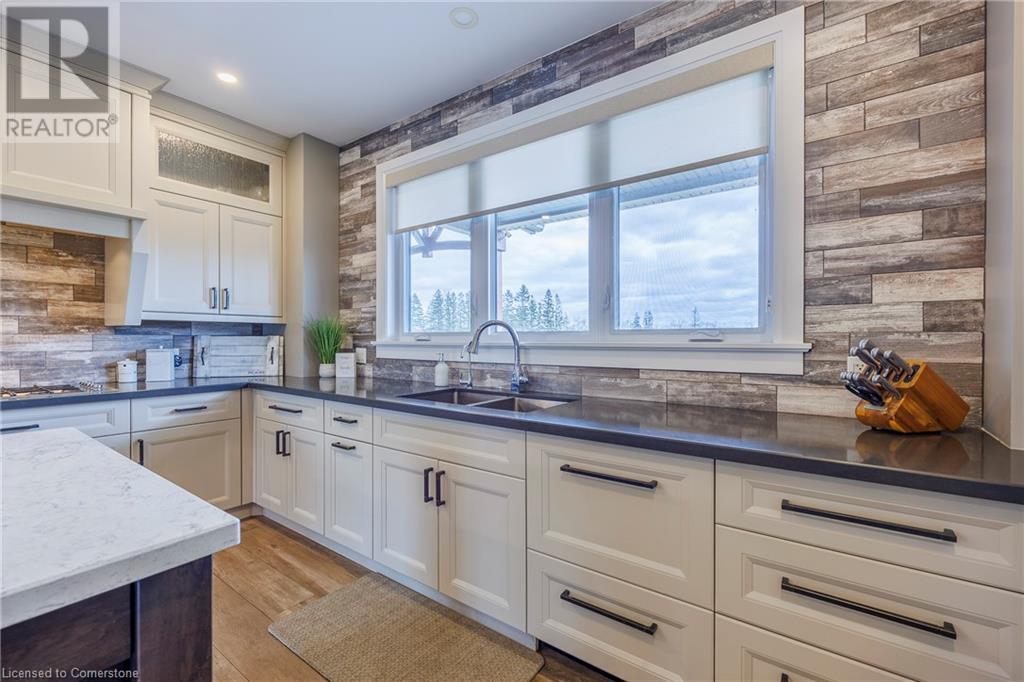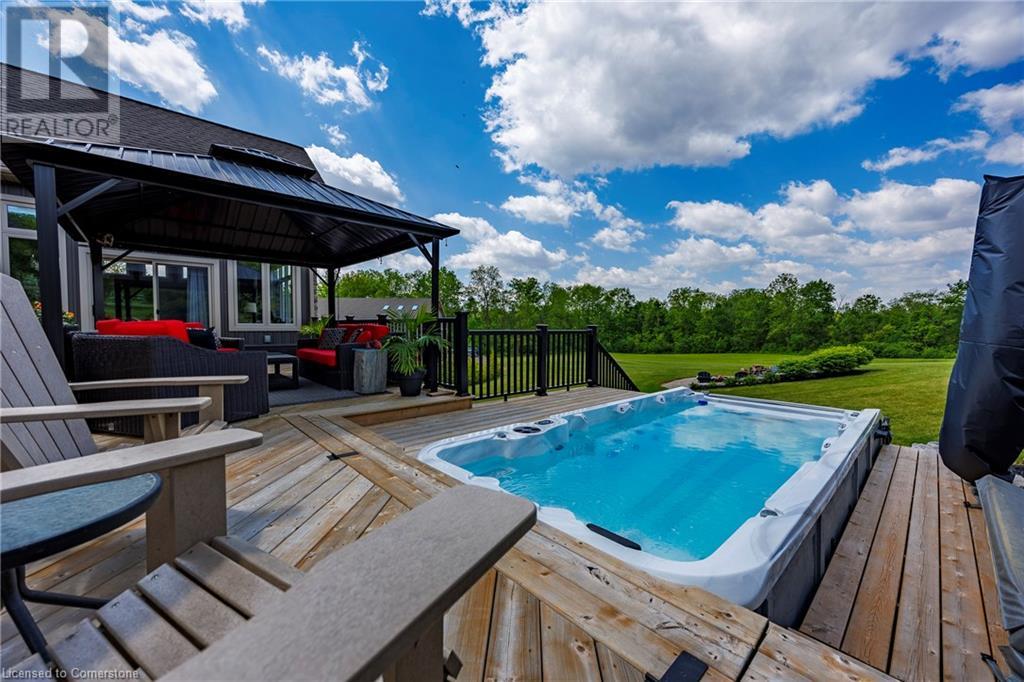 Welcome to your own private oasis nestled on 5+ acres of pristine land, where luxury and serenity converge in this custom-built masterpiece. As you approach the property, you will notice the mature trees surrounding the home, along with low maintenance gardens, 100 tonnes of armour stone, and tailored concrete steps leading to the front entrance. Step inside, and be greeted by a sense of warmth and opulence. From soaring ceilings to custom finishes, every detail has been thoughtfully curated to create an atmosphere of luxury. This home boasts an impressive 3600+ square feet of meticulously crafted living space that features a custom-built kitchen with built-in appliances, Quartz countertops, and porcelain plank flooring throughout the main level. Imagine unwinding after a long day amidst the soothing waters of the decked-out swim spa, surrounded by lush greenery and the tranquil sounds of an infinity waterfall. Beyond the main residence lies the impressive 5750 square foot shop, build in 2020 a versatile space that offers central Air and heating with endless possibilities. Whether you're a car enthusiast in need of a showroom, a hobbyist looking for a workshop, or an entrepreneur seeking a space for your business, this expansive shop provides the perfect solution. Surrounded by nature's beauty yet just moments from modern conveniences, this estate offers the best of both worlds. Lounging by the swim spa, exploring the sprawling grounds, or gathering around the fire pit on warm summer nights. Do not forget the invisible pet containment fence to keep pets from wandering off the property. Every corner of this property exudes an unparalleled sense of sophistication and style. Welcome to your haven, where luxury merges with serenity, and each day embodies a retreat-like experience. (id:55009)