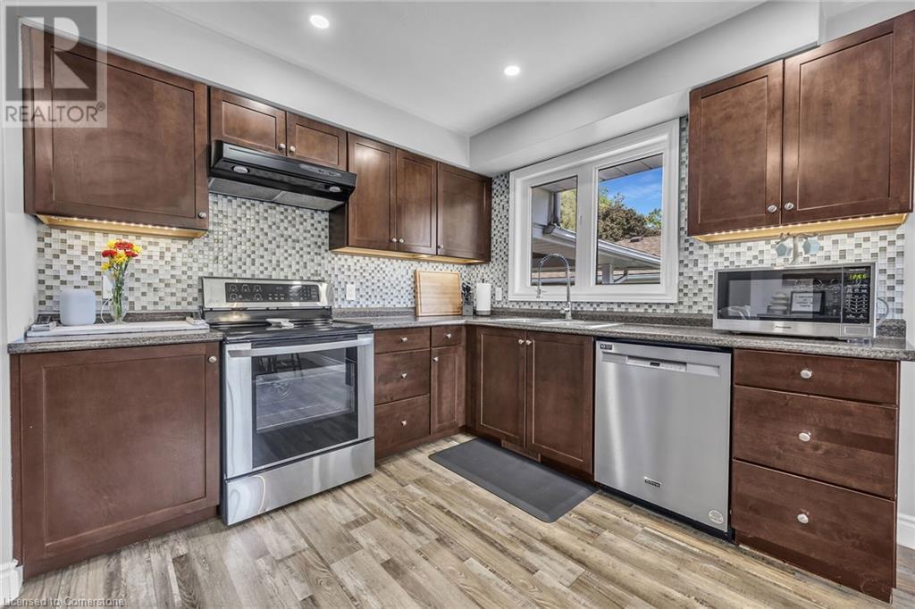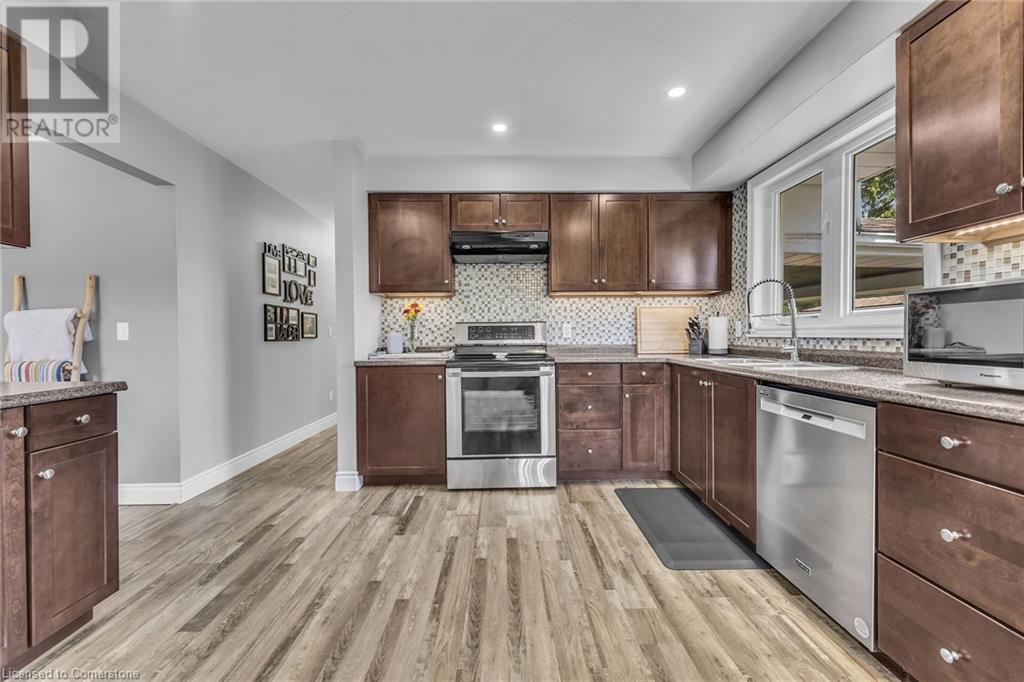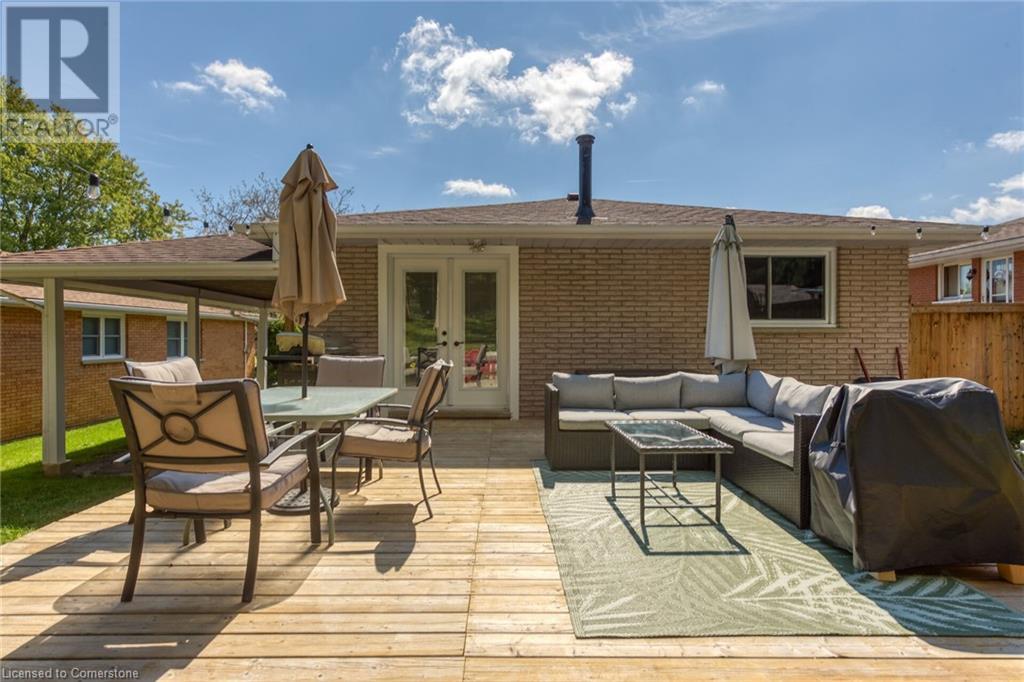 This Brick Bungalow is set back on a property that is 197 feet deep. Amazing Back Yard! Total privacy due to the side fencing-2019. You feel like you are living in the country. Whether you are relaxing on the deck(17x18), sitting around a campfire on the lower concrete patio or playing games in the large back yard, you will realize that this is a perfect home for making memories. There has been many updates over the years: garden door-2021, luxury vinyl plank flooring-2020, furnace-2018, lower bath-2017, kitchen cabinets-2016, as well as most windows, main floor doors & trim and converting the 3rd bedroom into a main floor laundry/mud room with garden doors opening to the deck. Primary bedroom has a walk in closet. Spacious second bedroom. The basement has a cozy recreation room, office area, 4pc bath & a large furnace room with good storage. There’s even more space that you can finish your way or keep it as your own private gym. Good neighbourhood. Close to shopping, rec centre/pool, Simcoe Farmer’s Market and Lynn Valley Trail. Appliances are included (fridge-2024, dishwasher-2023, washer & dryer-2020). Just move in and enjoy all this home has to offer! (id:55009)