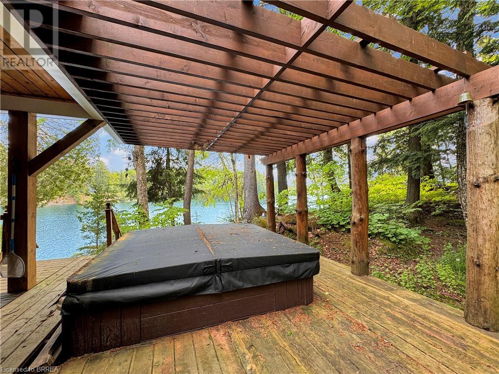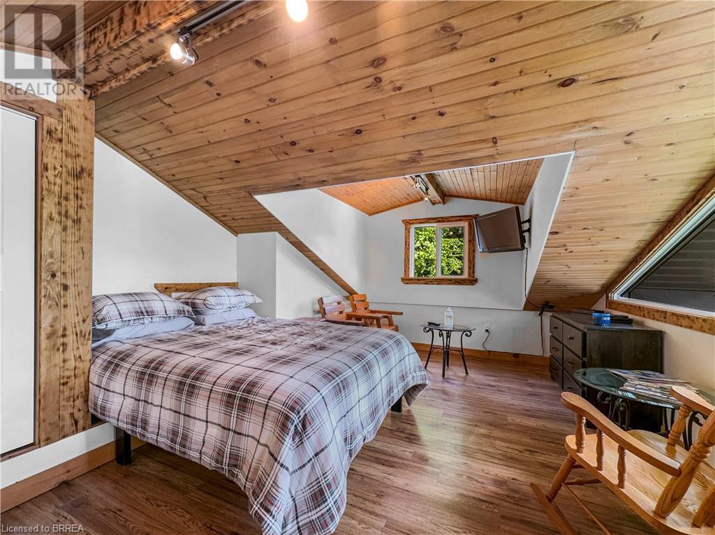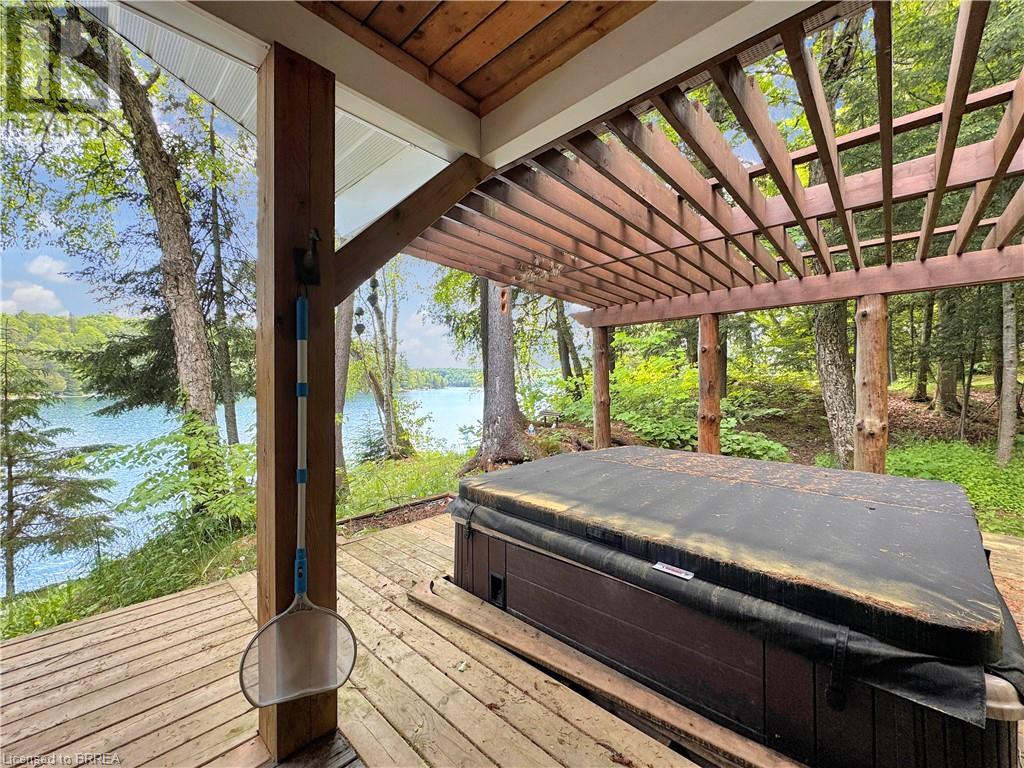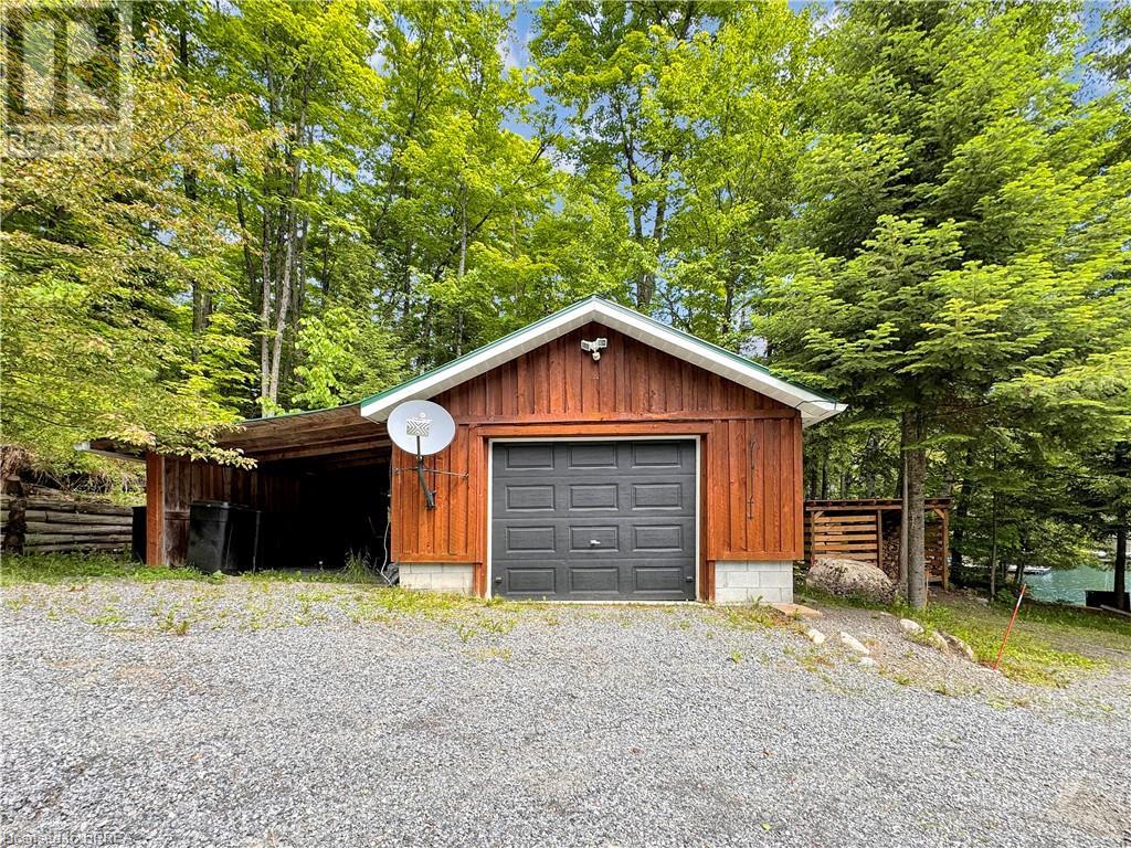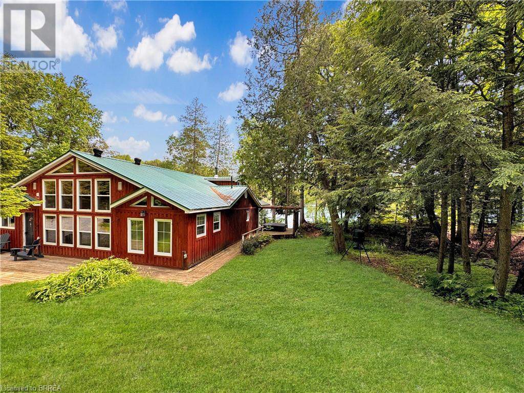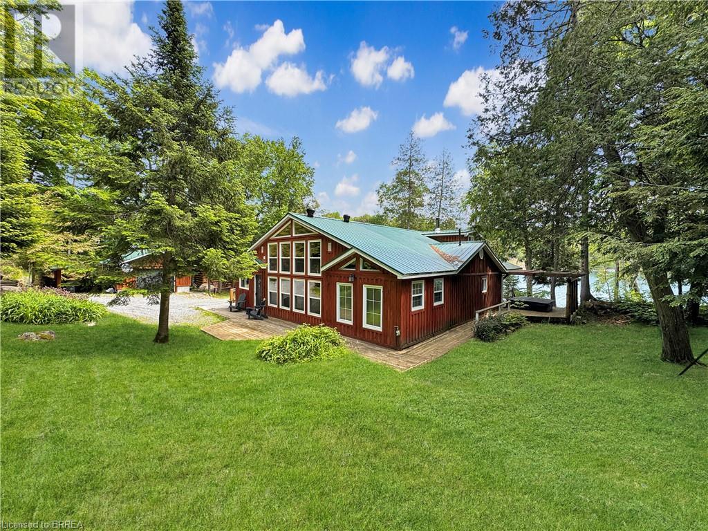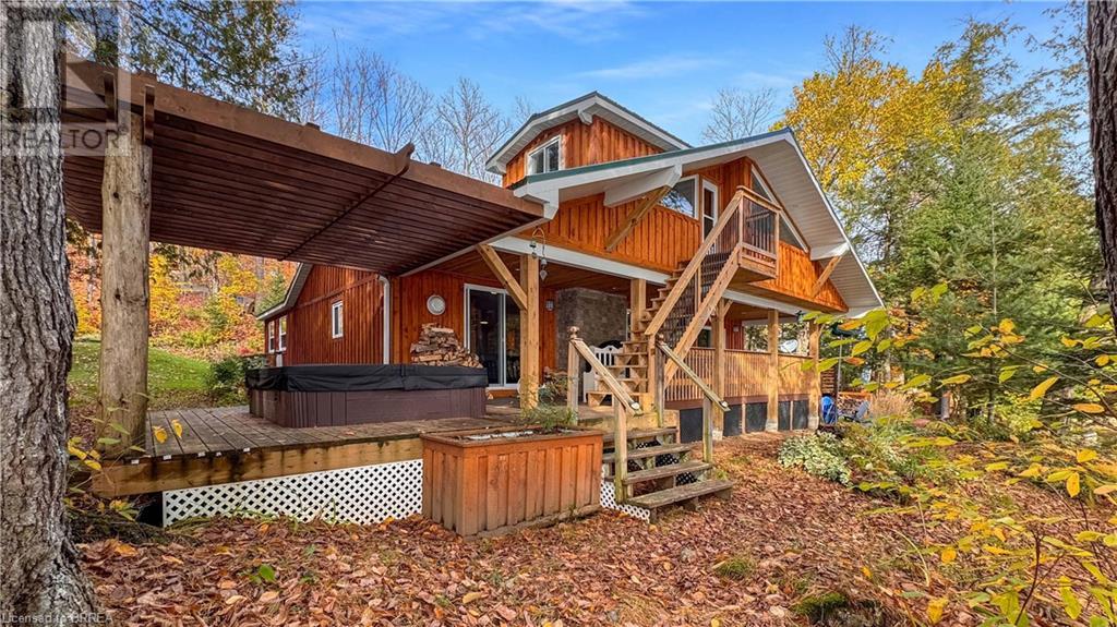 Discover year-round living on Spring Lake. This cottage offers stunning lakefront views, a private dock, a detached garage, a hot tub and so much more. Recent upgrades include a metal roof, Board & Batten siding, new furnace and air conditioner, water filtration system, stone fireplace, and a newly drilled well. The open concept living space features cathedral ceilings, with a newly added loft and stairs for extra space. Enjoy nature's beauty with crown land surroundings and a public boat launch just moments away. Embrace lakefront living in this charming, updated cottage. (id:55009)