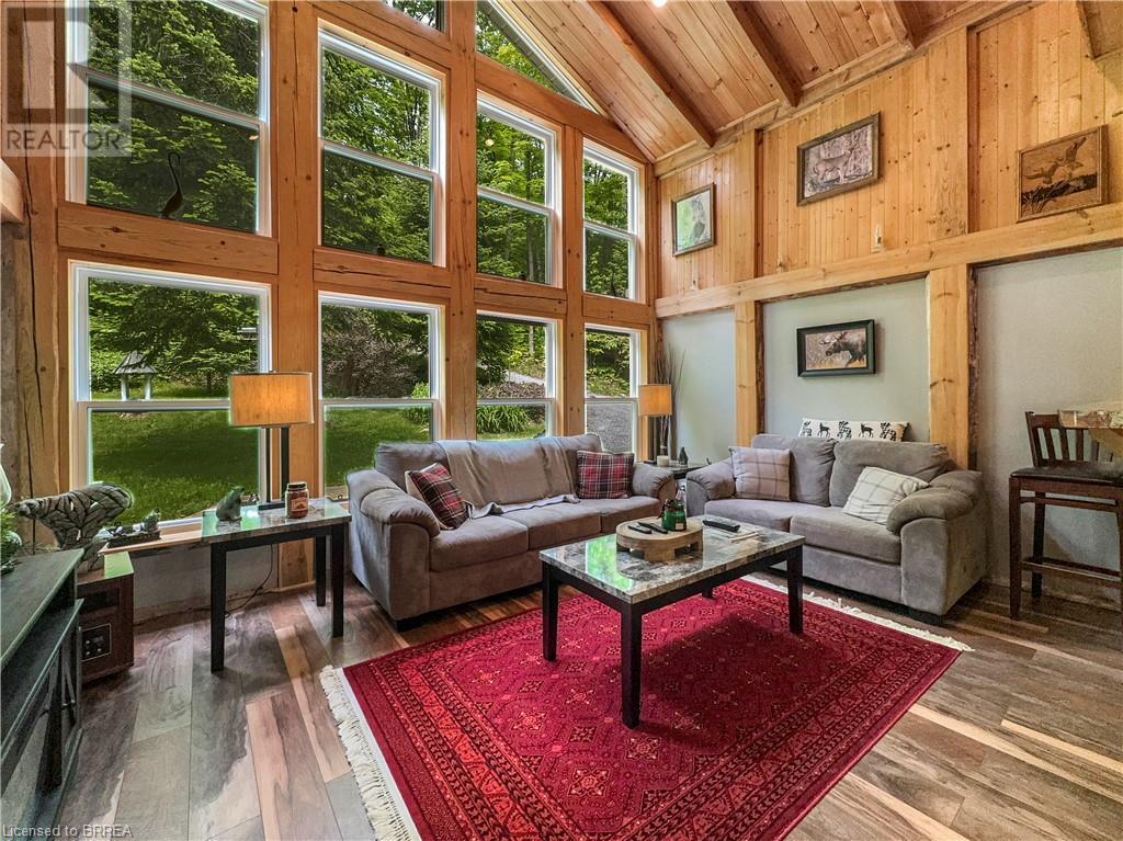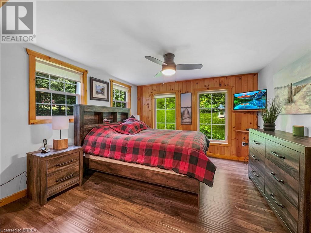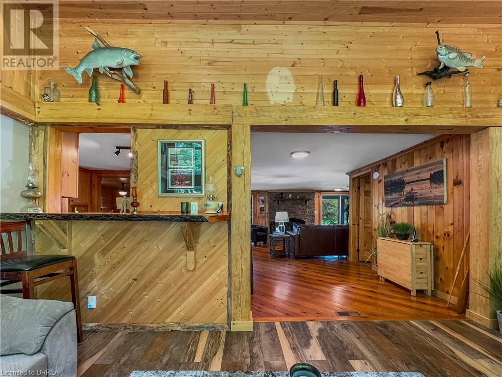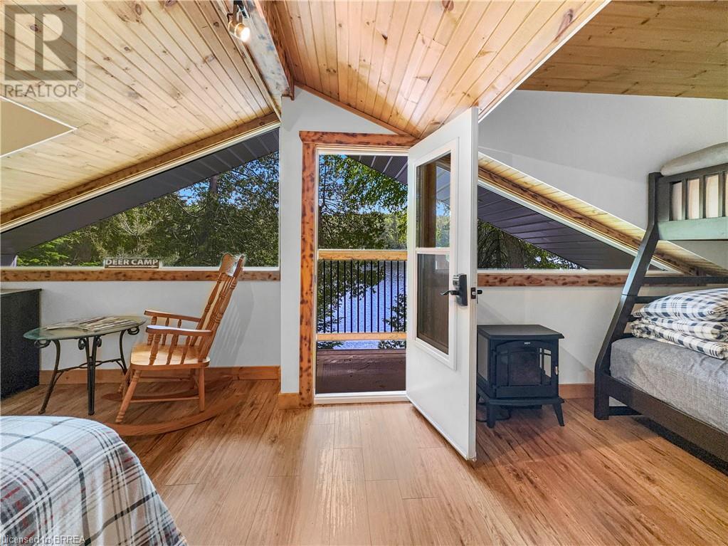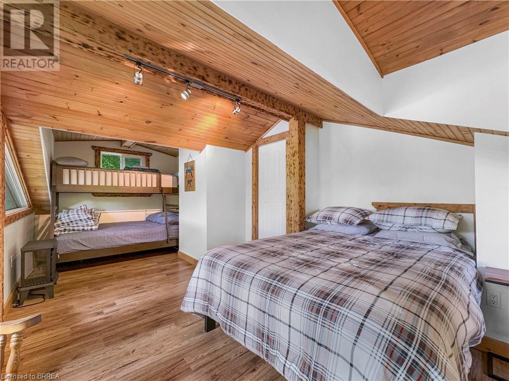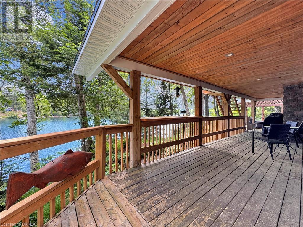 Discover year-round living on Spring Lake. This cottage offers stunning lakefront views, a private dock, a detached garage, a hot tub and so much more. Recent upgrades include a metal roof, Board & Batten siding, new furnace and air conditioner, water filtration system, stone fireplace, and a newly drilled well. The open concept living space features cathedral ceilings, with a newly added loft and stairs for extra space. Enjoy nature's beauty with crown land surroundings and a public boat launch just moments away. Embrace lakefront living in this charming, updated cottage. (id:55009)
