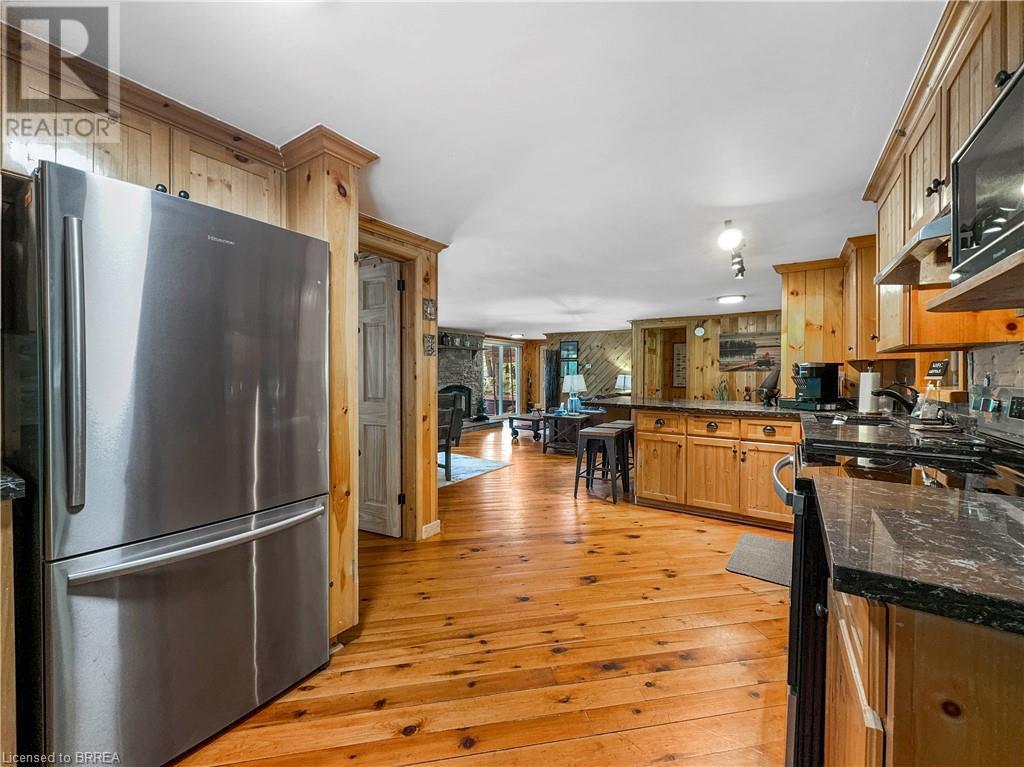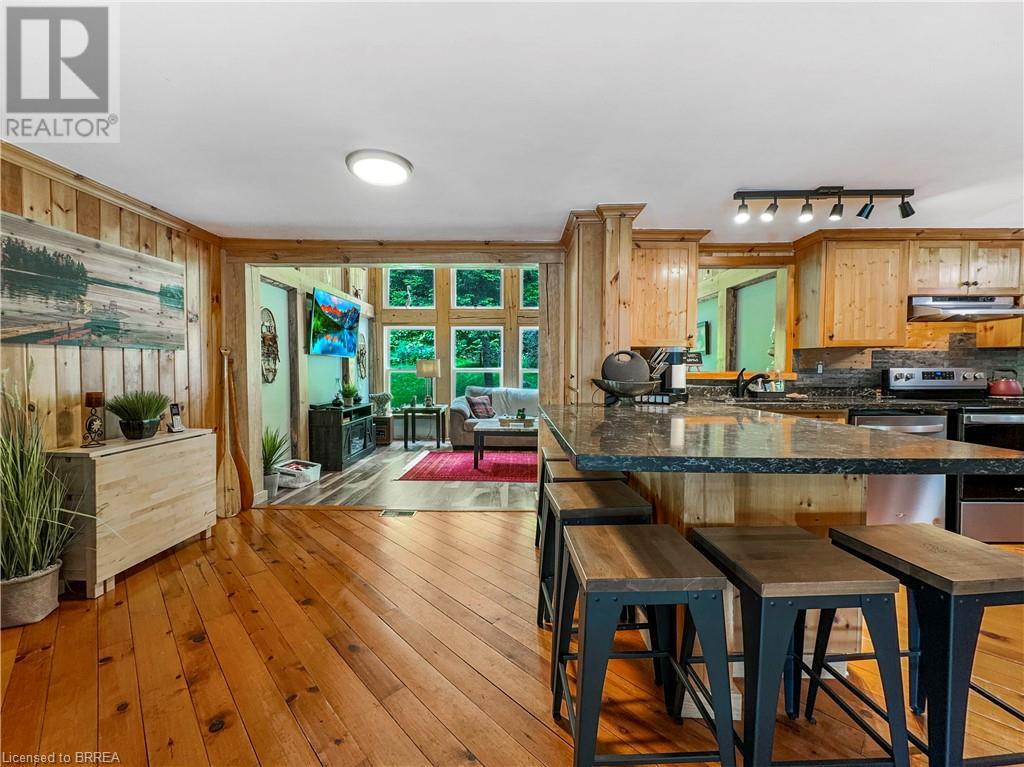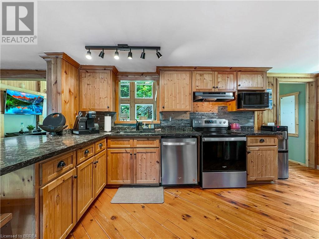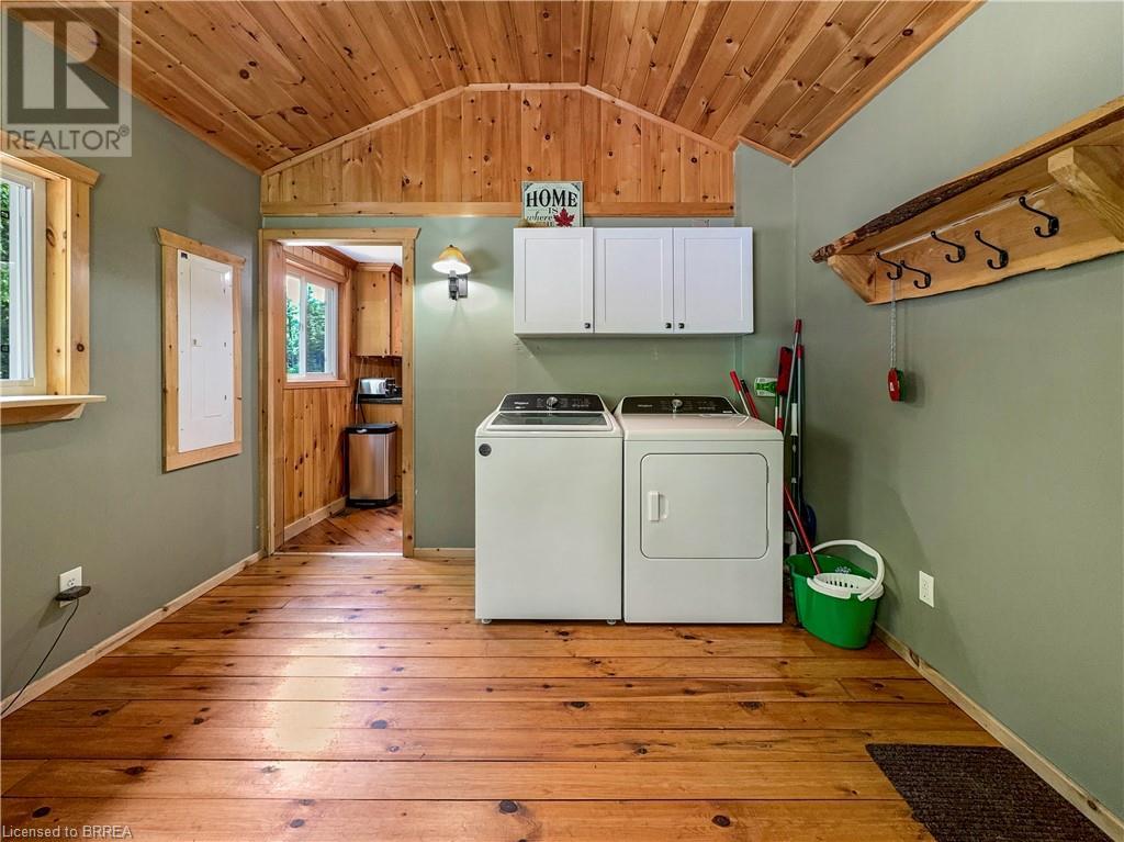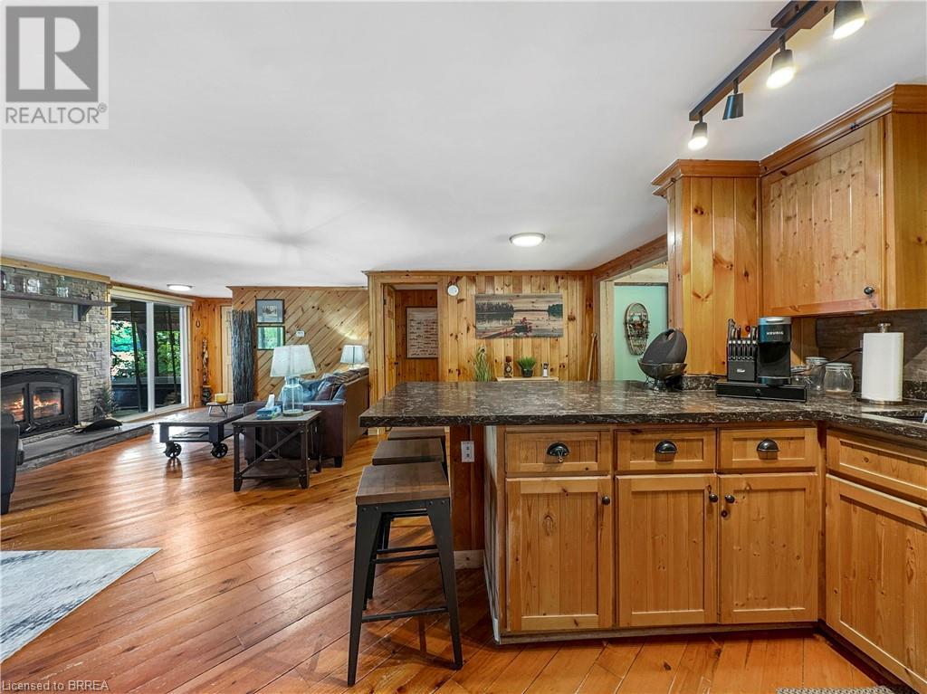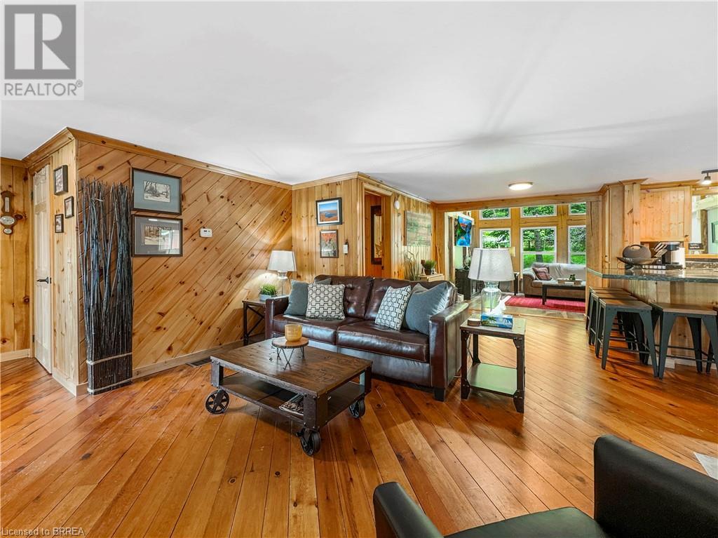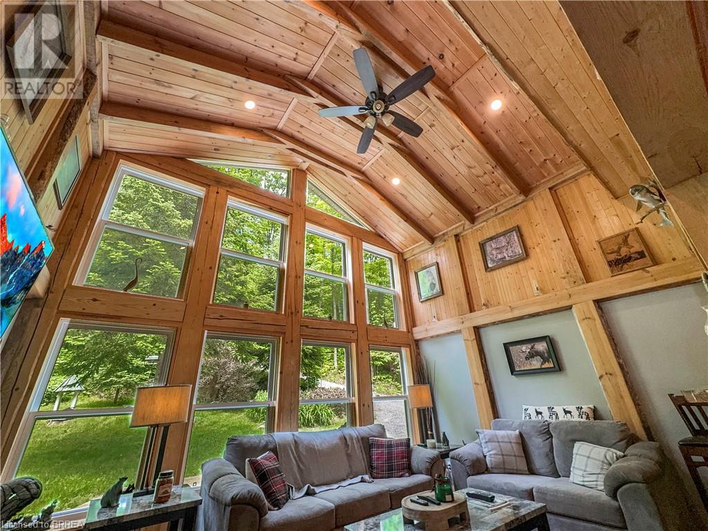 Discover year-round living on Spring Lake. This cottage offers stunning lakefront views, a private dock, a detached garage, a hot tub and so much more. Recent upgrades include a metal roof, Board & Batten siding, new furnace and air conditioner, water filtration system, stone fireplace, and a newly drilled well. The open concept living space features cathedral ceilings, with a newly added loft and stairs for extra space. Enjoy nature's beauty with crown land surroundings and a public boat launch just moments away. Embrace lakefront living in this charming, updated cottage. (id:55009)