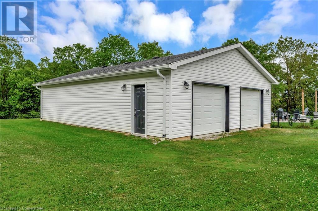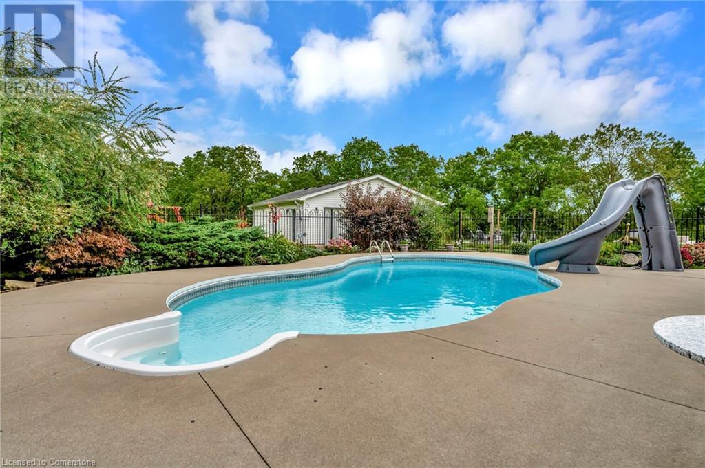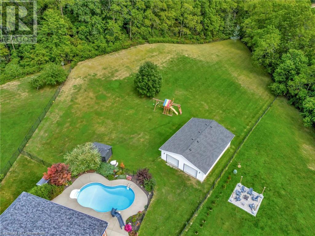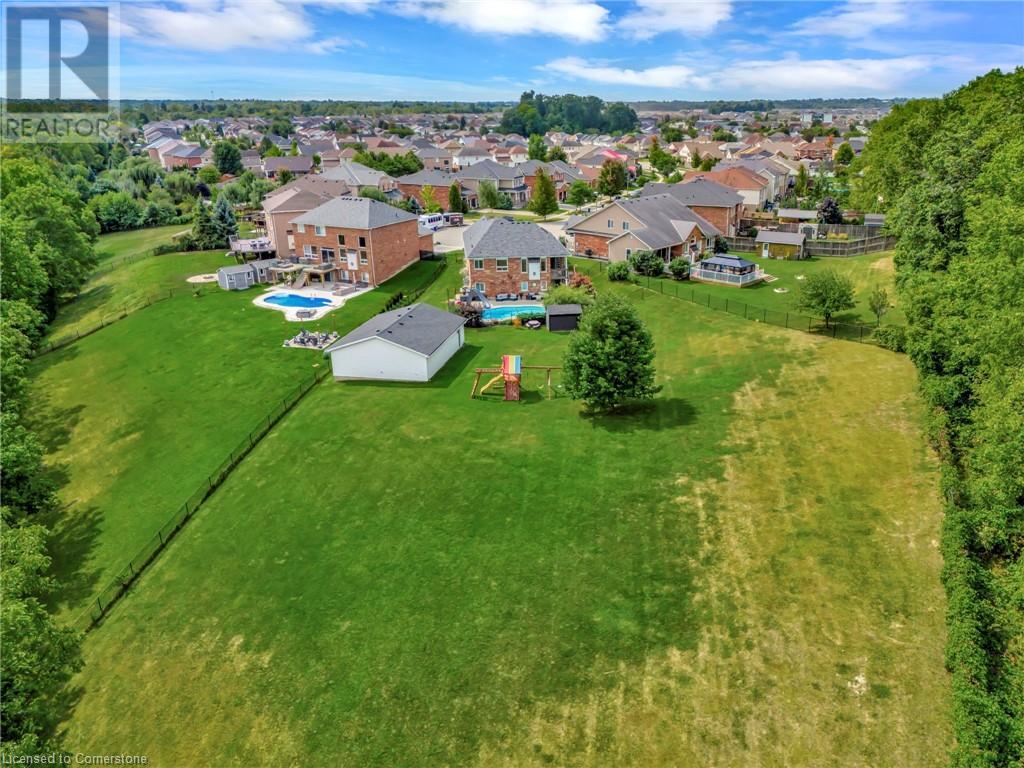 Welcome home to 31 Hoodless Crt. First time offered for sale and located in one of West Brants most desired pockets this home is a true gem. Nestled at the back of a quiet cul de sac surrounded by tree line and nature trails its the best of both worlds having a country feel boasting a 1.2 acre lot but within the city and close to amenities. This all brick bungalow offers main floor living with 3 bedrooms, 2 washrooms, main floor laundry, a spacious open kitchen, a large living room/dining room at the front and a cozy family room with gas fireplace over looking the pool and yard. A recently finished walk out basement with separate entrance is perfect for large families or anyone looking for a mortgage helper. The spacious open basement features a second full kitchen and living room, second primary bedroom with ensuite privilege and walk in closet, three additional rooms that can be used for playrooms, office, hobby rooms etc. The lower level walk out doors take you directly to outdoor seating and the enclosed pool area. This yard is private and is completed with a playset and a massive detached garage with concrete floor, hoist, heat and hydro. So many recent upgrades have been done to this home so an upgrade sheet has been included in the photo line up. This is one property you do not want to miss out on. (id:55009)
