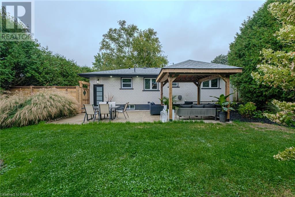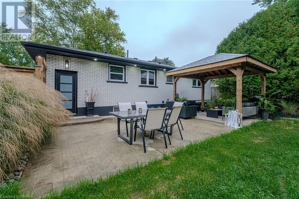 Don't miss this beautifully renovated 5-bedroom, 2-bathroom bungalow, nestled in the highly sought-after Greenbrier neighbourhood. The spacious kitchen features sleek quartz countertops, modern pot lights, and brand-new stainless steel appliances. The carpet-free home boasts a finished basement with a bar area, enhancing its modern appeal. The backyard is an entertainer's dream, complete with a concrete patio, gazebo, and mature trees for added privacy. Recent upgrades include a new furnace, air conditioning, electrical panel, and doors. (id:55009)
