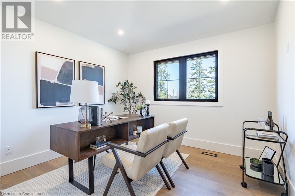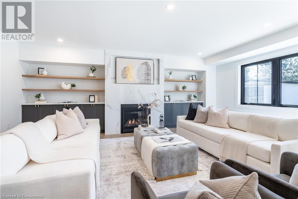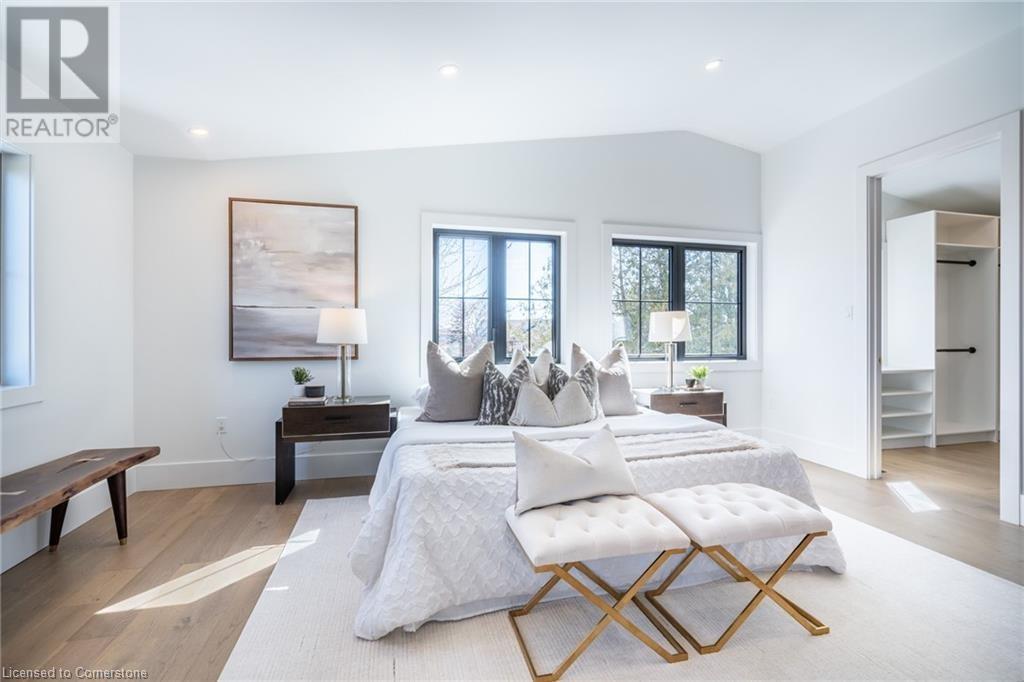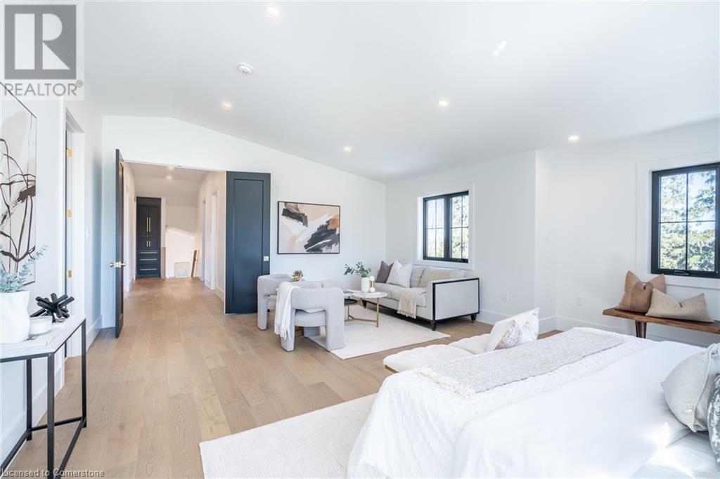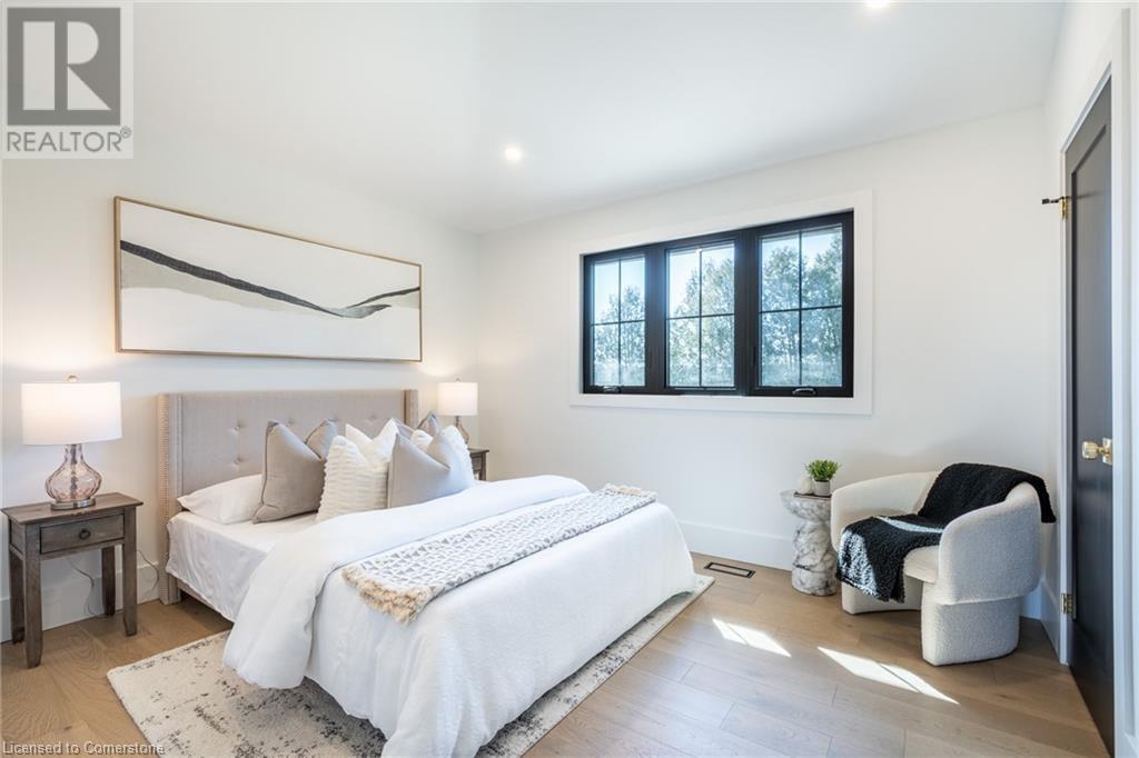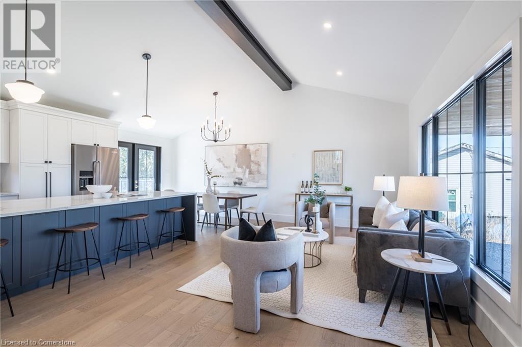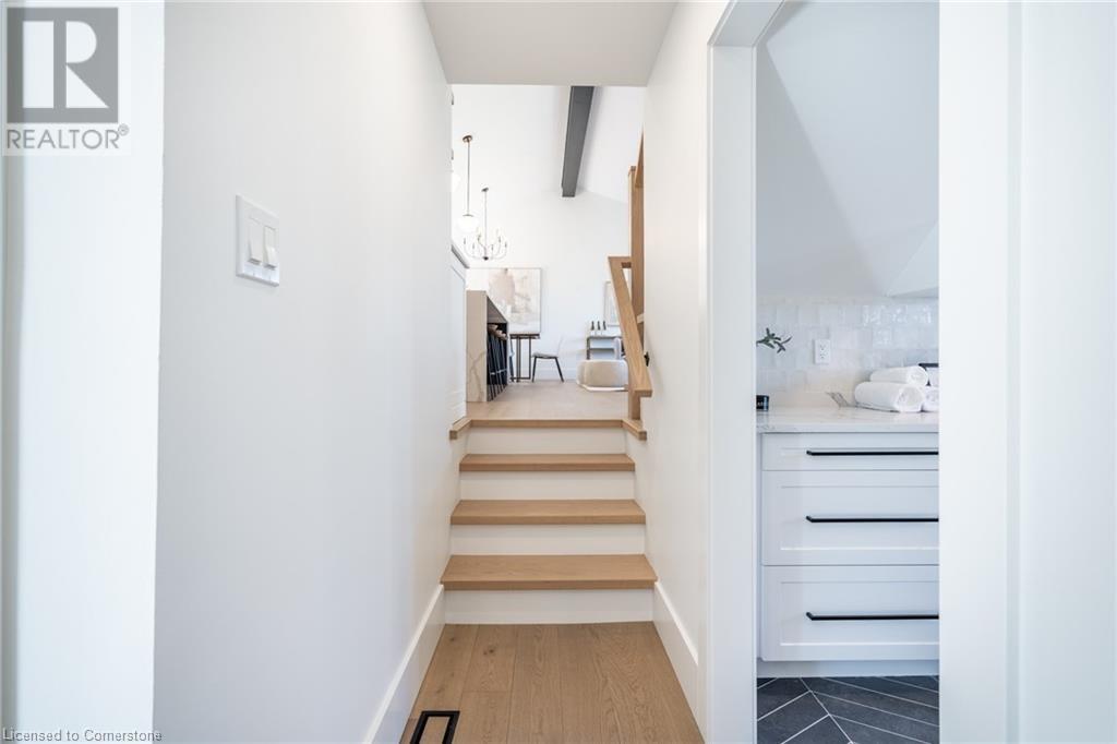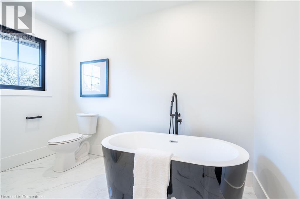 Welcome to luxury living in Binbrook! This fully renovated home offers 4 bedrooms, 3 bathrooms, and top-notch finishes. The star of the home is the stunning kitchen, featuring 12-foot ceilings and a show-stopping 10.5-foot waterfall quartz island. Bathed in natural light, this entertainer's paradise includes brand-new KitchenAid stainless steel appliances: a 6-burner chef's range, dual ovens, fridge, microwave, and wine fridge. The farmhouse sink and imported Spanish ceramic tile backsplash add an extra touch of elegance. Ascend the solid oak staircase to find a spa-like bathroom with a custom dual-sink vanity, quartz countertops, a soaker tub, and a walk-in shower with chic hex and subway tiles. The rainfall showerhead completes the luxurious feel. The oversized primary bedroom is a serene escape, featuring a walk-in closet with built-ins and an ensuite spa with dual sinks, an XL soaker tub, and a walk-in quartz shower with a rainfall showerhead, jets, and wand. The dream laundry/mudroom boasts new Samsung washer/dryer units, ample storage, and a deep farmhouse sink. Step outside to a walkout deck off the kitchen—perfect for relaxing or entertaining. The home also includes an attached oversized double-car garage and a 16x16-foot workshop. Close to all amenities, this is luxury living at its finest! (id:55009)