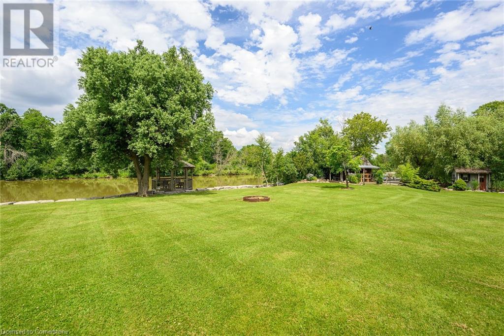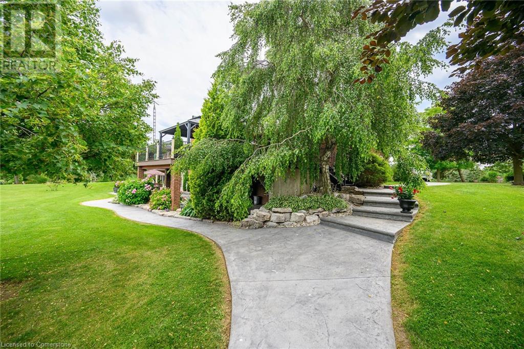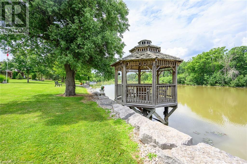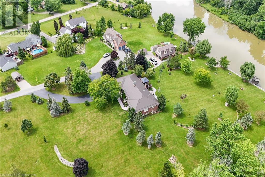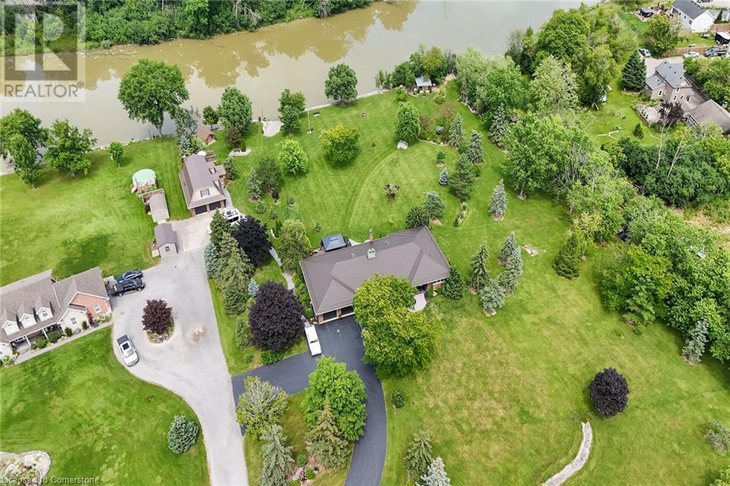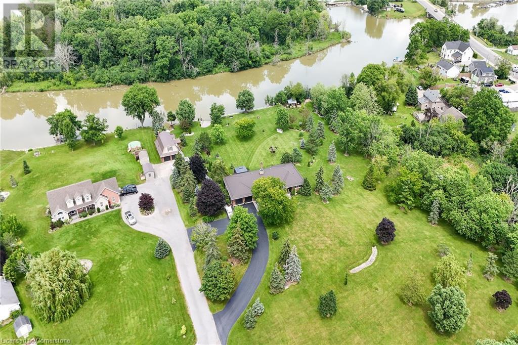 Discover an authentic “Masterpiece” - not just a home - a life style choice! Feast your eyes on this 5.22ac “Waterfront Estate” boasting over 220ft of armour stone laden frontage on Grand River tributary, incs boat launch, w/direct access to Lake Erie - 90 mins GTA - mins to Dunnville’s amenities! Spectacular custom built brick/stone bungalow is positioned beautifully among stands of pines, hardwoods & perennial gardens - introduces over 5500sf of flawless, sophisticated living space (both levels) - incs 2772 sf main floor ftrs crown moulded cathedral ceilings, hickory hardwood flooring & double sided brick gas FP fronting on “World Class” kitchen & opulent Great room offers WO to 375sf composite deck overlooking a private Paradise -continues to formal dining room, primary bedroom enjoying lavish en-suite & WO to private balcony, leaded glass pocket doors accessing twin front foyers, black walnut accented office & laundry wing incs 2pc bath + entry to 634sf garage. Dramatic staircase leads to Entertainer's Haven lower level complimented w/heated floors & 3 panel door WO to stamped conc, patio. Incs inviting family room ftrs gas FP & adjacent games room sporting custom bar, 3 super-sized bedrooms, 5pc bath w/heated tub, 2 utility rooms, wine cellar & cold room. Multi-purpose outbuilding offers 525sf 2-car bay + gorgeous 2 stry in-law/guest unit incs 3pc bath & mod. kitchen w/FP. Conc. walkways thread past designer chicken coop, garden shed & rustic river cabin. Rural Majesty! (id:55009)