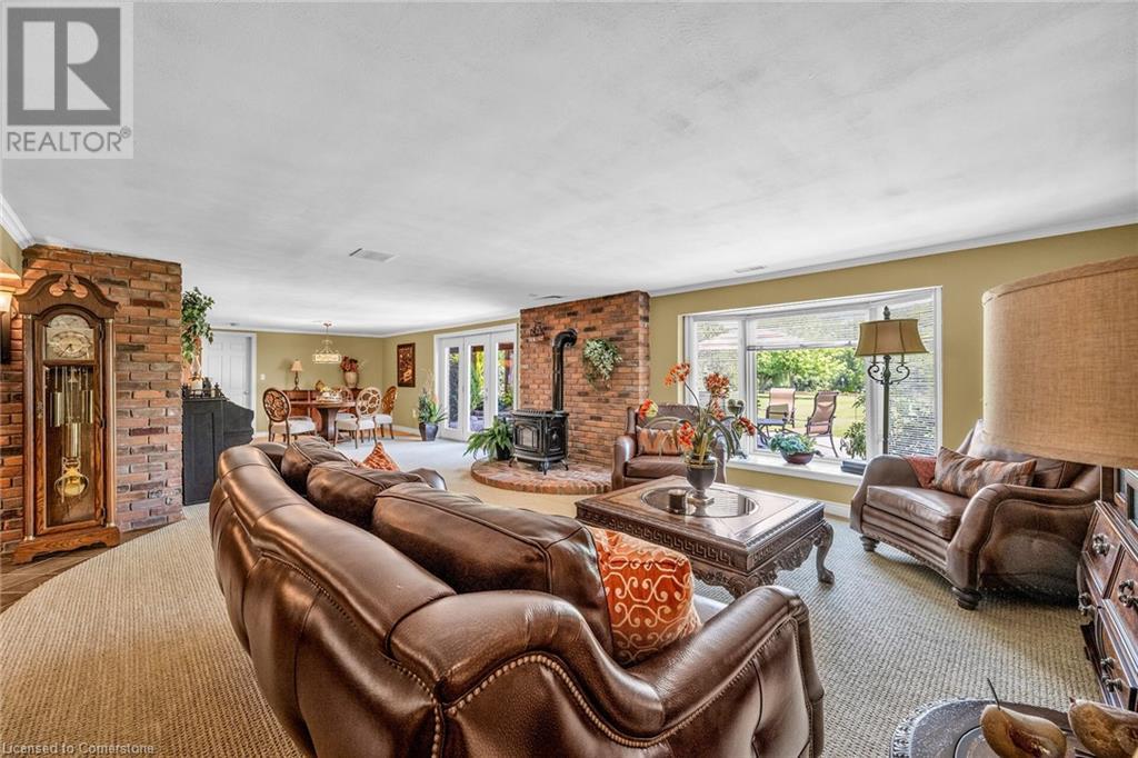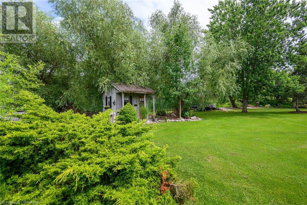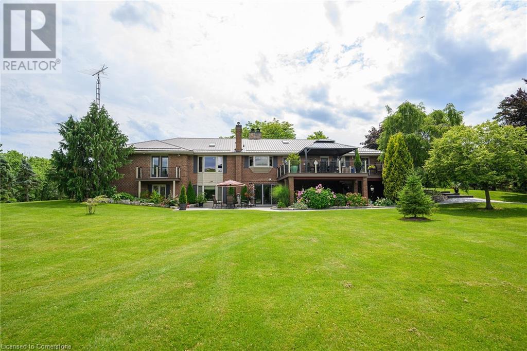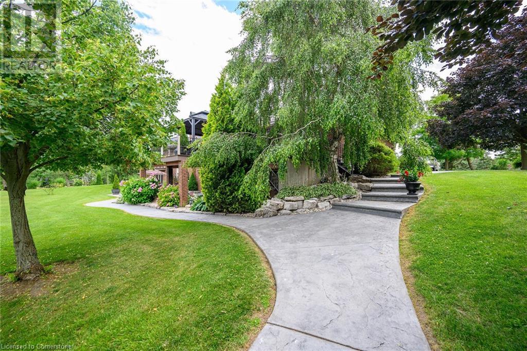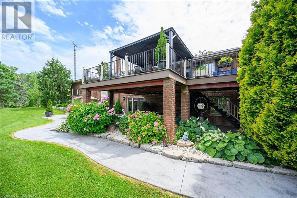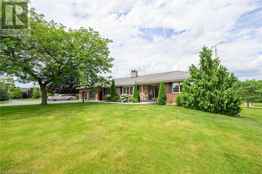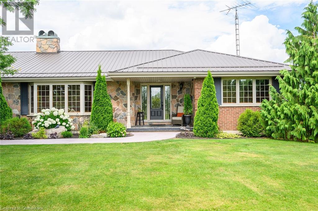 Discover an authentic “Masterpiece” - not just a home - a life style choice! Feast your eyes on this 5.22ac “Waterfront Estate” boasting over 220ft of armour stone laden frontage on Grand River tributary, incs boat launch, w/direct access to Lake Erie - 90 mins GTA - mins to Dunnville’s amenities! Spectacular custom built brick/stone bungalow is positioned beautifully among stands of pines, hardwoods & perennial gardens - introduces over 5500sf of flawless, sophisticated living space (both levels) - incs 2772 sf main floor ftrs crown moulded cathedral ceilings, hickory hardwood flooring & double sided brick gas FP fronting on “World Class” kitchen & opulent Great room offers WO to 375sf composite deck overlooking a private Paradise -continues to formal dining room, primary bedroom enjoying lavish en-suite & WO to private balcony, leaded glass pocket doors accessing twin front foyers, black walnut accented office & laundry wing incs 2pc bath + entry to 634sf garage. Dramatic staircase leads to Entertainer's Haven lower level complimented w/heated floors & 3 panel door WO to stamped conc, patio. Incs inviting family room ftrs gas FP & adjacent games room sporting custom bar, 3 super-sized bedrooms, 5pc bath w/heated tub, 2 utility rooms, wine cellar & cold room. Multi-purpose outbuilding offers 525sf 2-car bay + gorgeous 2 stry in-law/guest unit incs 3pc bath & mod. kitchen w/FP. Conc. walkways thread past designer chicken coop, garden shed & rustic river cabin. Rural Majesty! (id:55009)