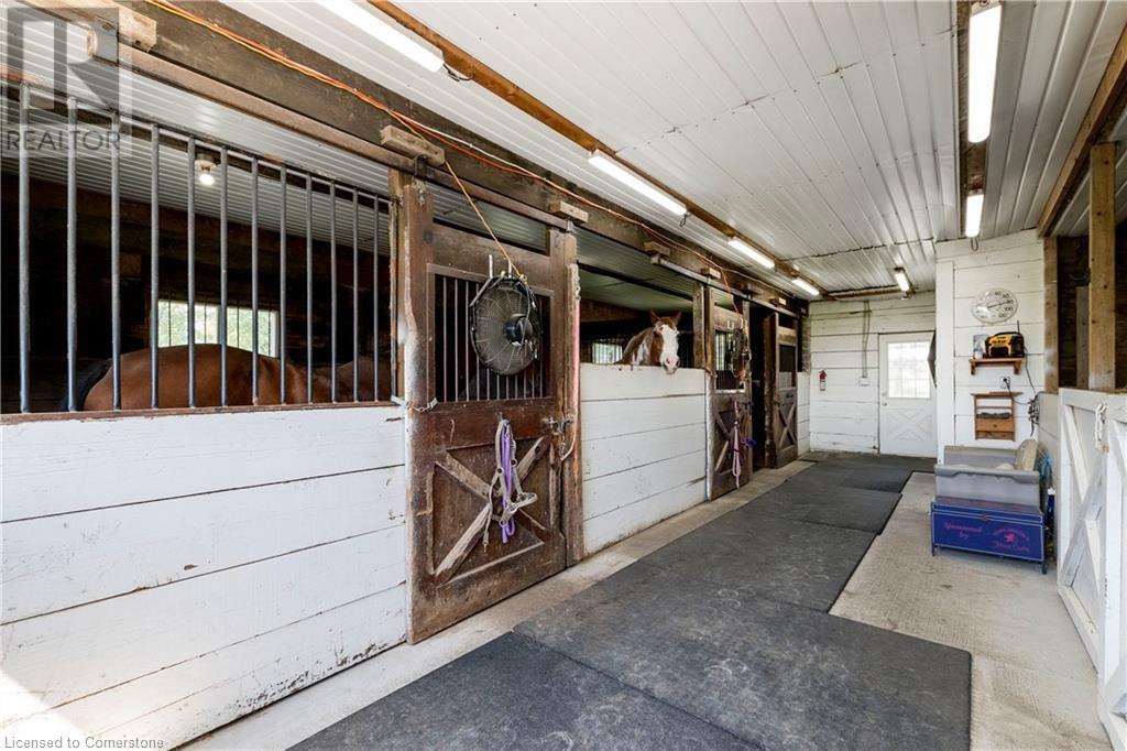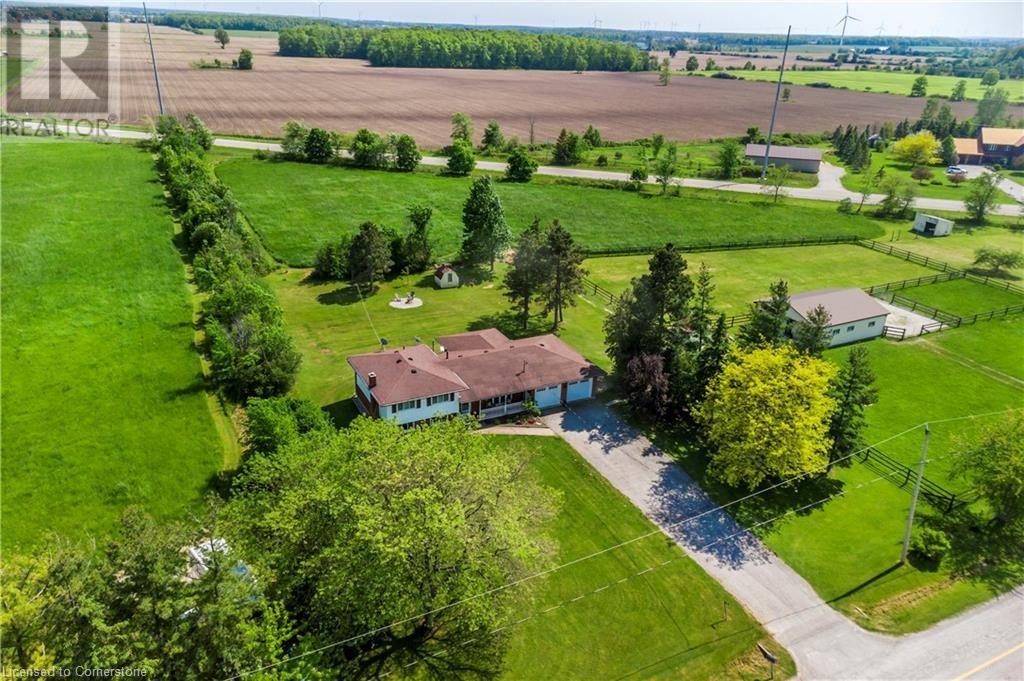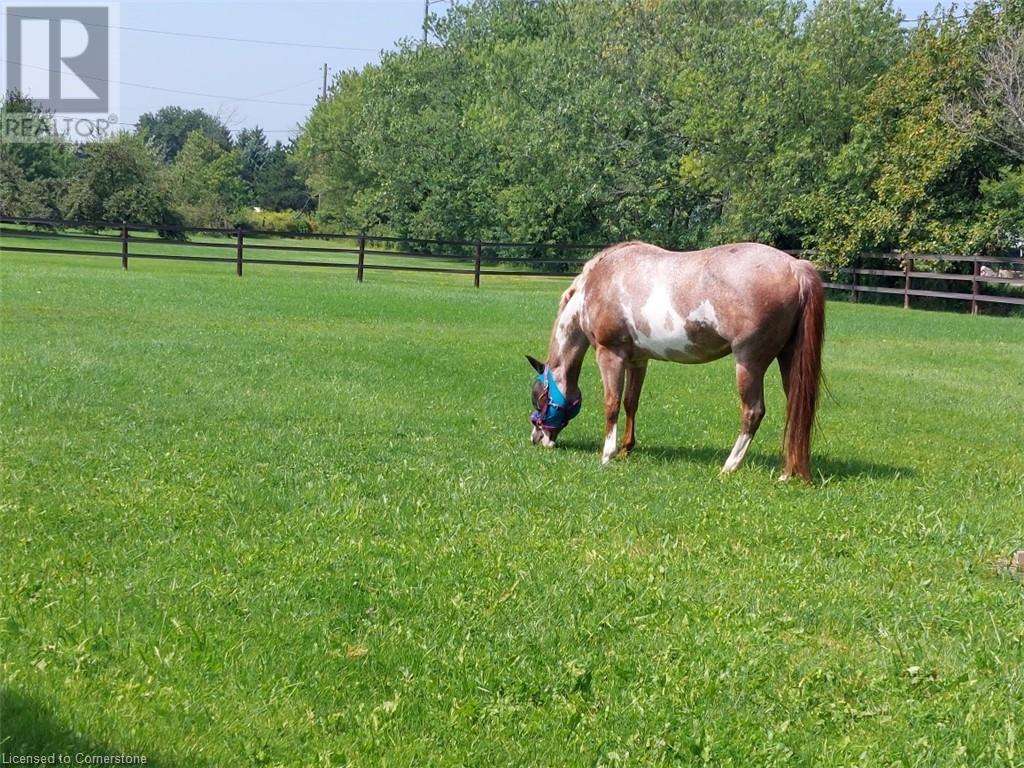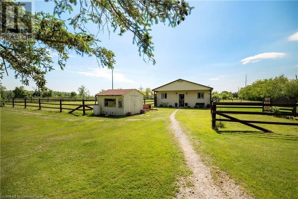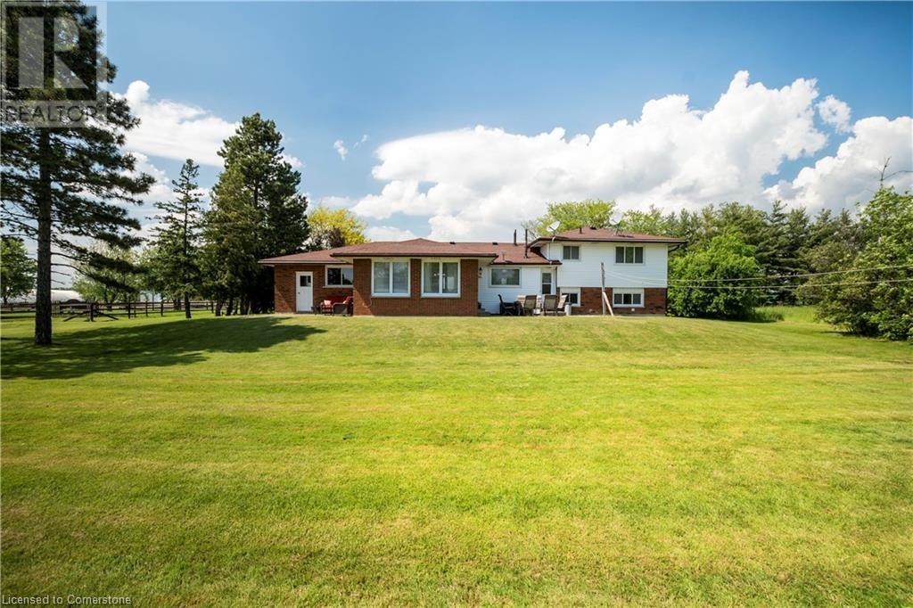 Welcome to 32 Irish Line, Cayuga! Embrace the expansive, tranquil country lifestyle offered by this beautiful 8+ acre property. Spacious 4 level sidesplit 3 BR 2 bath home with attached oversized, insulated double garage (doors and openers 2019). Updates include kitchen with shaker cabinets, large pantry, quartz counters and stainless appliances, furnace and A/C (all 2020/21), siding (2023) and wood flooring. 6000 gal cistern and 200 amp service. The open main floor includes living, dining and family rooms. A second family room boasts a brick accent wall with cozy, energy-efficient wood-stove. Modern metal sided outbuilding set up for horses with 5 box stalls, rubber mats, insulated tack/feed room, water, stall cameras and LED lighting. 3 grass paddocks and an all-season paddock fenced with professionally installed vinyl rail fencing in a park-like setting with mature trees, perennial gardens, hay fields and apple orchard. Amenities like restaurants, shopping, activities, walking trails, fishing and water sports on the Grand River are nearby. 2 large sheds and 3 driveways (paved double drive to house, separate driveway to shop/barn and 3rd driveway for equipment/trailers/RV's) are perfect for hobbyists or car enthusiasts, offering a unique opportunity to move to a country paradise. (id:55009)