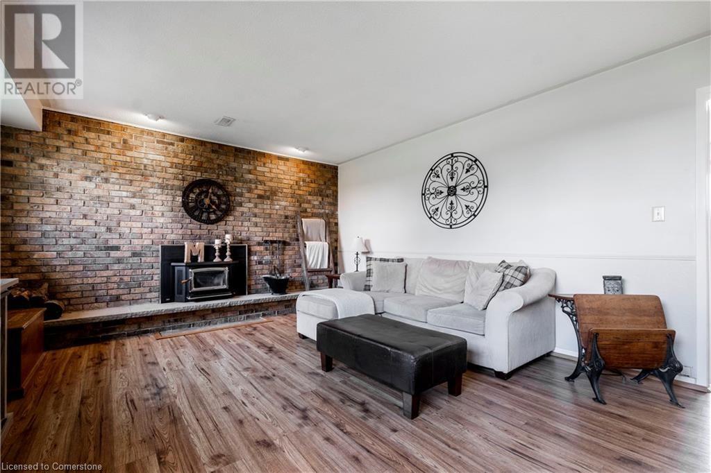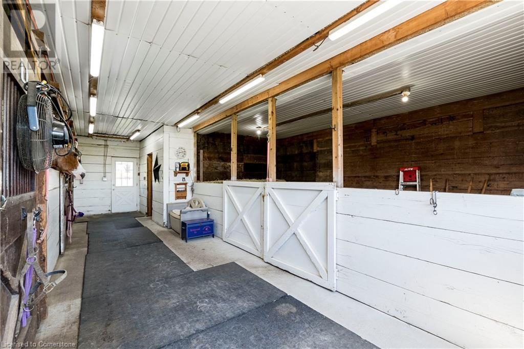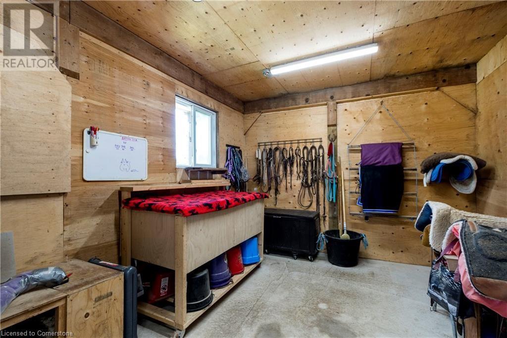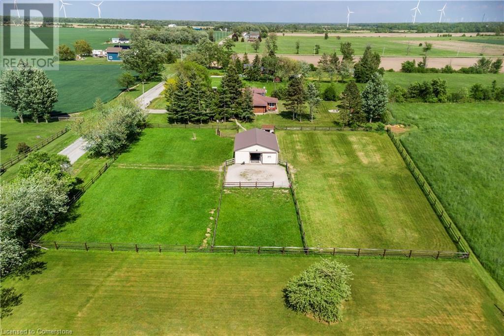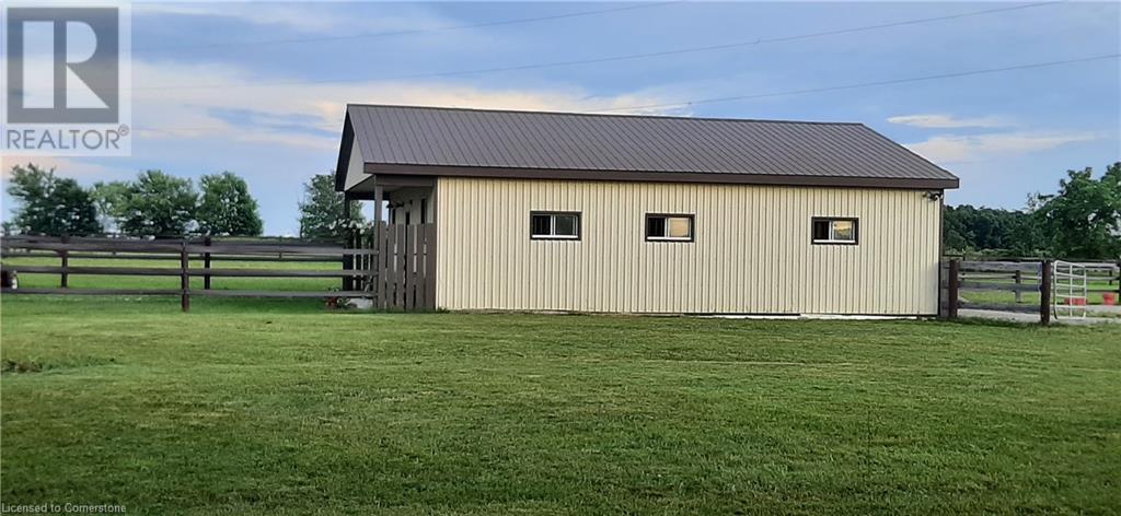 Welcome to 32 Irish Line, Cayuga! Embrace the expansive, tranquil country lifestyle offered by this beautiful 8+ acre property. Spacious 4 level sidesplit 3 BR 2 bath home with attached oversized, insulated double garage (doors and openers 2019). Updates include kitchen with shaker cabinets, large pantry, quartz counters and stainless appliances, furnace and A/C (all 2020/21), siding (2023) and wood flooring. 6000 gal cistern and 200 amp service. The open main floor includes living, dining and family rooms. A second family room boasts a brick accent wall with cozy, energy-efficient wood-stove. Modern metal sided outbuilding set up for horses with 5 box stalls, rubber mats, insulated tack/feed room, water, stall cameras and LED lighting. 3 grass paddocks and an all-season paddock fenced with professionally installed vinyl rail fencing in a park-like setting with mature trees, perennial gardens, hay fields and apple orchard. Amenities like restaurants, shopping, activities, walking trails, fishing and water sports on the Grand River are nearby. 2 large sheds and 3 driveways (paved double drive to house, separate driveway to shop/barn and 3rd driveway for equipment/trailers/RV's) are perfect for hobbyists or car enthusiasts, offering a unique opportunity to move to a country paradise. (id:55009)