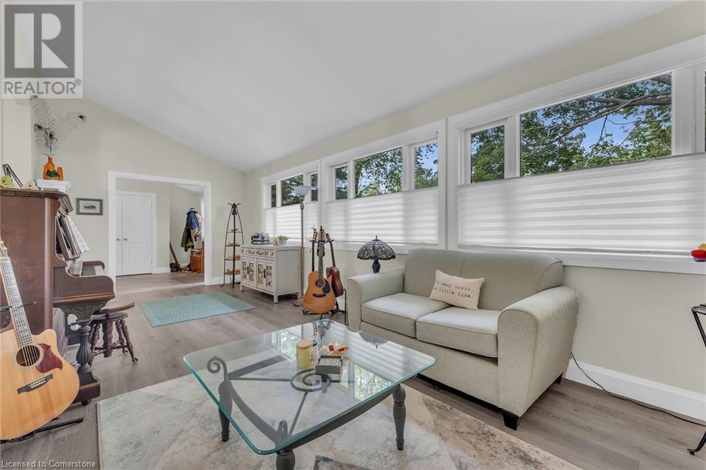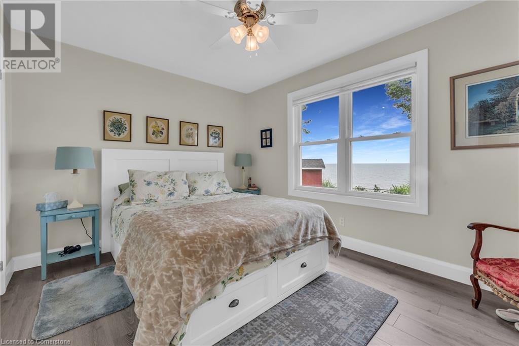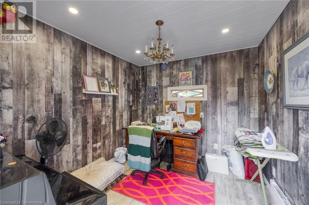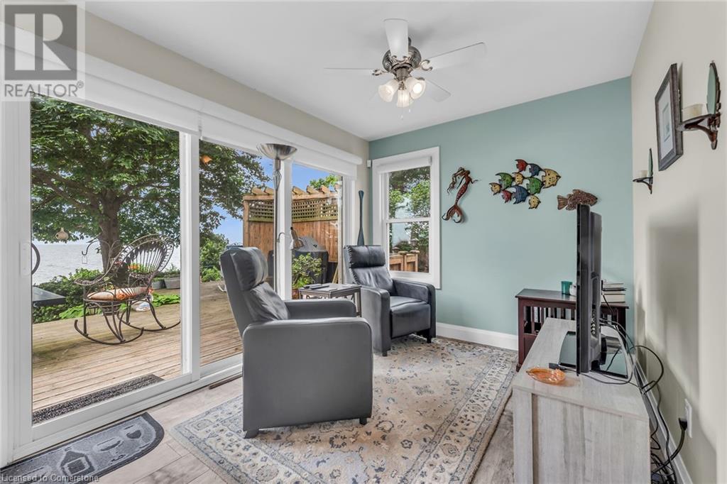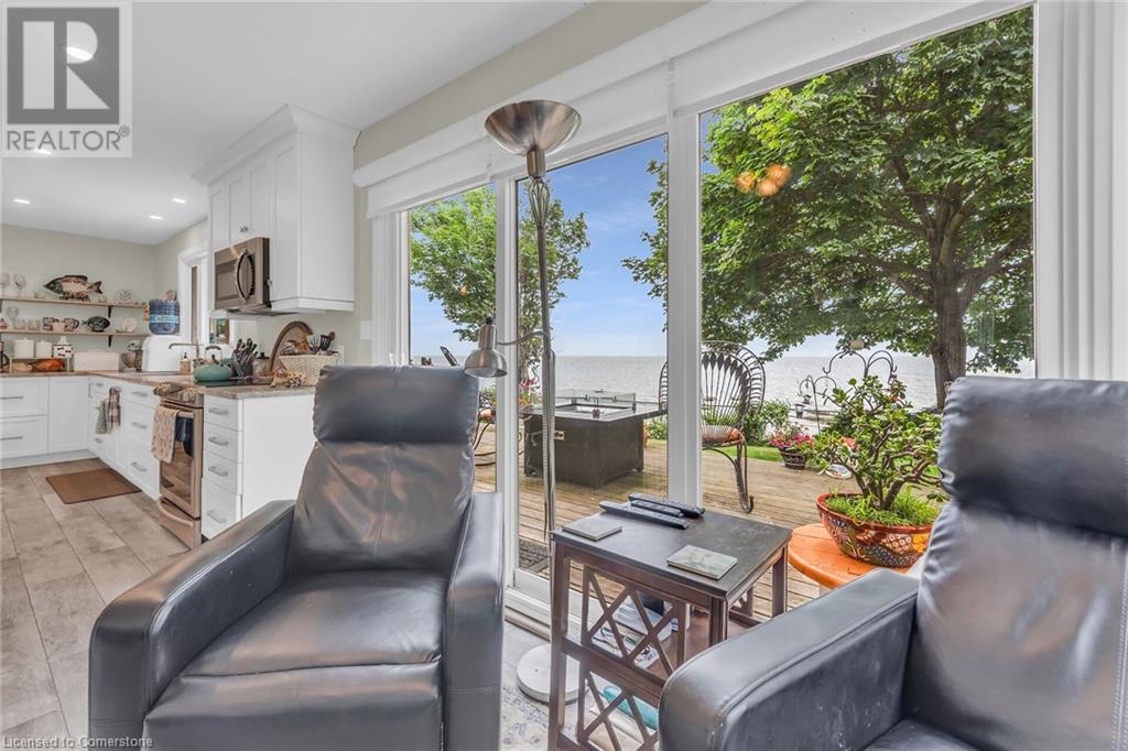 This absolute gem was extensively updated between 2018-2019 including new entrance foyer addition, inviting sunken living room with electric fireplace, updated gourmet kitchen featuring stunning granite countertops, panoramic lake views, a spacious island with seating for 4, dining area with patio door accessing a sprawling lakeside deck ideal for entertaining and enjoying serene sunrises and sunsets. This home offers 2 comfortable bedrooms, 2 modern bathrooms, versatile rec-room equipped with pool table, providing endless entertainment, while the dedicated office is perfect for remote work or a quiet retreat. Updates include metal roof, low maintenance vinyl exterior, windows, patio doors, interior/exterior doors, trim, insulation, drywall, 200-amp hydro, back-up generator, electrical wiring, LED lighting, plumbing, ultra-violet water purification/filter system, hi-efficiency furnace, central air, new efficient modern septic system, 2000-gal cistern, pressure pump/tank, water heater, stylishly painted décor, luxury vinyl flooring in bedrooms, slate and porcelain tile floors in foyer, kitchen and bathroom. The spectacular lakefront backyard is a true paradise. Enjoy the tranquility of a small ornamental pond while relaxing under the covered deck area surrounded by birds and beautiful gardens. Store all your tools in 2 convenient sheds, with a 3rd hobby shed/possible Bunkie with heat and hydro. This incredible property blends comfort, luxury, privacy and natural beauty! (id:55009)