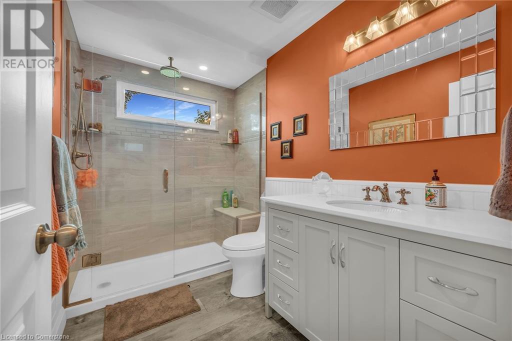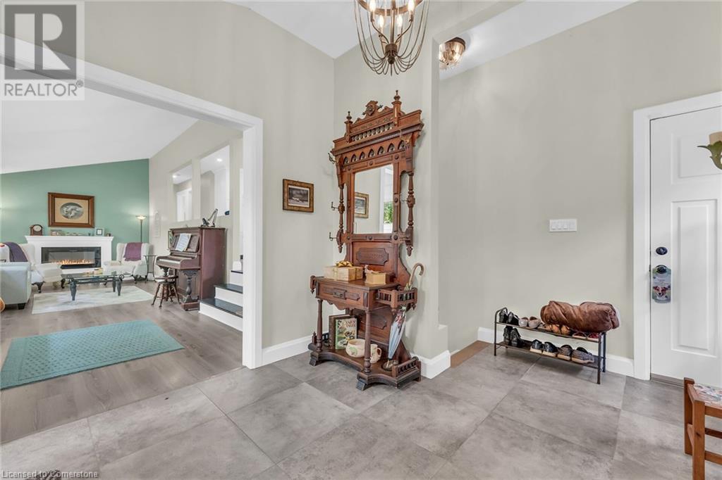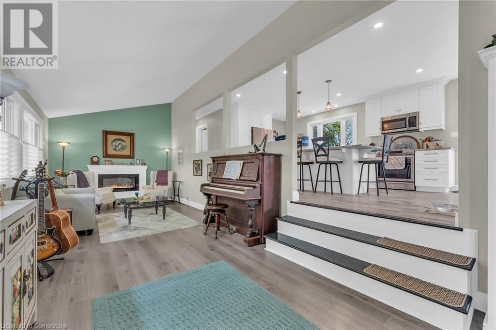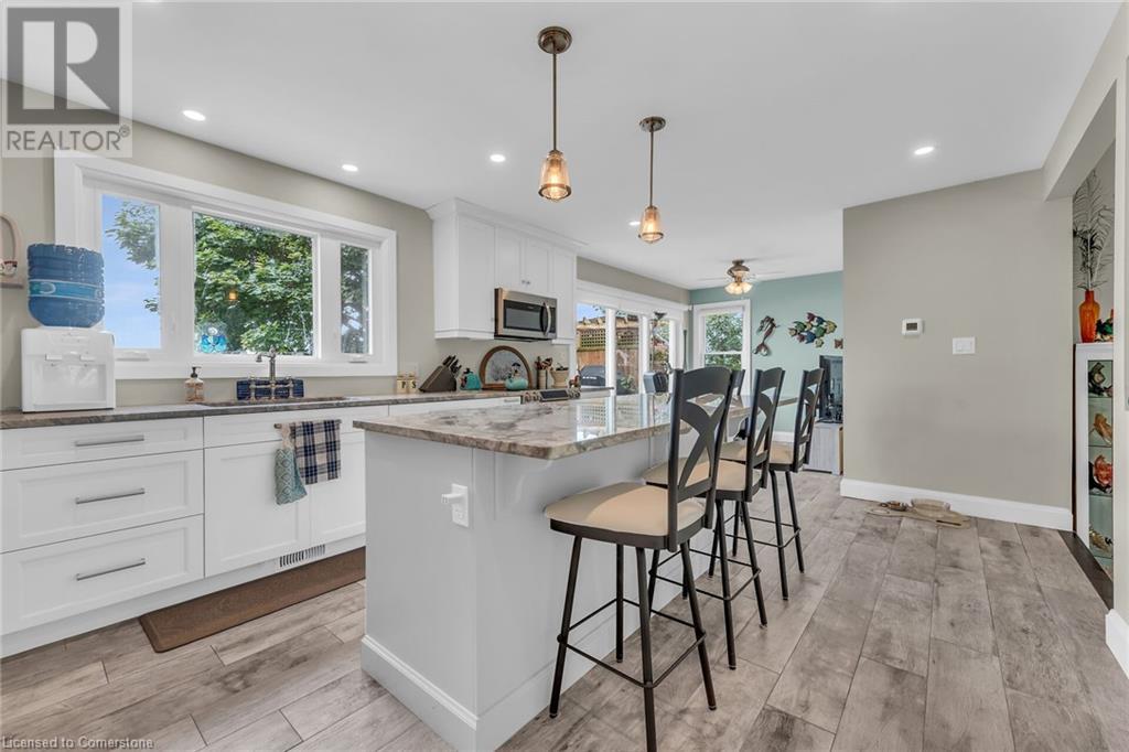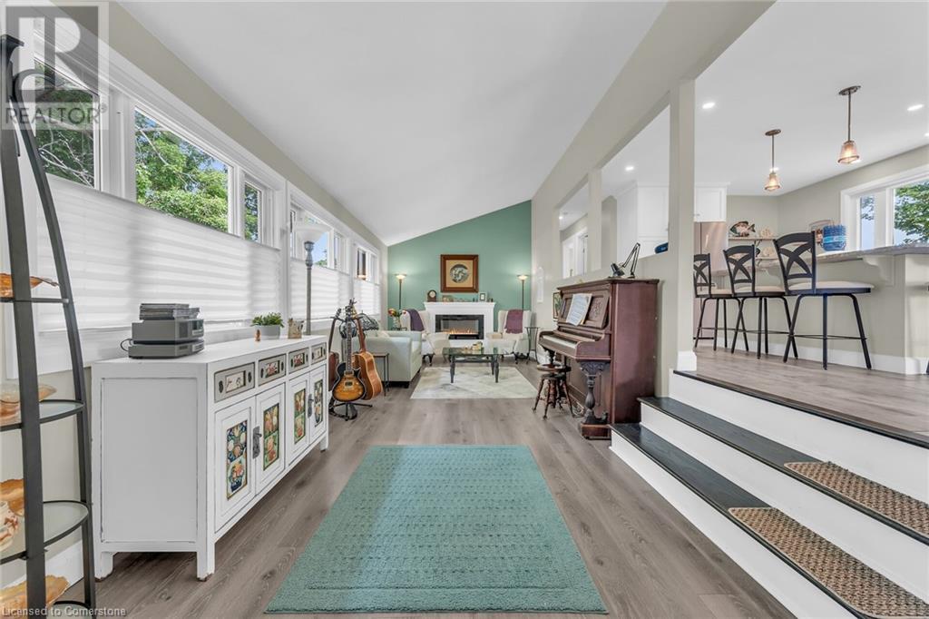 This absolute gem was extensively updated between 2018-2019 including new entrance foyer addition, inviting sunken living room with electric fireplace, updated gourmet kitchen featuring stunning granite countertops, panoramic lake views, a spacious island with seating for 4, dining area with patio door accessing a sprawling lakeside deck ideal for entertaining and enjoying serene sunrises and sunsets. This home offers 2 comfortable bedrooms, 2 modern bathrooms, versatile rec-room equipped with pool table, providing endless entertainment, while the dedicated office is perfect for remote work or a quiet retreat. Updates include metal roof, low maintenance vinyl exterior, windows, patio doors, interior/exterior doors, trim, insulation, drywall, 200-amp hydro, back-up generator, electrical wiring, LED lighting, plumbing, ultra-violet water purification/filter system, hi-efficiency furnace, central air, new efficient modern septic system, 2000-gal cistern, pressure pump/tank, water heater, stylishly painted décor, luxury vinyl flooring in bedrooms, slate and porcelain tile floors in foyer, kitchen and bathroom. The spectacular lakefront backyard is a true paradise. Enjoy the tranquility of a small ornamental pond while relaxing under the covered deck area surrounded by birds and beautiful gardens. Store all your tools in 2 convenient sheds, with a 3rd hobby shed/possible Bunkie with heat and hydro. This incredible property blends comfort, luxury, privacy and natural beauty! (id:55009)