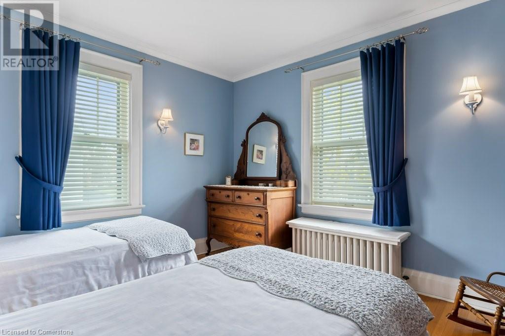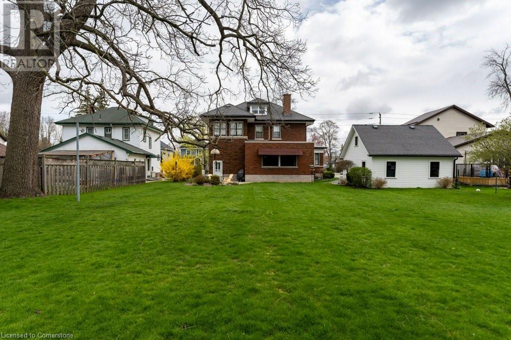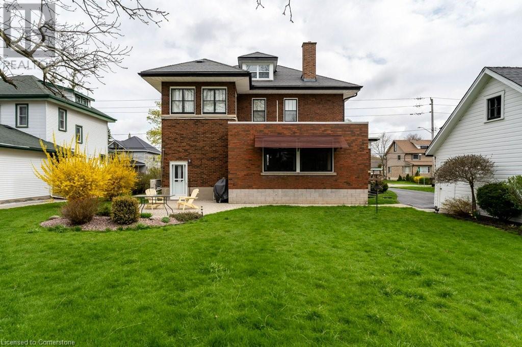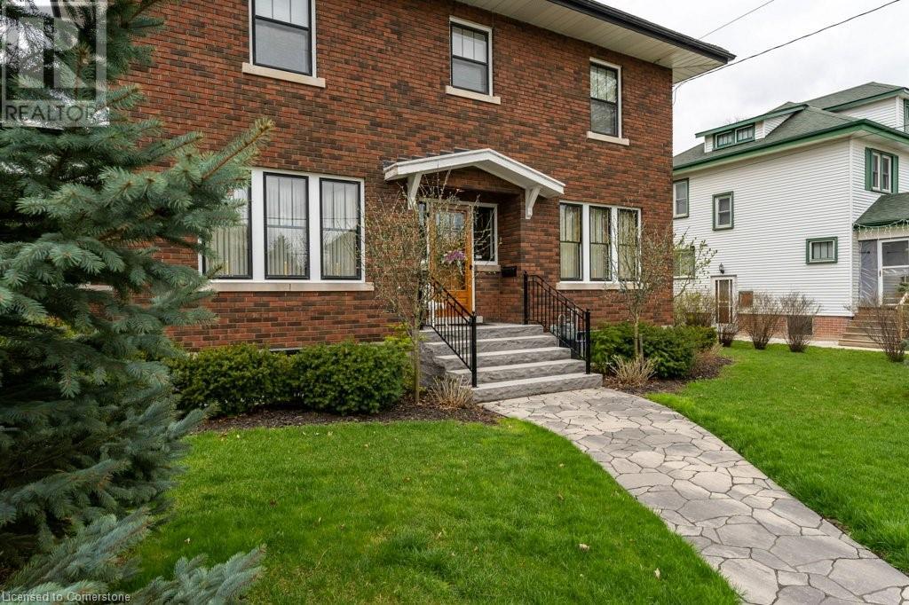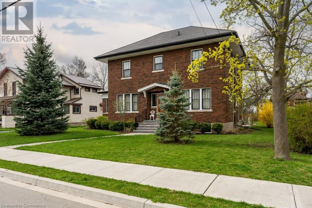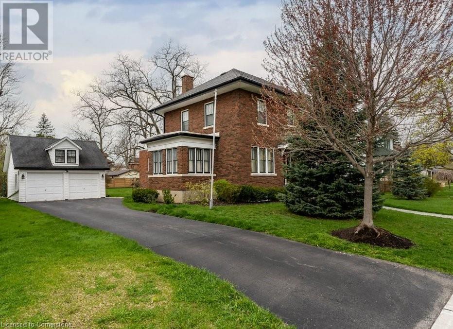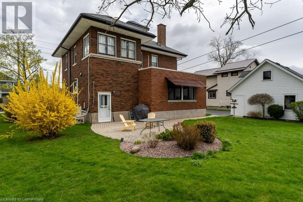 Impeccable Georgian style home in Dunnville. Gorgeous, all brick 4 bedroom home. Stone walkway to wide stone stairs lead to fabulous original entry door. As you step into the home you will instantly see the quality and pride of ownership. Original Oak hardwood floors, Gumwood trim and wainscotting, original stairs, and French doors. Large living room with fireplace and wall of windows, sitting room/den with tall windows on three sides, separate dining, updated kitchen with granite counters, 2 pc bath, and main floor family room overlooking the back yard. Second floor boasts 4 large bedrooms, and 4 piece bath plus bonus walk up attic (unfinished). Basement has Omni waterproof system, and offers wide windows, laundry, 2pc bath, hi-eff boiler furnace. Split unit AC located on main floor and second floor. Outside boasts beautiful gardens, detached two car garage with stairs to loft, paved driveway, private back yard, interlock patio, leaf guards on eavestrough. Convenient location, walking distance to hospital, restaurants, library and riverfront park. Nothing to do but move in and enjoy. (id:55009)