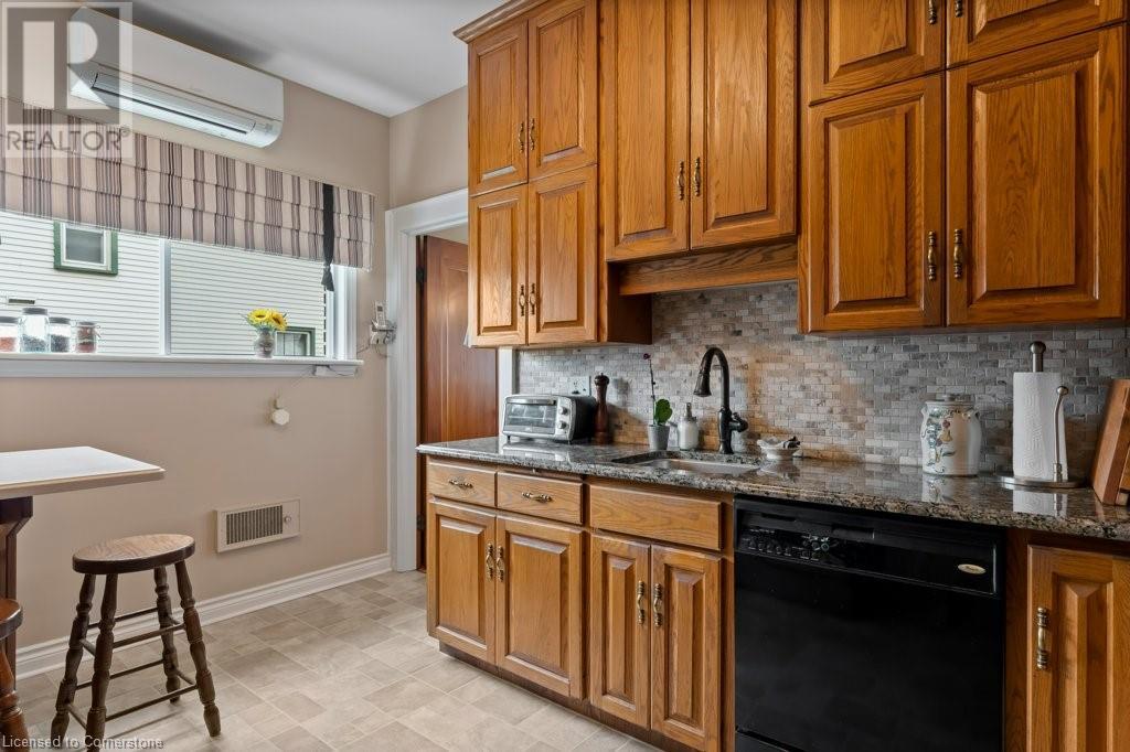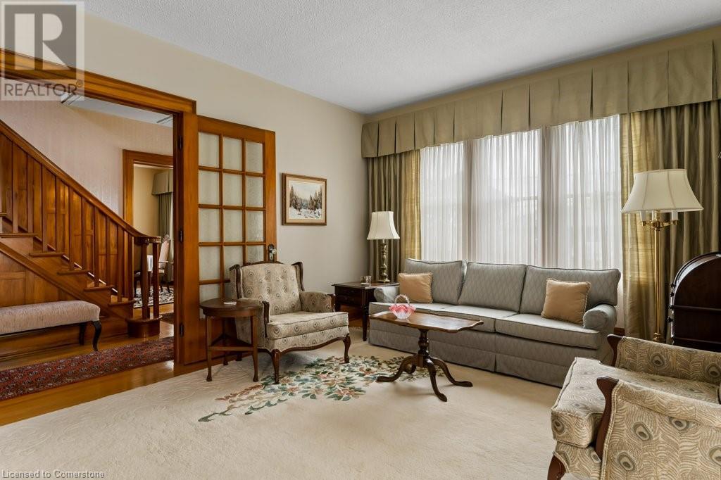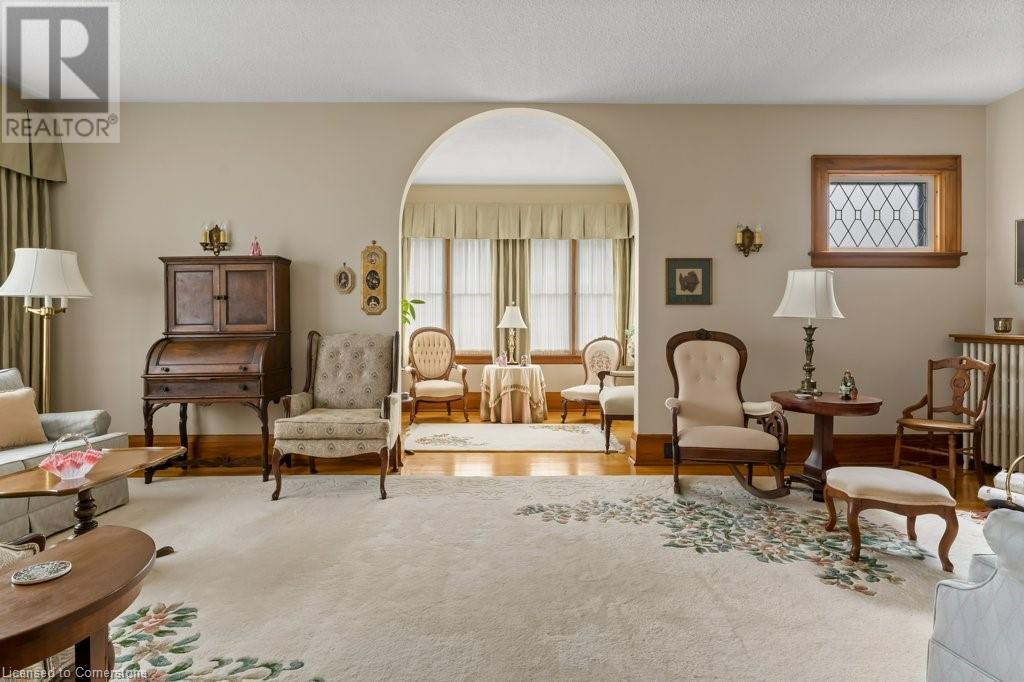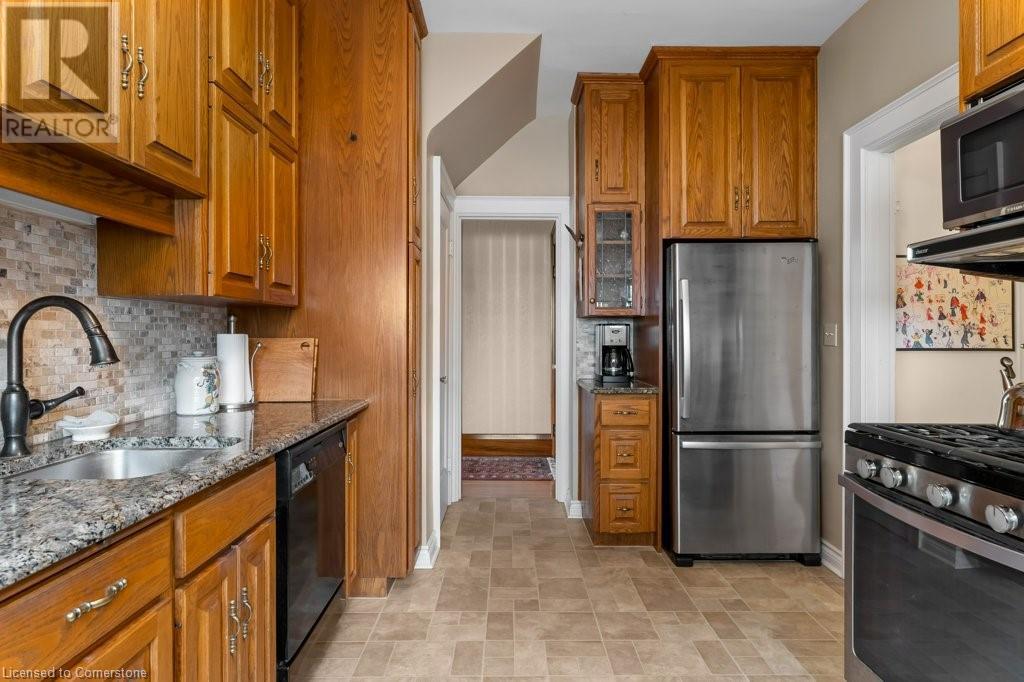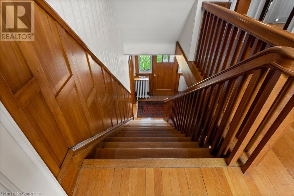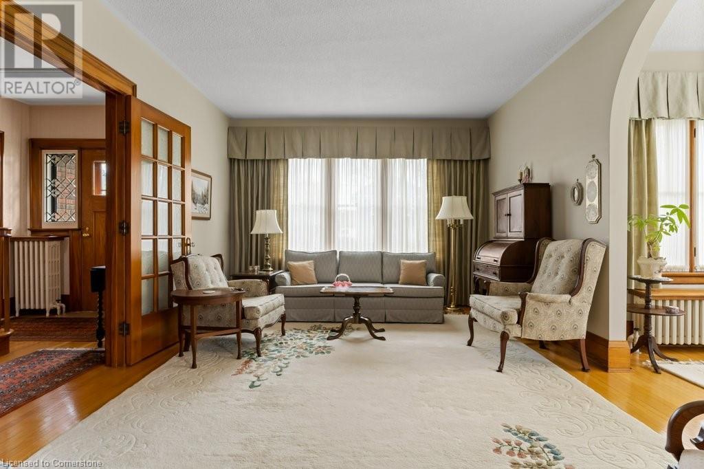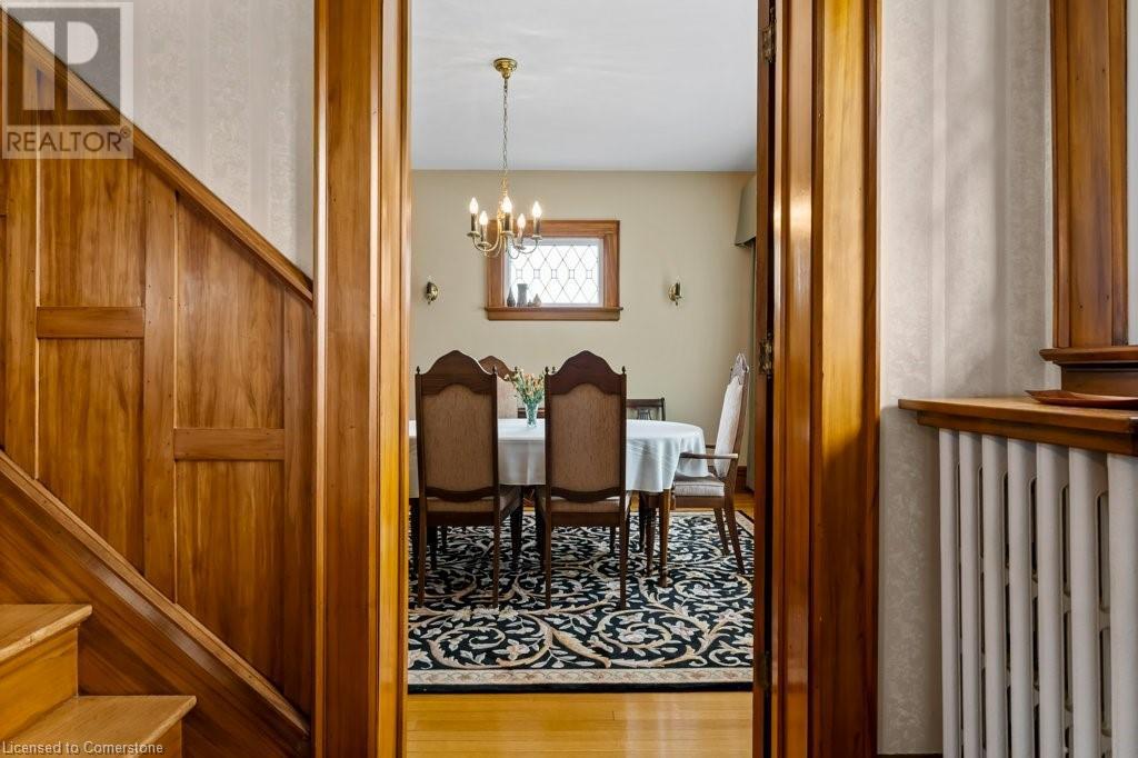 Impeccable Georgian style home in Dunnville. Gorgeous, all brick 4 bedroom home. Stone walkway to wide stone stairs lead to fabulous original entry door. As you step into the home you will instantly see the quality and pride of ownership. Original Oak hardwood floors, Gumwood trim and wainscotting, original stairs, and French doors. Large living room with fireplace and wall of windows, sitting room/den with tall windows on three sides, separate dining, updated kitchen with granite counters, 2 pc bath, and main floor family room overlooking the back yard. Second floor boasts 4 large bedrooms, and 4 piece bath plus bonus walk up attic (unfinished). Basement has Omni waterproof system, and offers wide windows, laundry, 2pc bath, hi-eff boiler furnace. Split unit AC located on main floor and second floor. Outside boasts beautiful gardens, detached two car garage with stairs to loft, paved driveway, private back yard, interlock patio, leaf guards on eavestrough. Convenient location, walking distance to hospital, restaurants, library and riverfront park. Nothing to do but move in and enjoy. (id:55009)