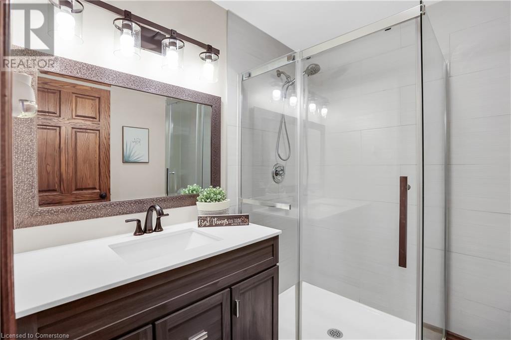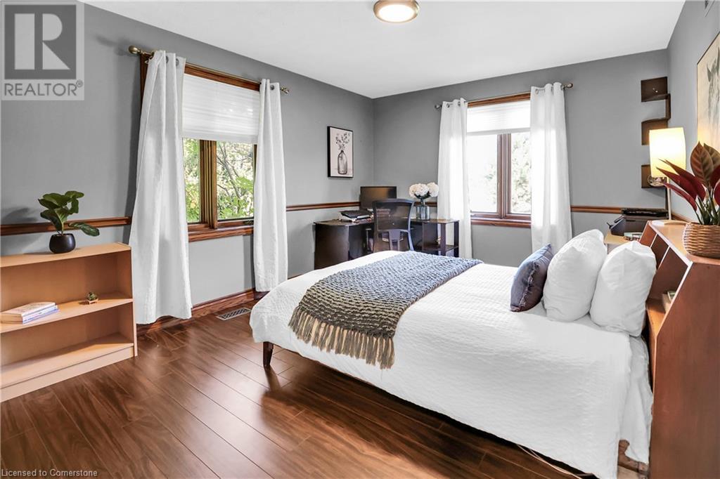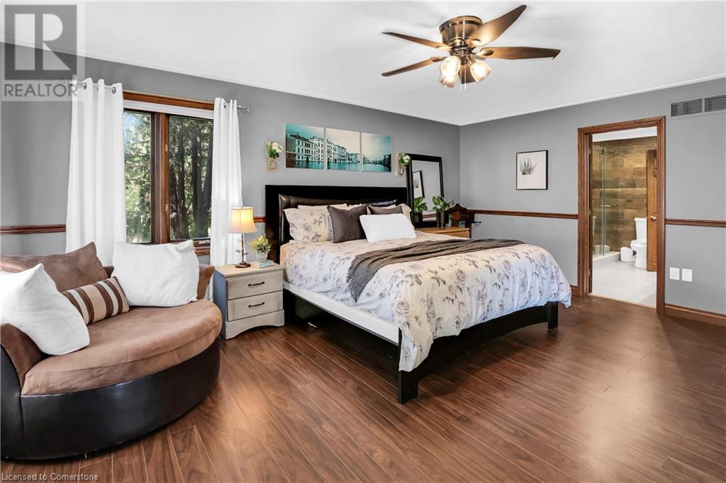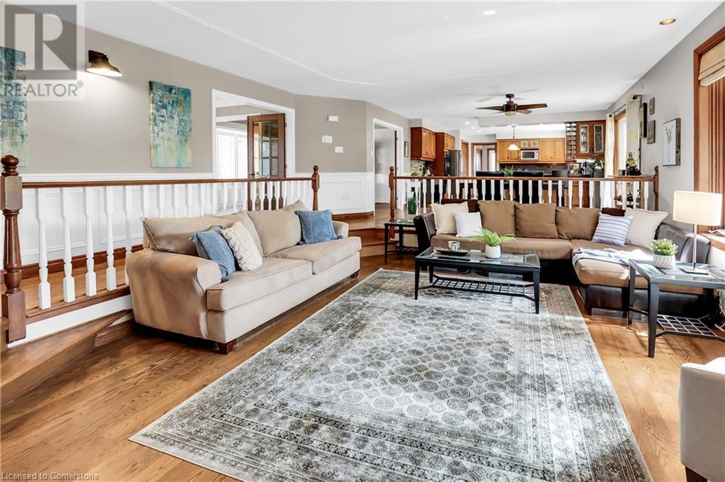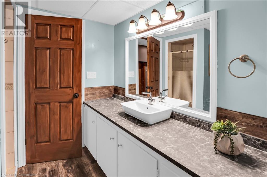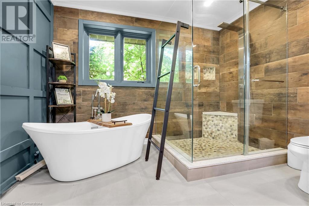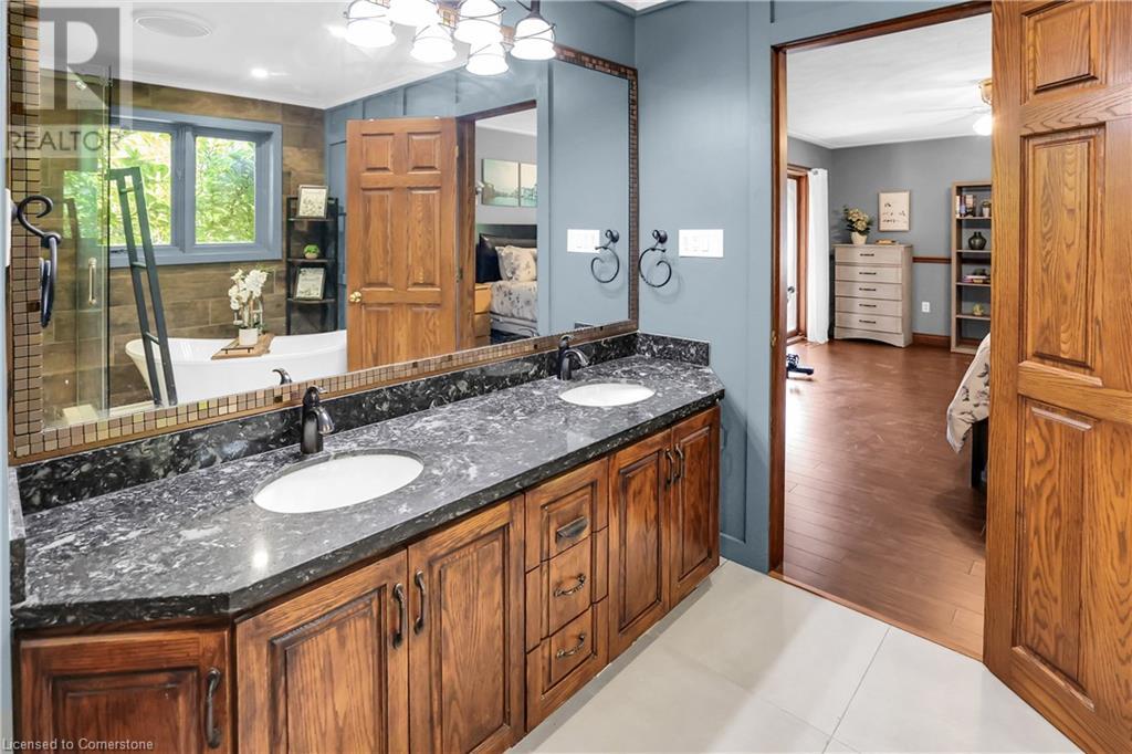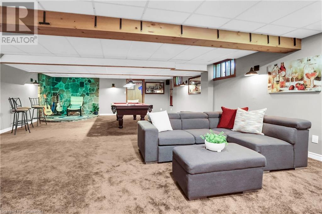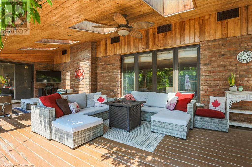 SPRAWLING BUNGALOW w/OASIS YARD...Find this RESORT-LIKE property at 3205 Binbrook Road, Binbrook, sitting in a central location close to great schools, Fairground Community Park, walking trails, library, restaurants, shopping & more. This 3+1 bedRm, 3 bath 2605 sq ft, RAISED BUNGALOW is surrounded by green space & offers a true OASIS YARD w/INGROUND POOL, custom 2-tier deck, multiple sitting areas, cabana/pool house, outdoor bar & beautiful armour stone along back of property. Grand foyer w/spiral staircase, crystal chandelier & slate tile leads through FRENCH doors to formal dinRm w/BAY window & second set of FRENCH DOORS to oversized, GOURMET, EAT-IN kitchen boasting GRANITE counters, XL island w/gas cooktop, abundant cabinetry & pantry closet, plus WALK OUT to huge, covered deck w/6 skylights & sitting areas. Sunken livRm w/hdwd floors, wood fireplace & picture windows overlooks backyard. Spacious primary bedRm w/private WALK OUT to back deck, WALK IN closet & ensuite privilege to STUNNING 5-pc bath w/heated floors, soaker tub & separate shower. 2 more bedrooms & updated 3-pc bath complete the level. Lower level offers plush carpet throughout (2020), solid oak WET BAR & 6 stools, 4-pc bath, plus BONUS ROOM could be bedroom, office, mancave - whatever you desire! Separate side entry w/porch leads to mudroom w/storage, laundry & attached DOUBLE GARAGE & driveway w/enough parking for an RV, boat or 18 cars! CLICK ON MULTIMEDIA for video tour, drone photos & more. (id:55009)
