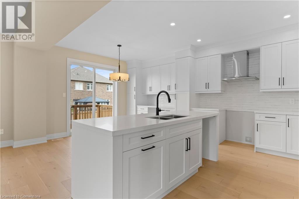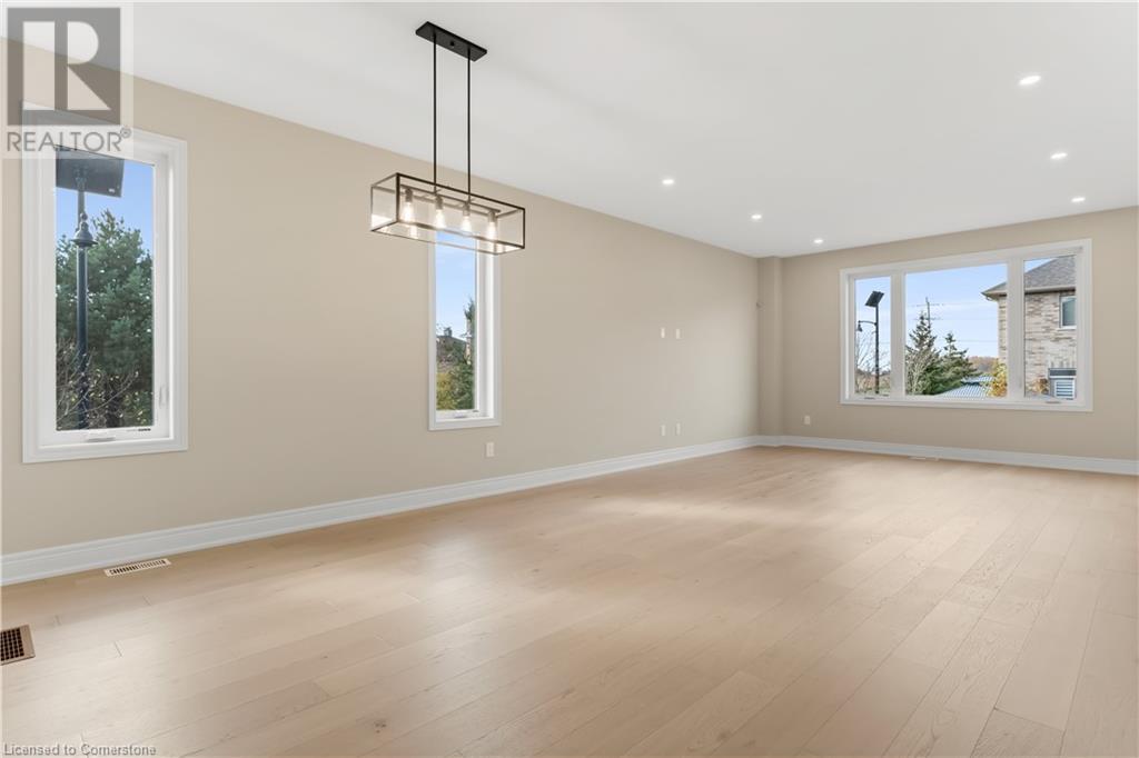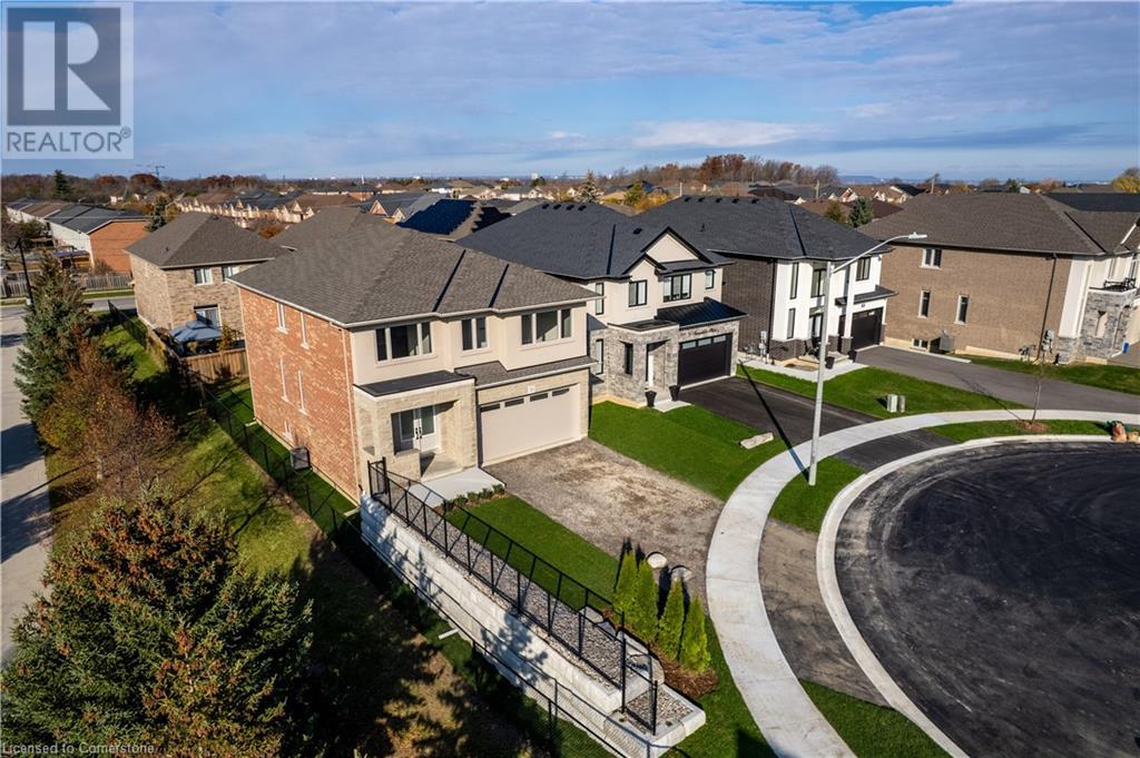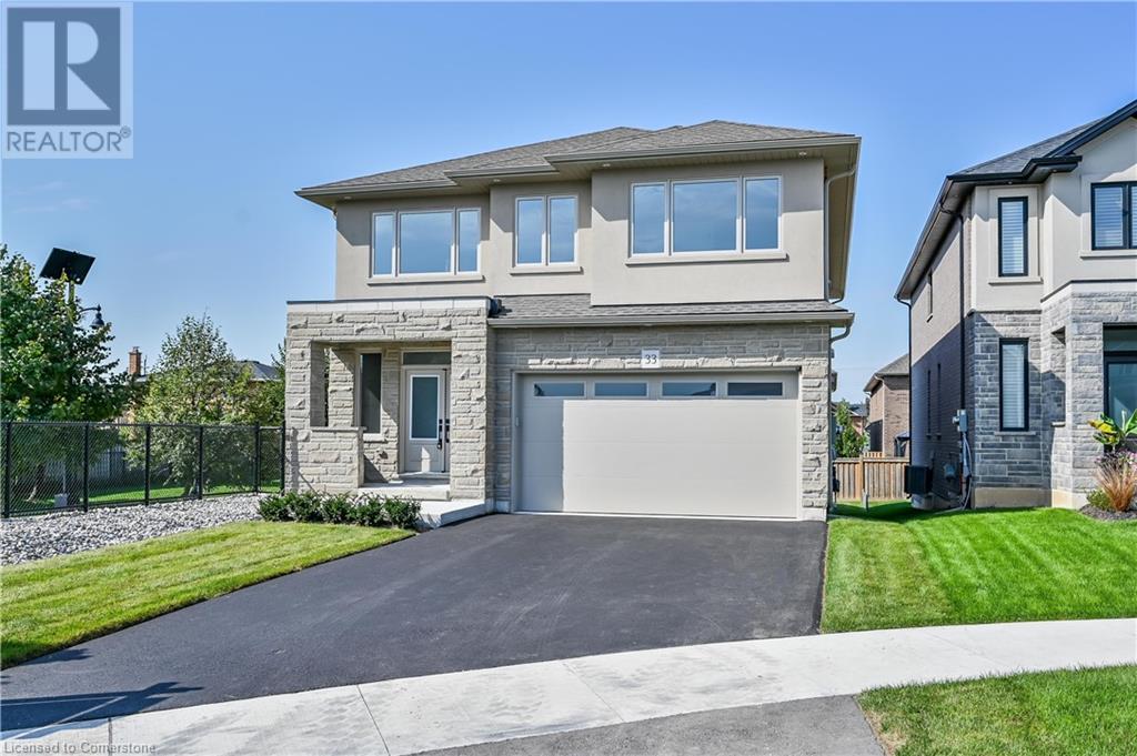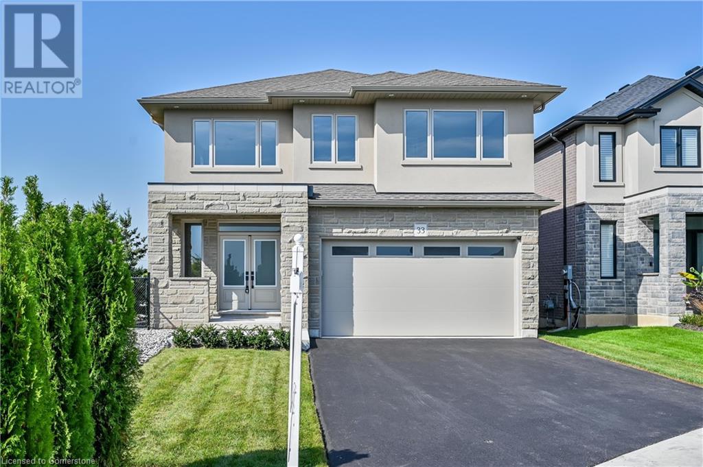 STYLISH ELEGANCE... 33 Hampshire Place sits in a sought-after Stoney Creek Mountain neighbourhood in an EXCLUSIVE court close to all amenities, movie theatre, restaurants, and access to several great parks, schools, walkways, plus quick highway access. This CUSTOM, SILVESTRI-BUILT, all brick, stone and stucco home boasts 4 bedrooms, 3 bathrooms with many UPGRADES throughout. BIG, OPEN CONCEPT main level features engineered hardwood floors, upgraded (24' x 24) tiles, and pot lights throughout. Spacious dining and living room lead to GOURMET eat-in kitchen with stone countertops and upgraded cabinetry millwork, extending into the centre island and dinette. WALK OUT through patio doors to deck and yard. Solid oak stairs with iron spindles lead to the second level offering bedroom-level laundry with cabinetry, primary suite with XL walk-in closet and LUXURIOUS 5-pc ensuite with stone counters, soaker tub, and separate glass shower. 3 more bedrooms and 4-pc bath complete the upper level. Inside access to the double, painted garage from the mudroom with built-in coat rack and storage. BONUS – FRESHLY PAVED driveway, fully sodded lot + exterior pot lights. HST included in price. (id:55009)