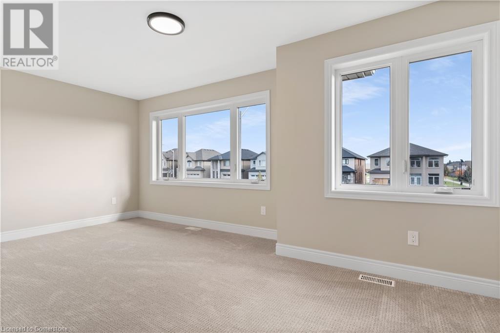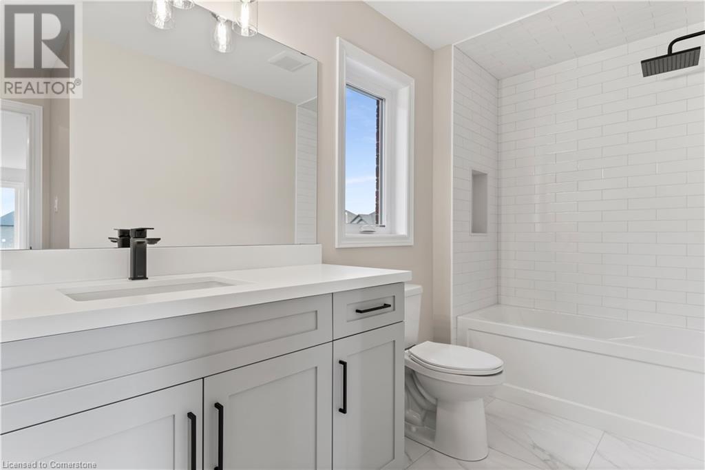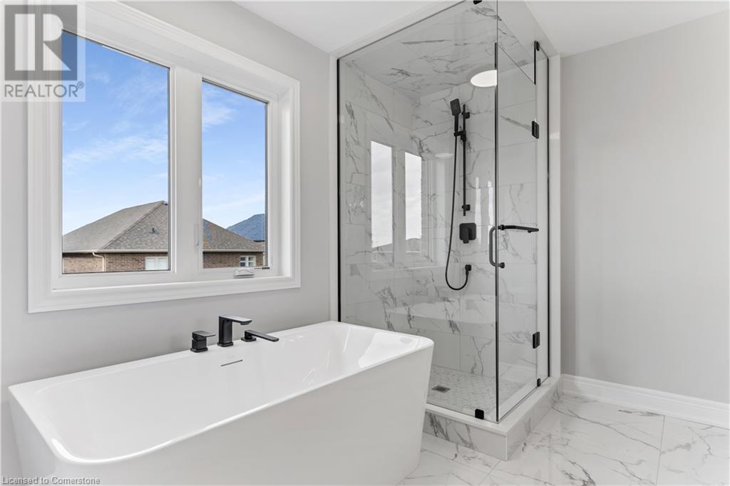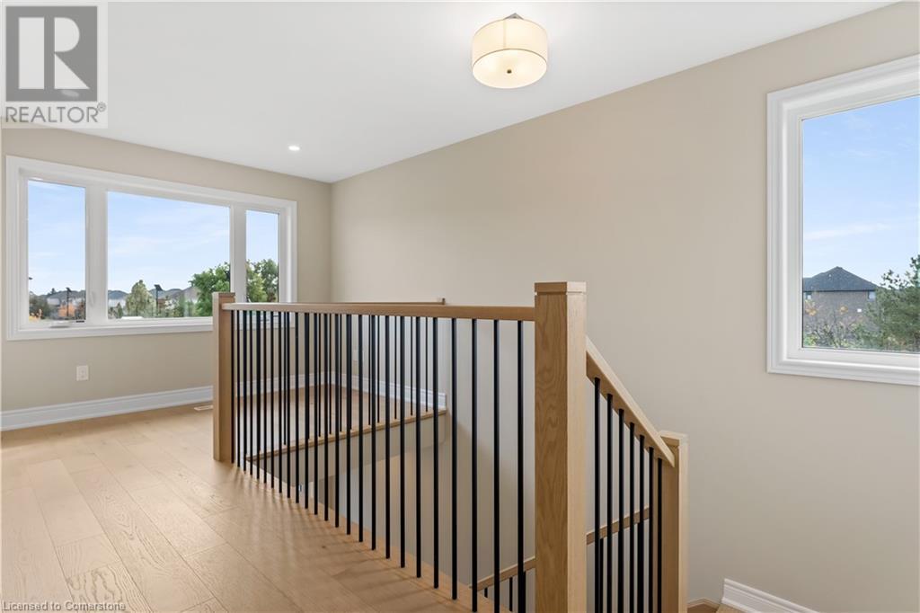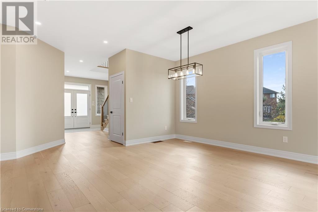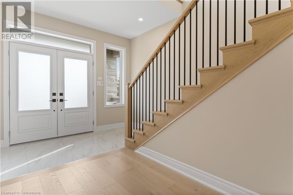 STYLISH ELEGANCE... 33 Hampshire Place sits in a sought-after Stoney Creek Mountain neighbourhood in an EXCLUSIVE court close to all amenities, movie theatre, restaurants, and access to several great parks, schools, walkways, plus quick highway access. This CUSTOM, SILVESTRI-BUILT, all brick, stone and stucco home boasts 4 bedrooms, 3 bathrooms with many UPGRADES throughout. BIG, OPEN CONCEPT main level features engineered hardwood floors, upgraded (24' x 24) tiles, and pot lights throughout. Spacious dining and living room lead to GOURMET eat-in kitchen with stone countertops and upgraded cabinetry millwork, extending into the centre island and dinette. WALK OUT through patio doors to deck and yard. Solid oak stairs with iron spindles lead to the second level offering bedroom-level laundry with cabinetry, primary suite with XL walk-in closet and LUXURIOUS 5-pc ensuite with stone counters, soaker tub, and separate glass shower. 3 more bedrooms and 4-pc bath complete the upper level. Inside access to the double, painted garage from the mudroom with built-in coat rack and storage. BONUS – FRESHLY PAVED driveway, fully sodded lot + exterior pot lights. HST included in price. (id:55009)