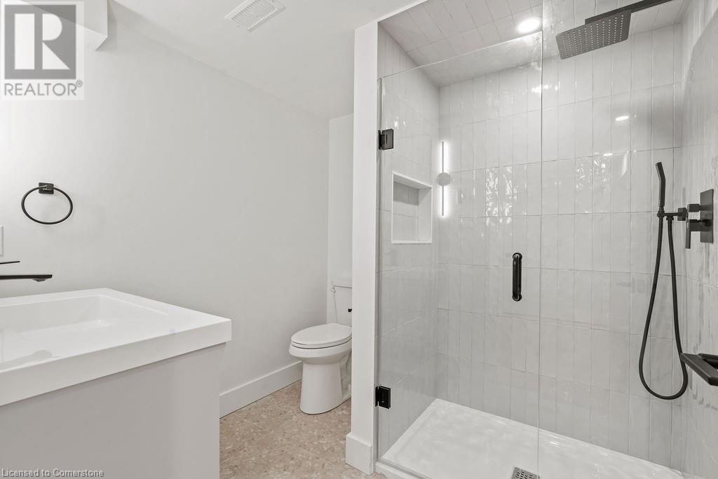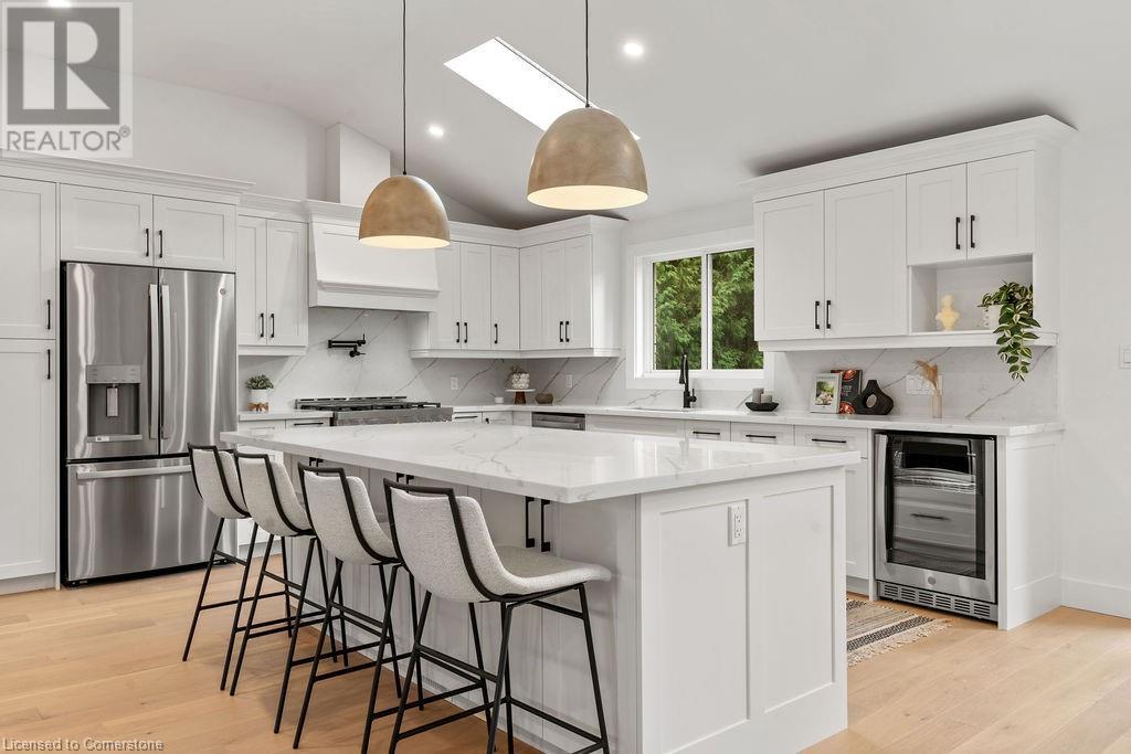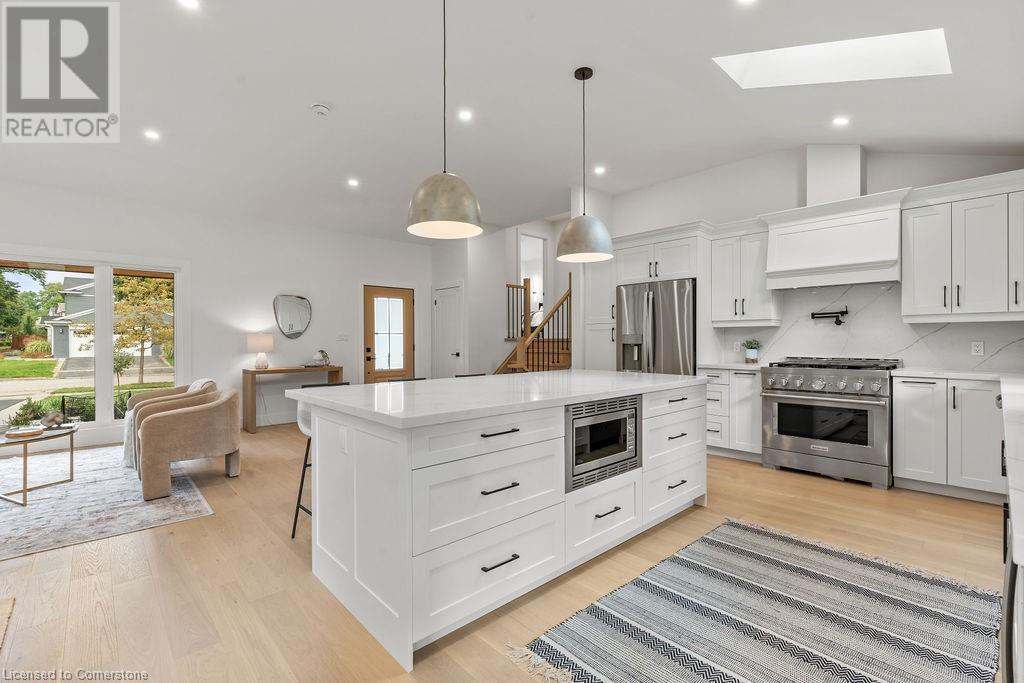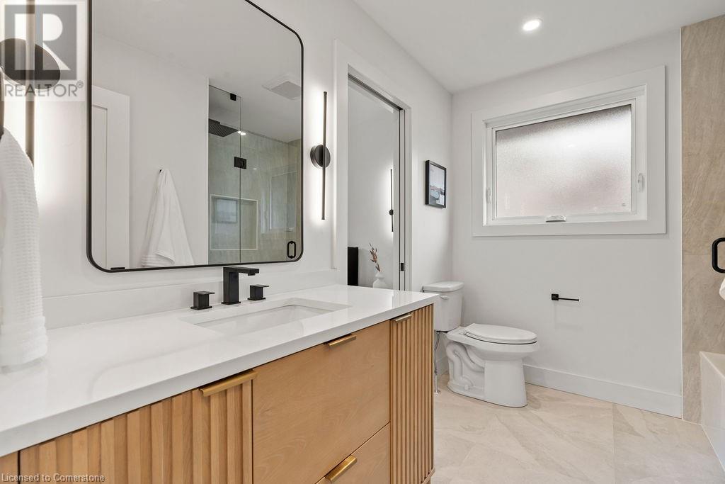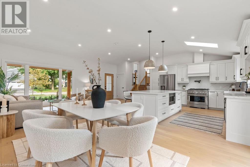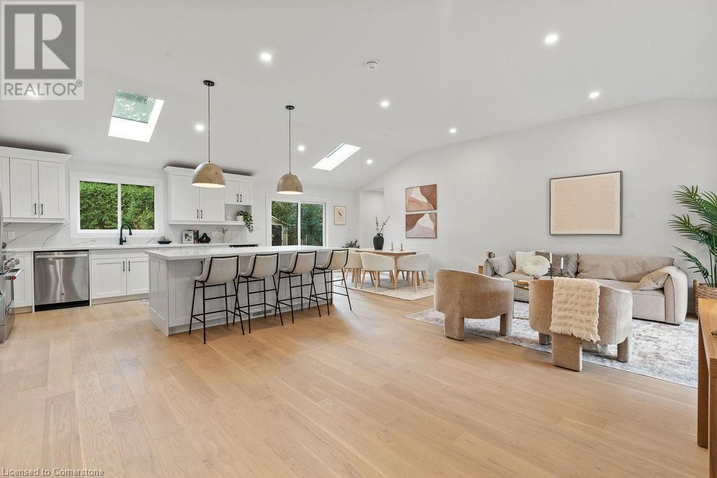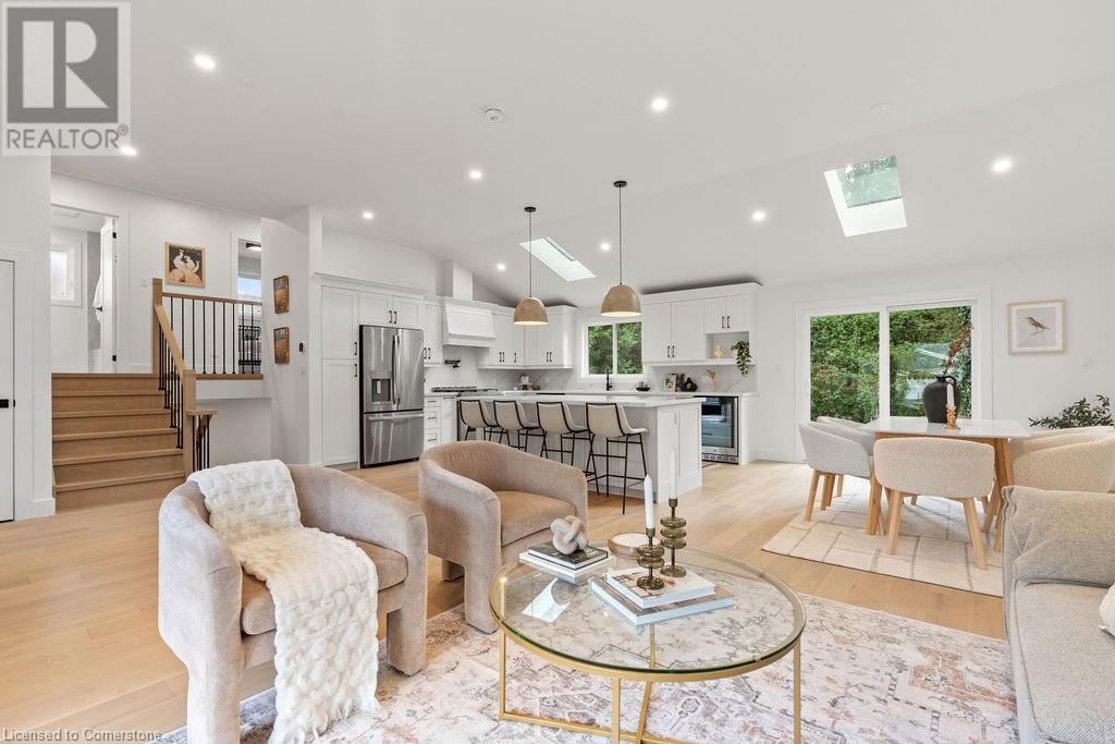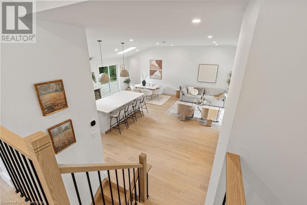 This incredible home is situated on a quiet street in Roseland and has been COMPLETELY & NEWLY RENOVATED INSIDE AND OUT! Boasting top quality finishes and situated on a private 61-foot x 115-foot lot, this is the perfect home for young families and empty nesters/retirees alike. Featuring 3+1 bedrooms, 3 full bathrooms and a stunning open-concept floor plan, this home is a must-see. The main floor has vaulted ten-foot smooth ceilings with pot lights and wide plank engineered hardwood flooring. The kitchen is wide open to the living / dining rooms and features 2 skylights, custom cabinetry, a large island, quartz counters & backsplash, gourmet stainless steel appliances and backyard access! The main floor also includes a mudroom with custom built-ins and garage access. The top floor of the home includes 3 bedrooms and a spa-like bathroom with heated flooring and ensuite privileges. The lower level is filled with natural light and includes a large family room, 4th bedroom, 3-piece bathroom with heated flooring and a separate WALK UP to the backyard! The lowest level includes another family room / rec room, 3-piece bathroom with heated flooring, a large laundry room and plenty of storage! The exterior of the home boasts amazing curb appeal, a fully fenced yard with a large stone patio, and a single car garage with a DOUBLE WIDE driveway with parking for 4 cars! Situated in a quiet neighbourhood and close to all amenities- this home is completely move-in ready! (id:55009)
