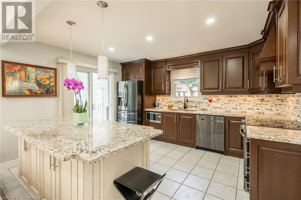 Welcome to this exquisite custom-built home in the coveted Gurnett neighbourhood of Hamilton’s West Mountain. This four-bedroom, four-bath residence offers unparalleled luxury and functionality. The main level features an open-concept living area with high ceilings, a gourmet kitchen with top-of-the-line appliances, and a cozy family room with a fireplace. The spacious primary suite includes a lavish ensuite bath and walk-in closet. The bedroom level also has an updated 4-piece bath. The lower level boasts a beautifully tenanted apartment, perfect for guests or rental income. Enjoy the convenience of being near parks, top-rated schools, shopping, and easy highway access. This home combines elegance, comfort, and prime location, making it the perfect choice for discerning buyers. Don’t wait on this one! (id:55009)