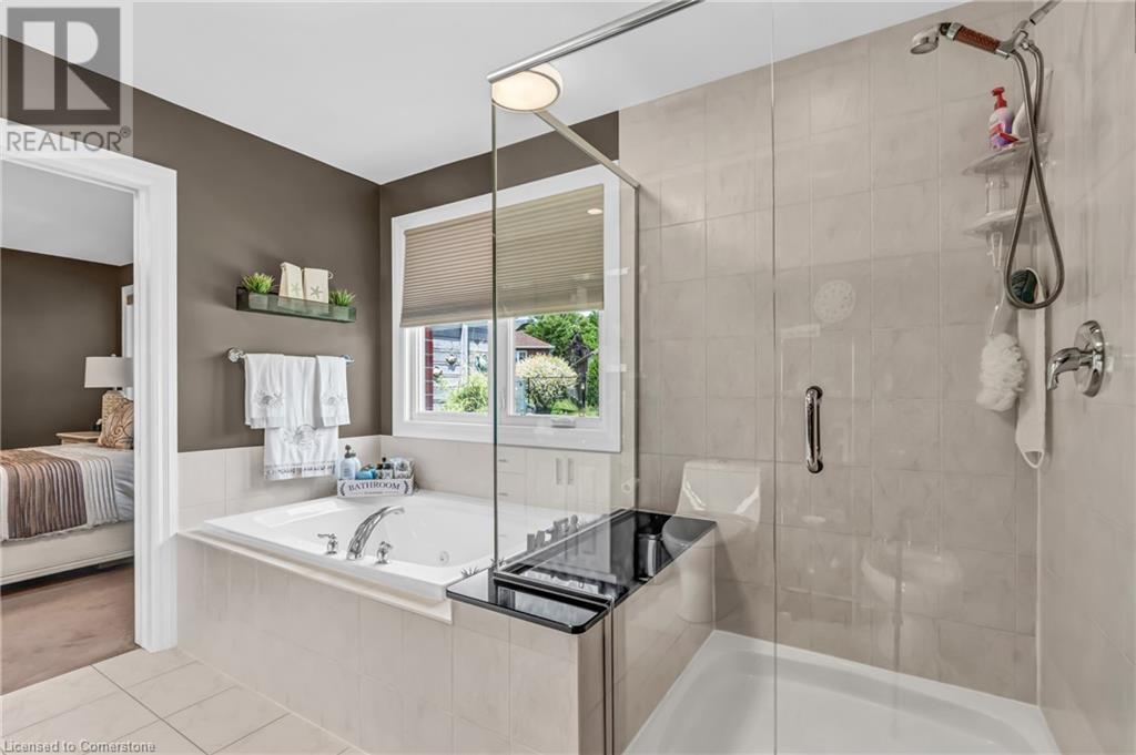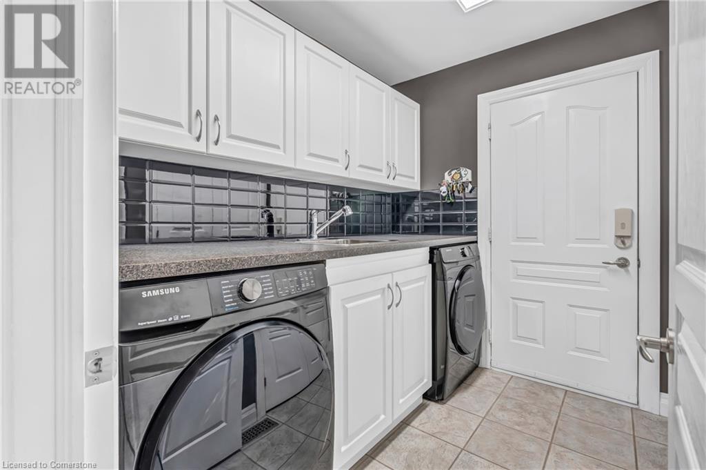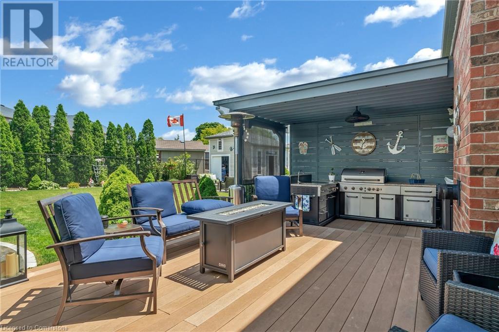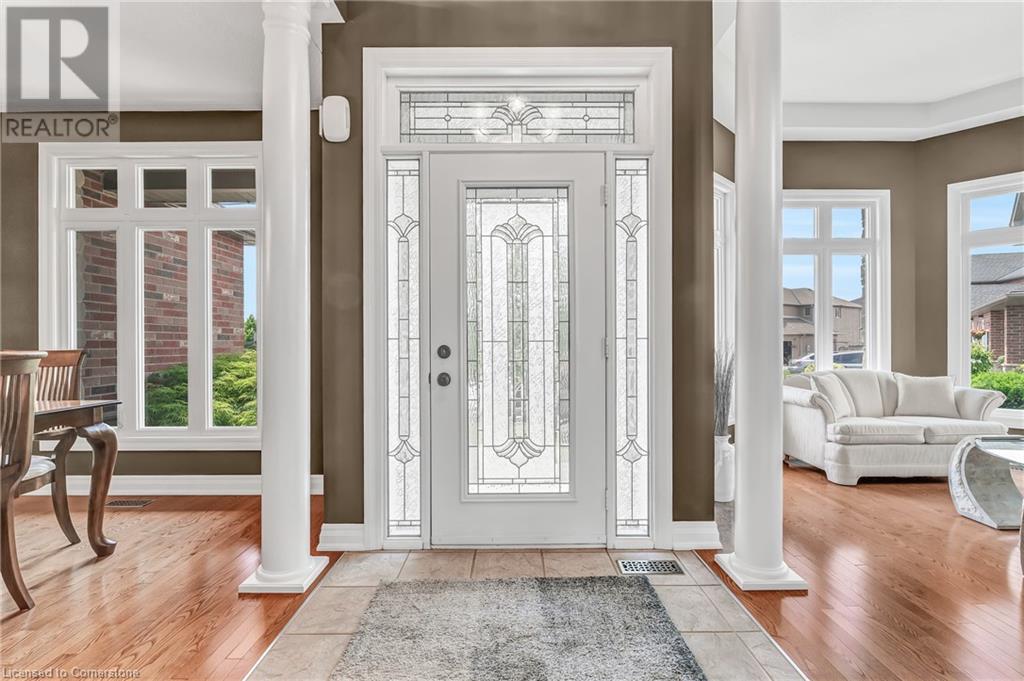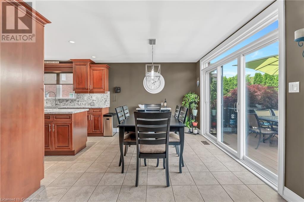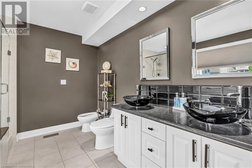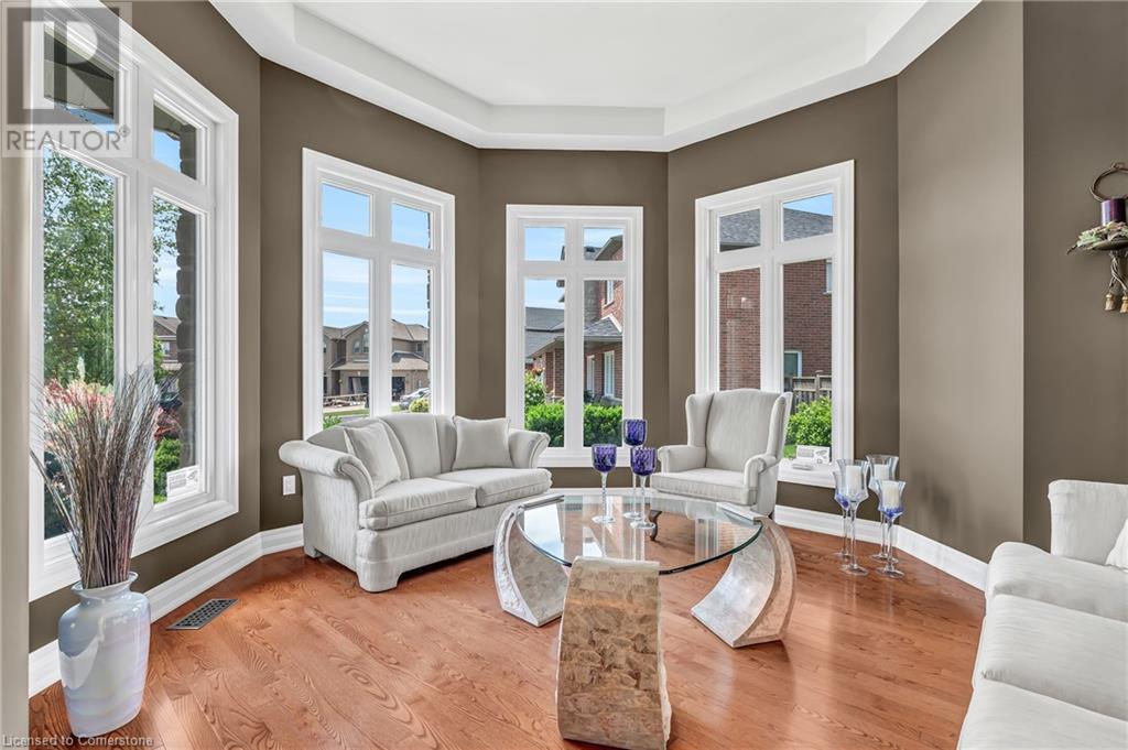 Custom-built home with over 5000sf of finished living space, meticulously maintained by original owners. It offers 2 primary bedrooms, as well as a full in law suite, ideal for a multi generational family. Situated on an oversized pie shaped lot, 10 min to Upper James shopping. This stunning property boasts a wide stamped concrete drive w/ parking for 4 vehicles + oversized double car garage, 11 ft in height, w/ 9 foot high garage doors, perfect to accommodate a car lift. Main floor features a dream kitchen with custom cabinetry, quartz countertops, extra large sink & eating area with oversized patio door leading to the backyard oasis. Main floor primary bed w/ walk in closet & 6pc ensuite. Bright & spacious 2 storey family rm w/ natural gas fireplace, separate living & dining room, bed/office, 2 pc bath & main floor laundry off of the garage. The upper level offers a family room, 3 bedrooms, including 2 that offer ensuites & walk in closets. Fully finished basement has a full kitchen with dining area, rec room, bed w/ ensuite privilege to 3pc bath, office, workshop, 2nd laundry rm, + hot tub & hobby room. Gorgeous backyard featuring inground saltwater pool w/ new heater, updated liner, stamped concrete surround, Trex decking on patio & in the covered outdoor kitchen area, outdoor speakers & oversized custom shed. 4 season sunroom is the perfect place to relax. Recent updates include roof shingles 2020, shed & sun rm shingles 2022, furnace & A/C 2023.This home must be seen! (id:55009)