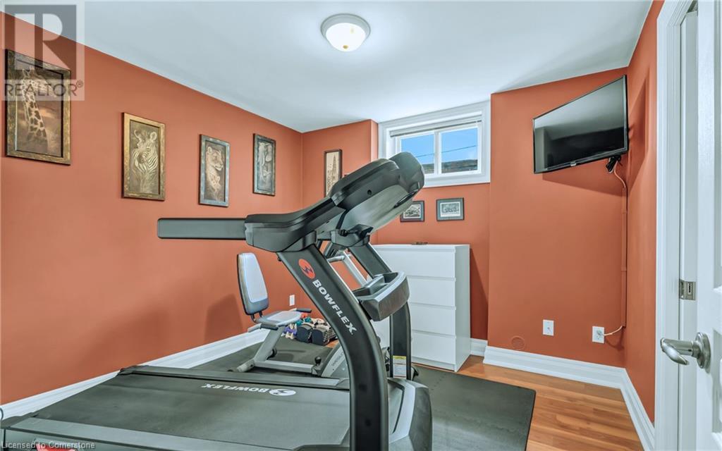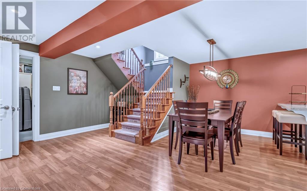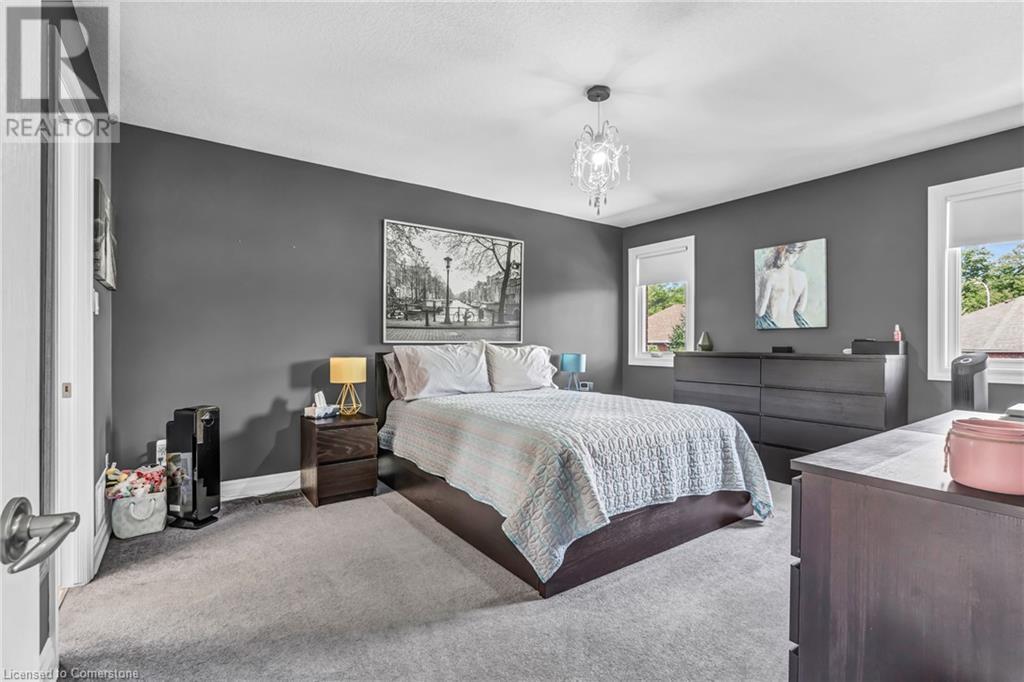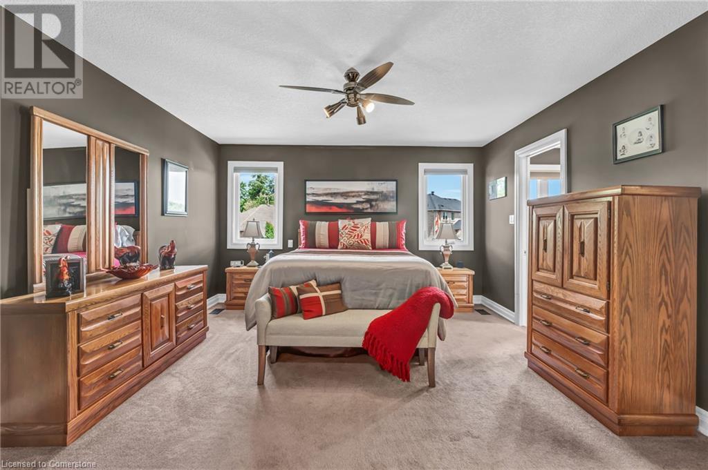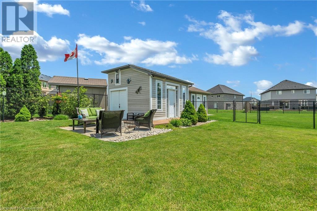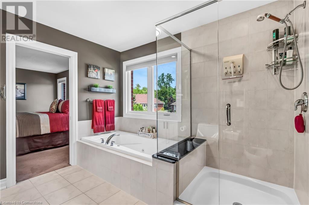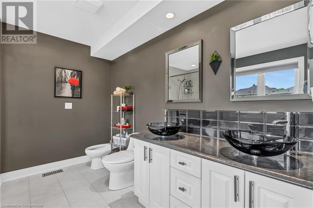 Custom-built home with over 5000sf of finished living space, meticulously maintained by original owners. It offers 2 primary bedrooms, as well as a full in law suite, ideal for a multi generational family. Situated on an oversized pie shaped lot, 10 min to Upper James shopping. This stunning property boasts a wide stamped concrete drive w/ parking for 4 vehicles + oversized double car garage, 11 ft in height, w/ 9 foot high garage doors, perfect to accommodate a car lift. Main floor features a dream kitchen with custom cabinetry, quartz countertops, extra large sink & eating area with oversized patio door leading to the backyard oasis. Main floor primary bed w/ walk in closet & 6pc ensuite. Bright & spacious 2 storey family rm w/ natural gas fireplace, separate living & dining room, bed/office, 2 pc bath & main floor laundry off of the garage. The upper level offers a family room, 3 bedrooms, including 2 that offer ensuites & walk in closets. Fully finished basement has a full kitchen with dining area, rec room, bed w/ ensuite privilege to 3pc bath, office, workshop, 2nd laundry rm, + hot tub & hobby room. Gorgeous backyard featuring inground saltwater pool w/ new heater, updated liner, stamped concrete surround, Trex decking on patio & in the covered outdoor kitchen area, outdoor speakers & oversized custom shed. 4 season sunroom is the perfect place to relax. Recent updates include roof shingles 2020, shed & sun rm shingles 2022, furnace & A/C 2023.This home must be seen! (id:55009)