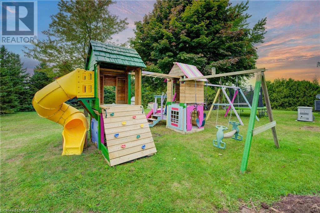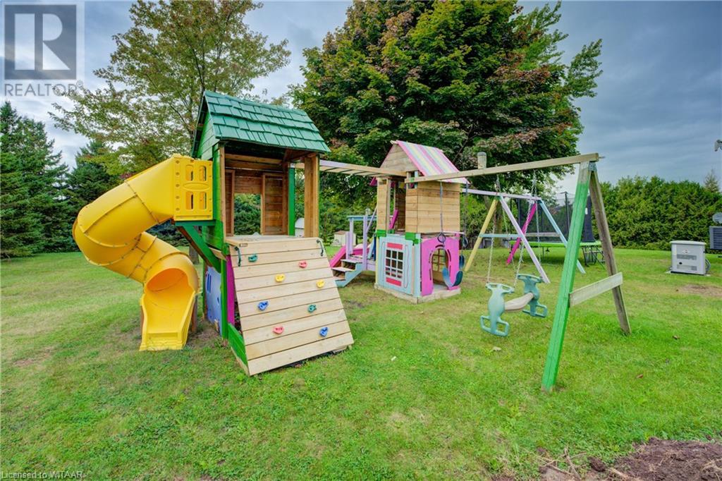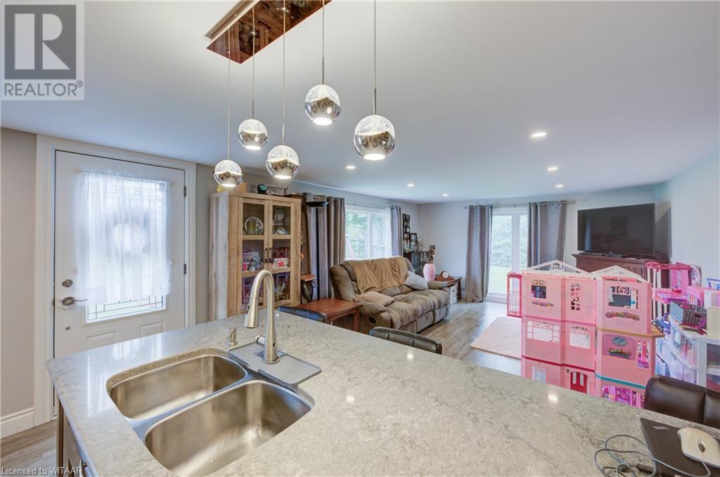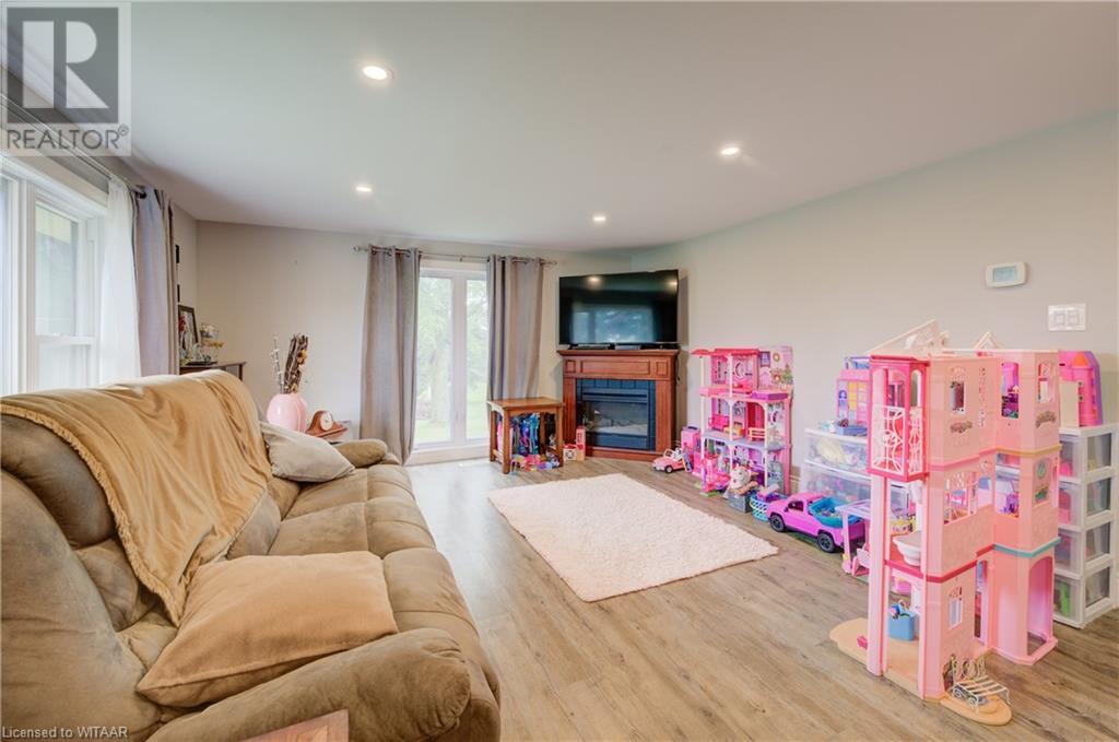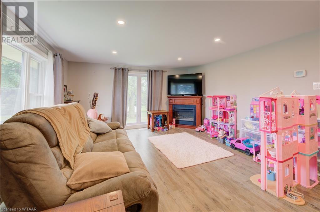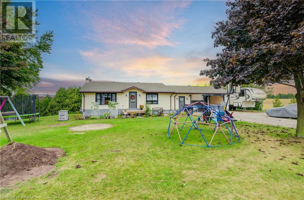 Nestled in the heart of the countryside, this stunning large bungalow offers the perfect blend of comfort and charm. Step inside to discover an inviting open-concept main floor, where the spacious country kitchen beckons you to whip up delicious meals and create lasting memories. The large living room is bathed in natural light, making it the ideal space for relaxation or entertaining friends and family. With two cozy bedrooms and a beautifully appointed 4-piece bathroom on the main floor, this home ensures convenience and privacy for all. Venture downstairs to uncover a full rec room featuring a warm fireplace—complete with an additional bedroom and bathroom. Outside, a delightful three-season room awaits, offering seamless access through patio doors to your expansive backyard. Imagine summer evenings spent outdoors, hosting barbecues or simply enjoying the tranquility of nature. The massive yard features a playground for the kids, providing them with endless opportunities for fun and adventure. Completing this idyllic property is a double-car garage, perfect for your vehicles or as a workshop for your hobbies. Don't let this amazing country dream pass you by! (id:55009)