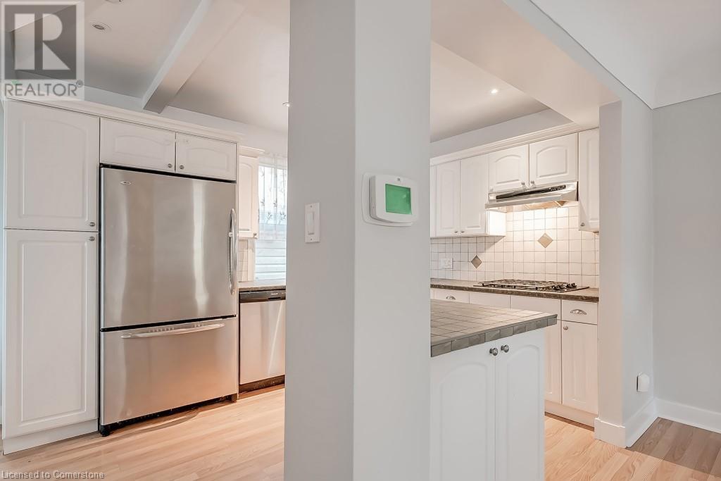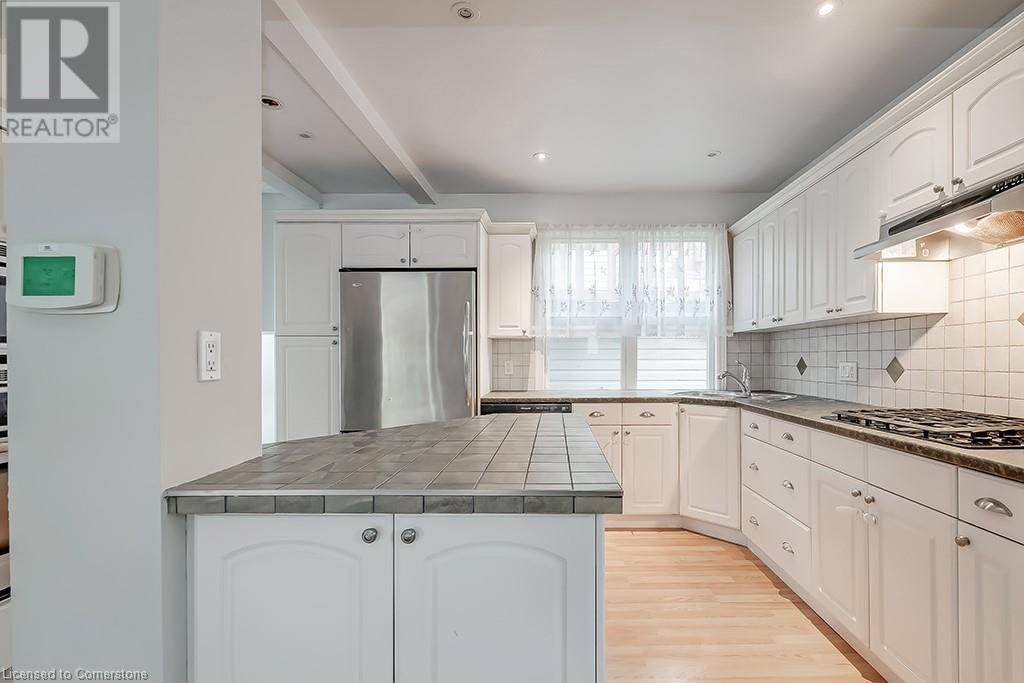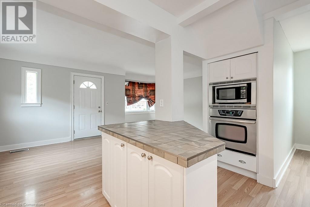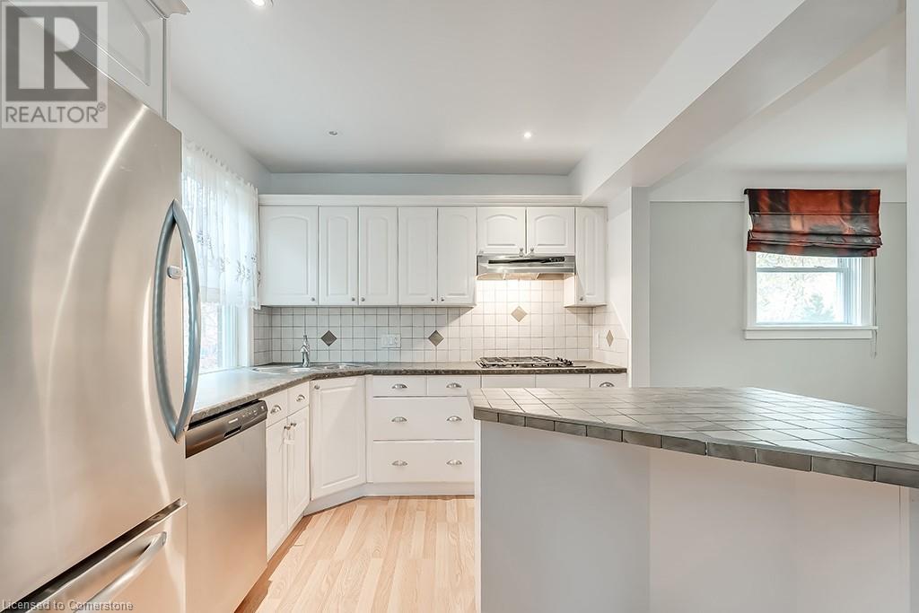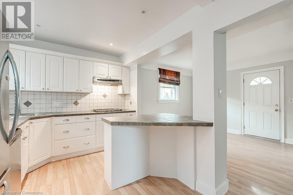 This inviting property offers a perfect blend of comfort and style, featuring 3 bedrooms, 1+2 bathrooms and approx 2100 square feet! The main level boasts an oversized foyer that leads to a spacious 28x28 showroom, presenting an exciting opportunity for a home office, studio, or creative space. This versatile area adapts to your needs, offering endless possibilities. The kitchen features white cabinetry, stainless steel appliances and a large island. The open concept main floor connects the living and dining rooms, creating a warm and welcoming space with plenty of natural light throughout! The second level features 3 spacious bedrooms with a 4-piece bathroom. The finished lowered level offers a recreation room, laundry room and ample storage! The gorgeous oversized backyard provides a private retreat for outdoor activities, gardening or simply some fresh air! The house features 2 separate entry doors with ample parking space! Conveniently located minutes to Downtown Burlington, close to all amenities, schools, and parks, making it an ideal choice for those seeking a well-rounded lifestyle. (id:55009)