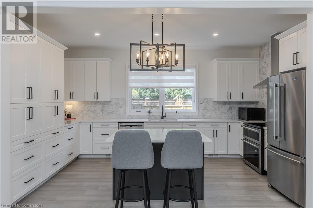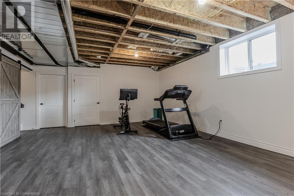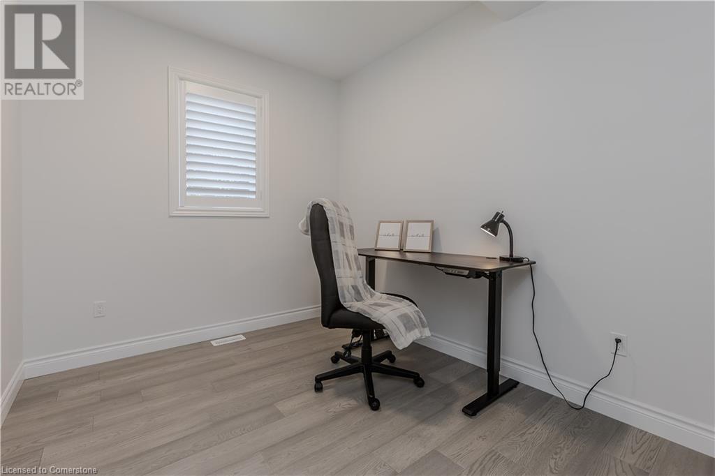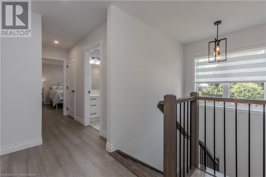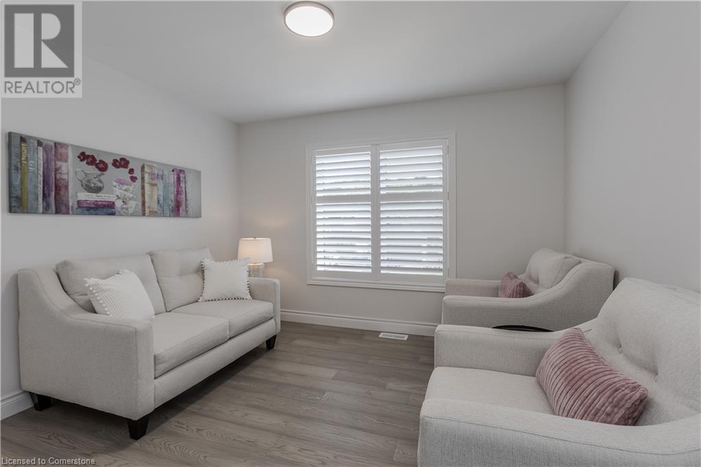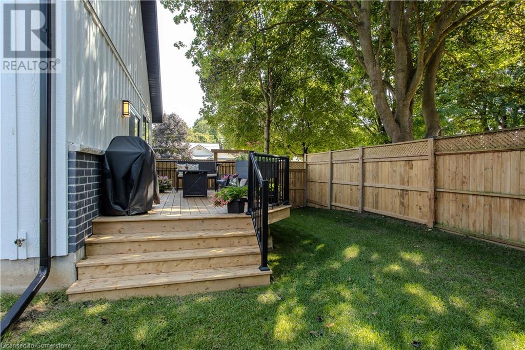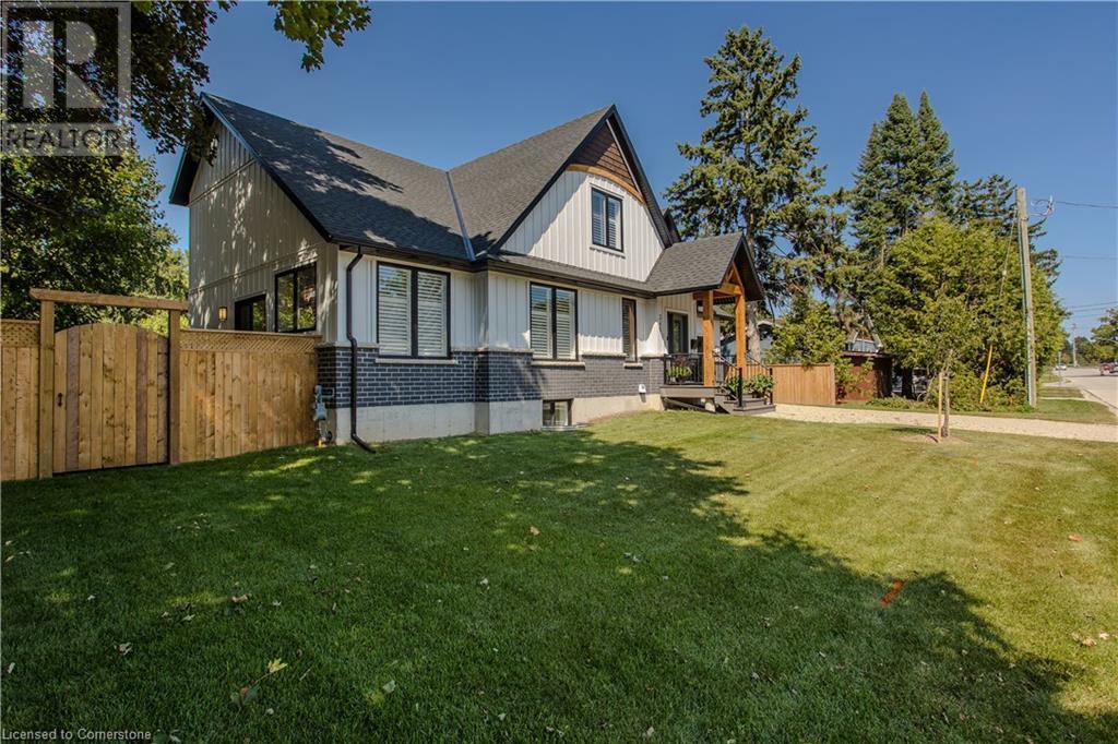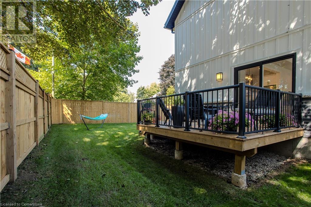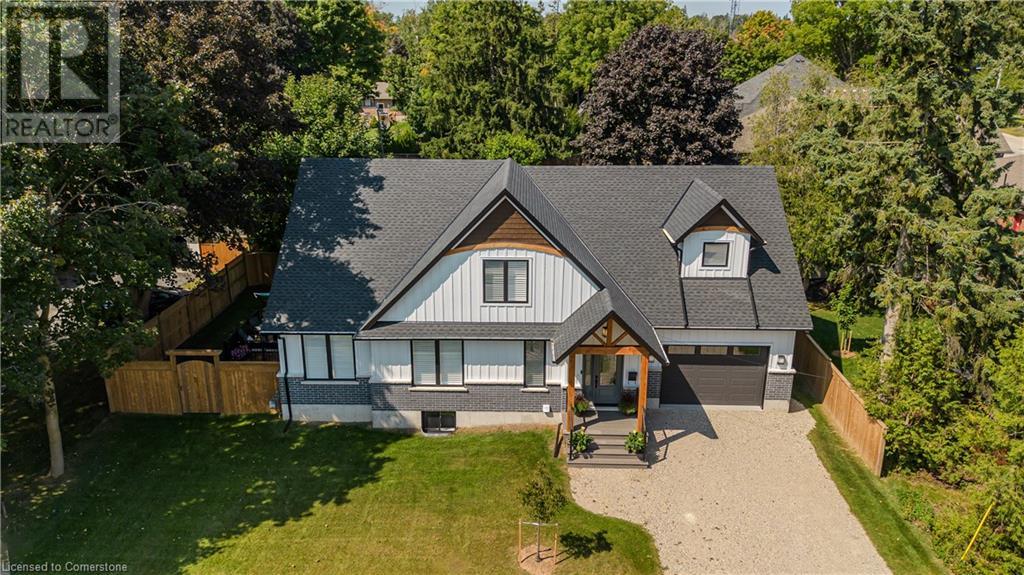Stunning 2024 custom-built 2-storey home in the heart of family-friendly Fergus! Nestled on a quiet, mature street, this home is just a short walk from downtown, schools, parks, and the Grand River, offering endless outdoor activities. With a Tarion warranty, you can rest assured of quality craftsmanship. The home boasts incredible curb appeal, with composite wood front porch. Inside, the newly finished crisp & clean modern open-concept layout is filled with natural light from the huge windows, complete with California shutters & electric blinds. The main floor offers a spacious living area, a white designer kitchen with quartz countertops, SS appliances, marble backsplash, pantry & breakfast bar. A home office is conveniently located on the main level, perfect for remote work. Step outside to a beautiful private backyard surrounded by mature trees, with a side deck and new fencing, ideal for entertaining or creating your dream outdoor oasis. The oversized garage is pristine, fully insulated, and drywalled. Upstairs, you’ll find 3 bedrooms & 2 full baths, including a primary suite with 3PC ensuite and walk-in closet. Laundry hookups are available in the 2nd-floor linen closet. The partially finished lower level, with large windows & high ceilings, offers potential for customization, complete with a 3PC rough-in for a bathroom and a crawl space for storage. This home is a rare find, combining thoughtful design with top-notch finishes. Don’t miss your chance to make it yours! (id:55009)