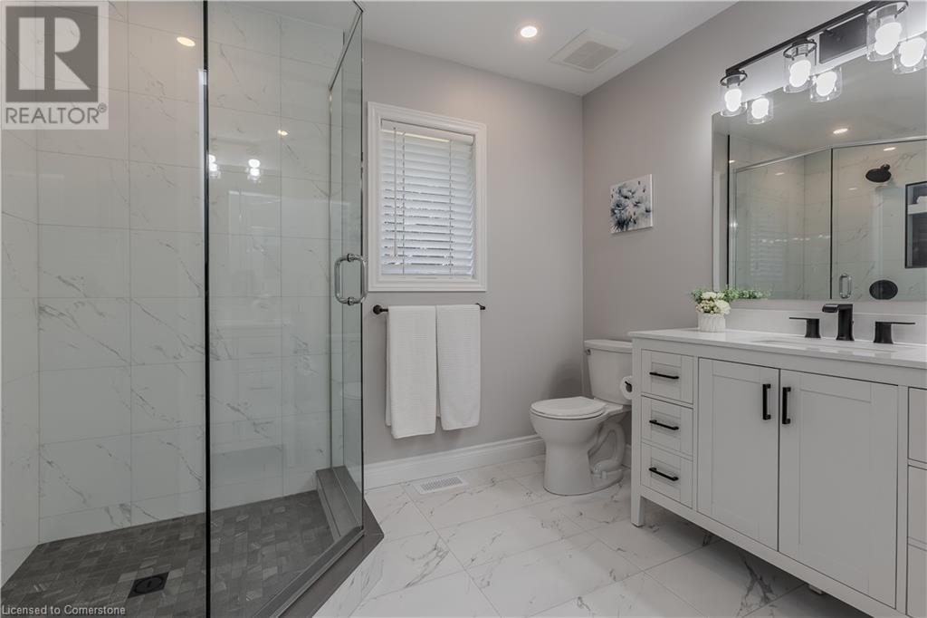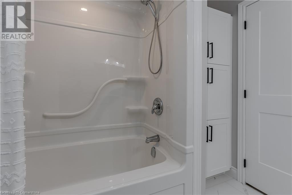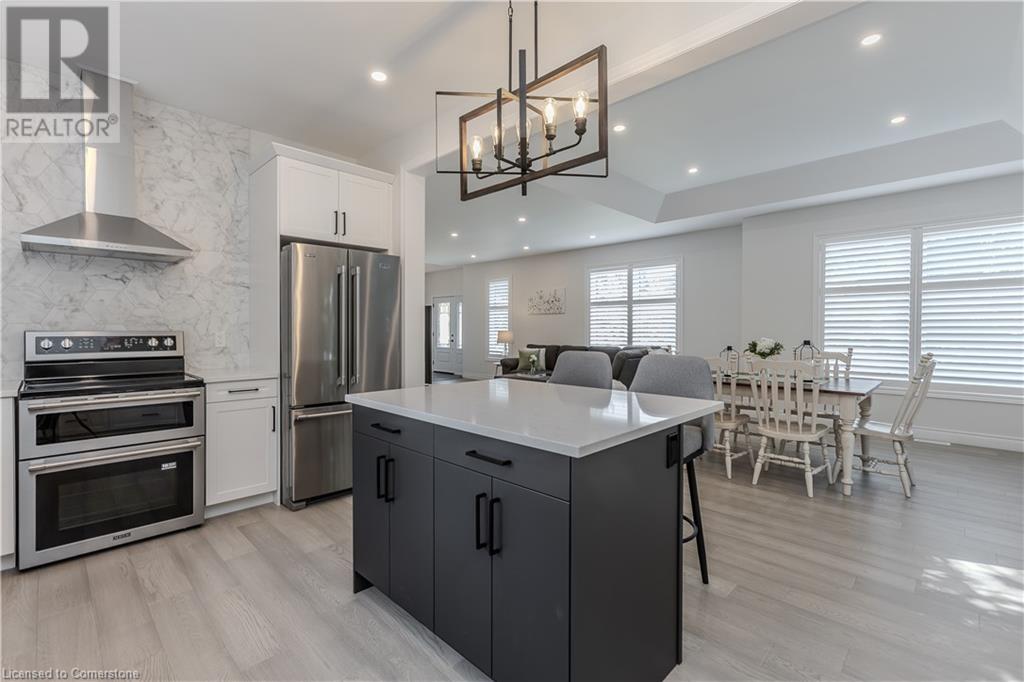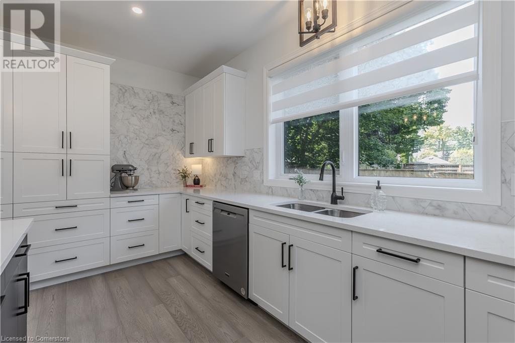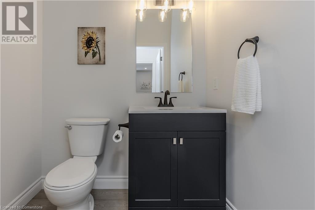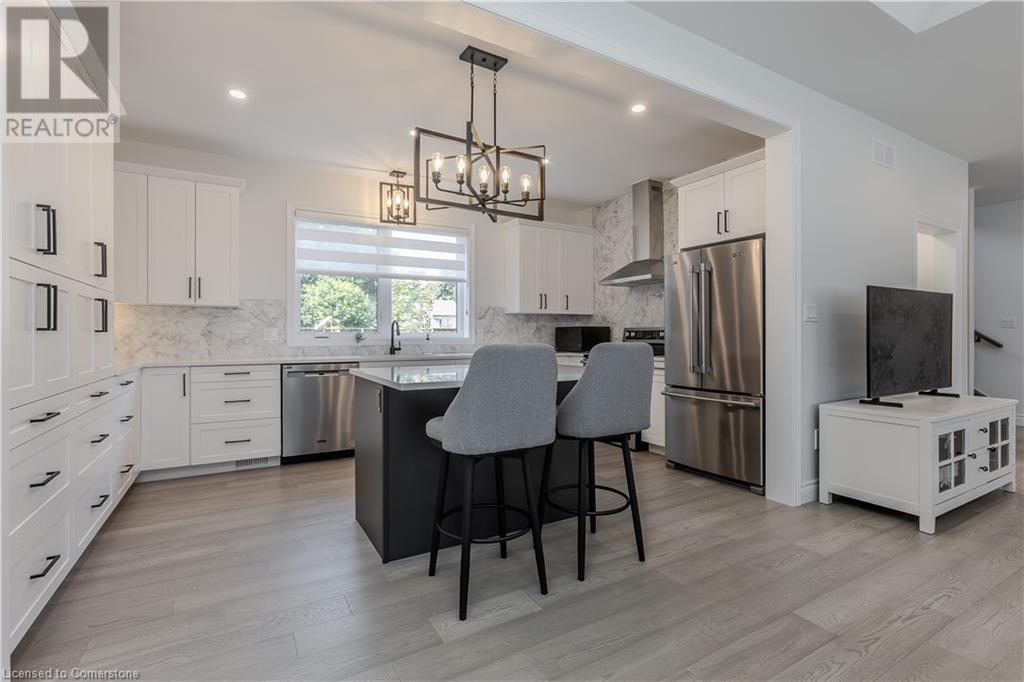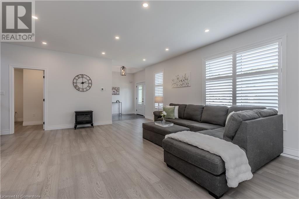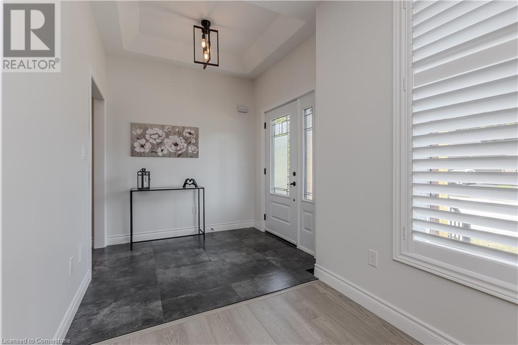 Stunning 2024 custom-built 2-storey home in the heart of family-friendly Fergus! Nestled on a quiet, mature street, this home is just a short walk from downtown, schools, parks, and the Grand River, offering endless outdoor activities. With a Tarion warranty, you can rest assured of quality craftsmanship. The home boasts incredible curb appeal, with composite wood front porch. Inside, the newly finished crisp & clean modern open-concept layout is filled with natural light from the huge windows, complete with California shutters & electric blinds. The main floor offers a spacious living area, a white designer kitchen with quartz countertops, SS appliances, marble backsplash, pantry & breakfast bar. A home office is conveniently located on the main level, perfect for remote work. Step outside to a beautiful private backyard surrounded by mature trees, with a side deck and new fencing, ideal for entertaining or creating your dream outdoor oasis. The oversized garage is pristine, fully insulated, and drywalled. Upstairs, you’ll find 3 bedrooms & 2 full baths, including a primary suite with 3PC ensuite and walk-in closet. Laundry hookups are available in the 2nd-floor linen closet. The partially finished lower level, with large windows & high ceilings, offers potential for customization, complete with a 3PC rough-in for a bathroom and a crawl space for storage. This home is a rare find, combining thoughtful design with top-notch finishes. Don’t miss your chance to make it yours! (id:55009)