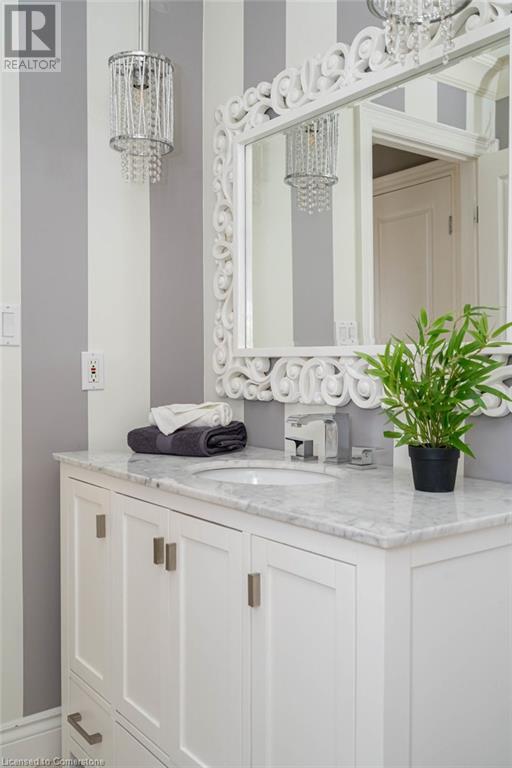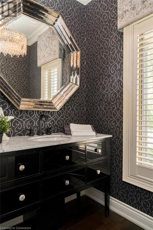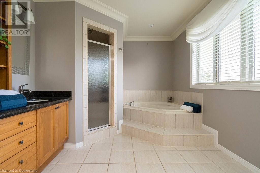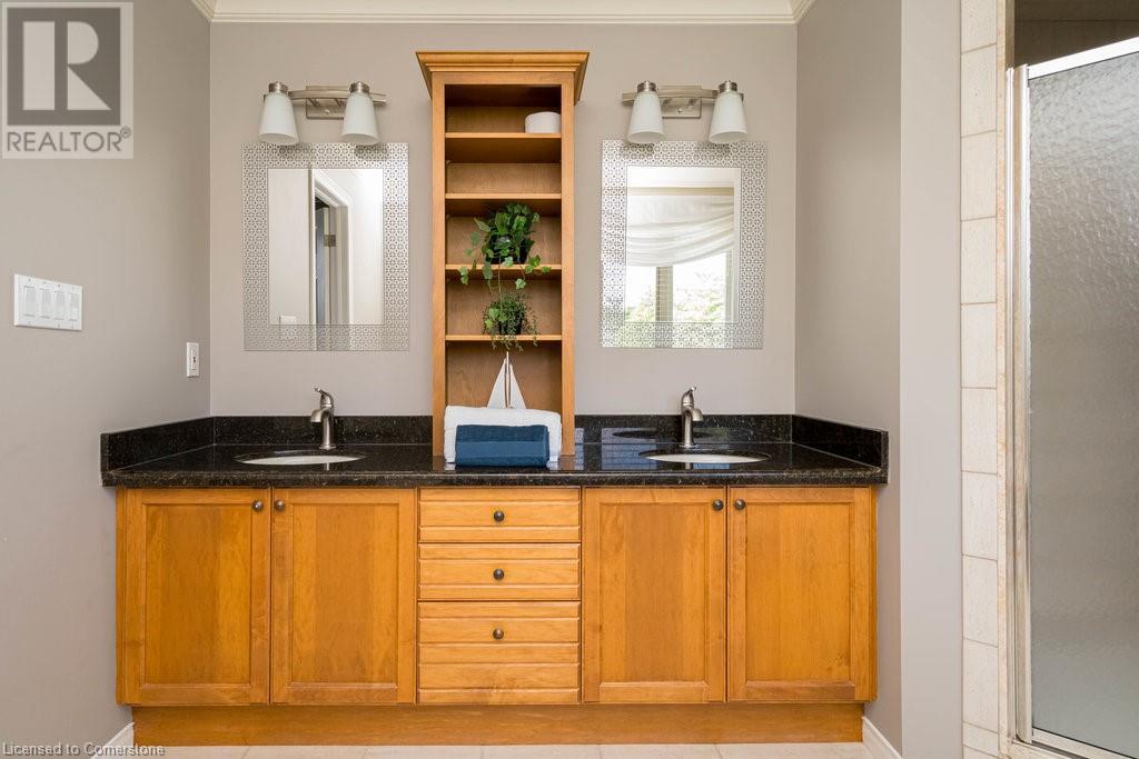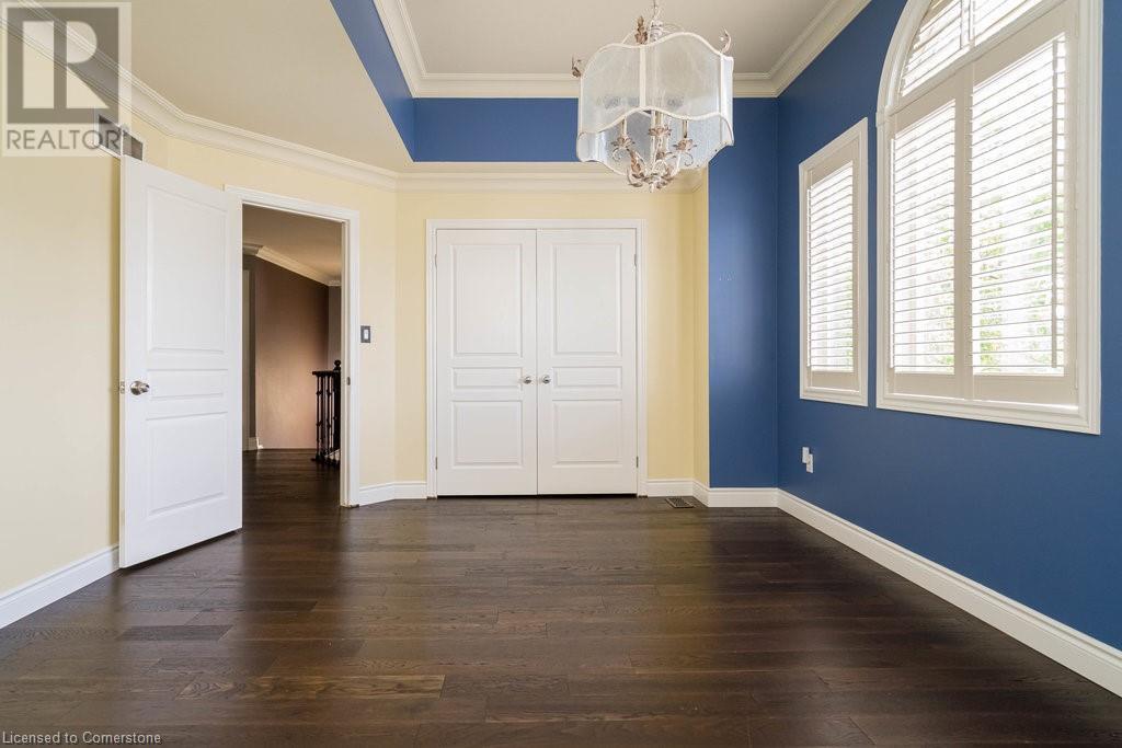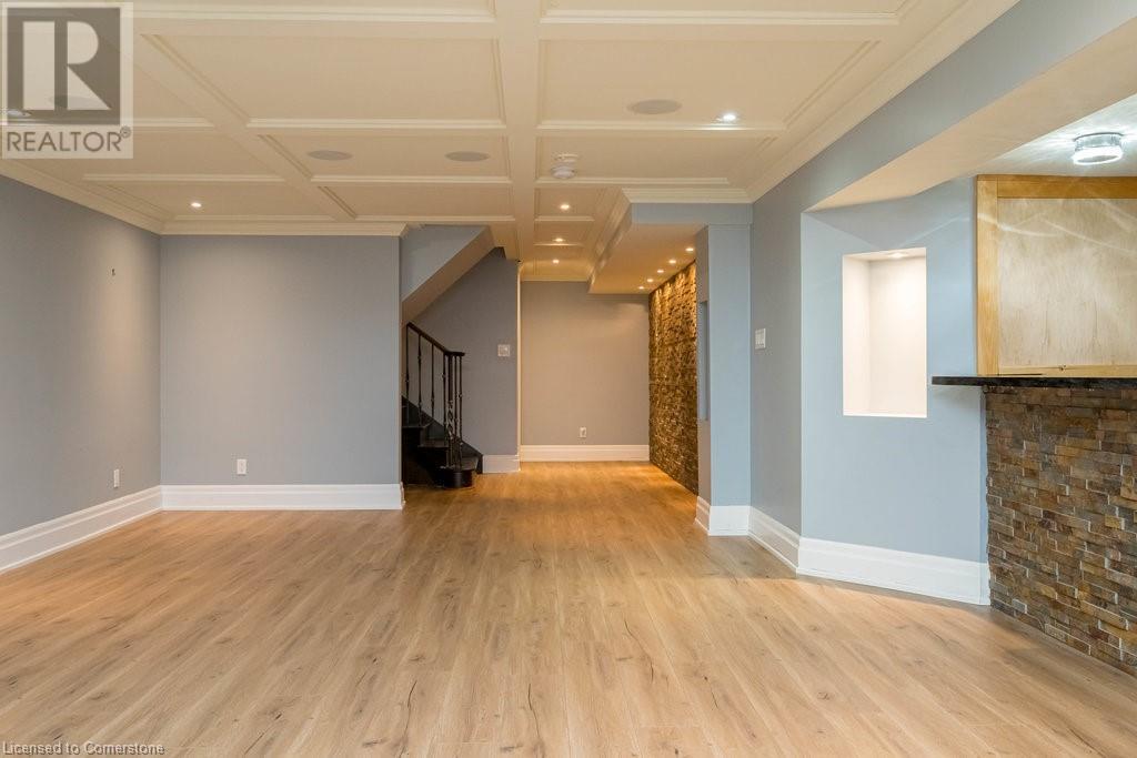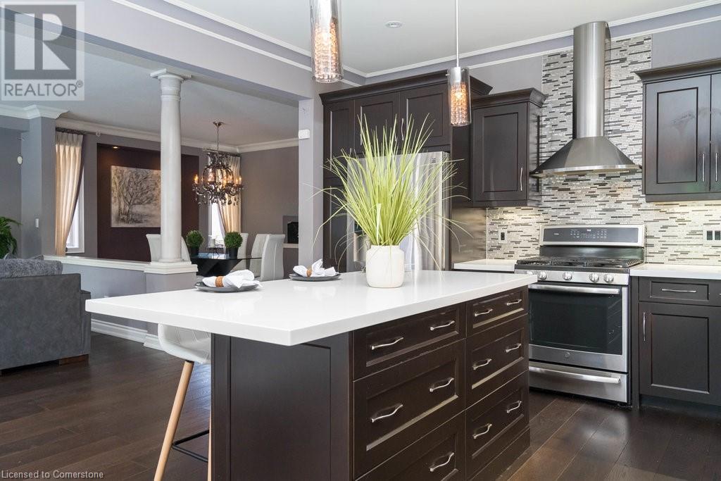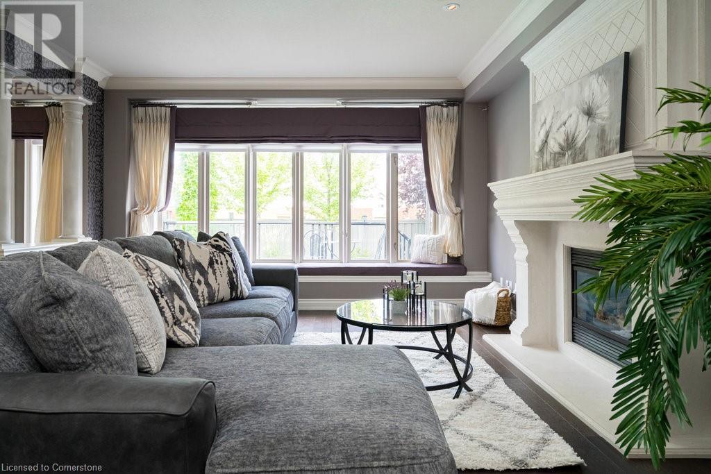 Striking curb appeal and this lovely 2 storey Brick & Stucco Home in South Meadowlands of Ancaster. Enter the welcoming foyer w/ Cathedral ceiling & 2pc Powder room. Coffered ceilings in the elegant Dining room, Quartz counters & island in the sleek Kitchen w/ breakfast area, and Family room w/ gas FP enjoys lovely views of the fenced b/yard! Perfect for Entertaining family & friends. Hardwood most areas & gorgeous staircase leads to the 2nd level w/ 4 spacious bdrms, 5 pc. Ensuite, 4 pc. bth & great closet space. Finished Lower Level w/ Home Theatre room w/ Fireplace, a dry bar, Office & 2 pc. Bthrm * w/out to the In-ground S/W Water Pool w a ZenWaterfall, concrete patio, even a bunky w/ sink & storage space * Dbl. garage w/ inside entry to main floor laundry. Concrete drive fits 4 cars. Close to schools, parks, shopping, the 403, bus & transit routes & most amenities you want in a wonderful family friendly locale! NB; Some staged room photos from previous listing, (same owners).Vacant possession 01/03/2025. (id:55009)
