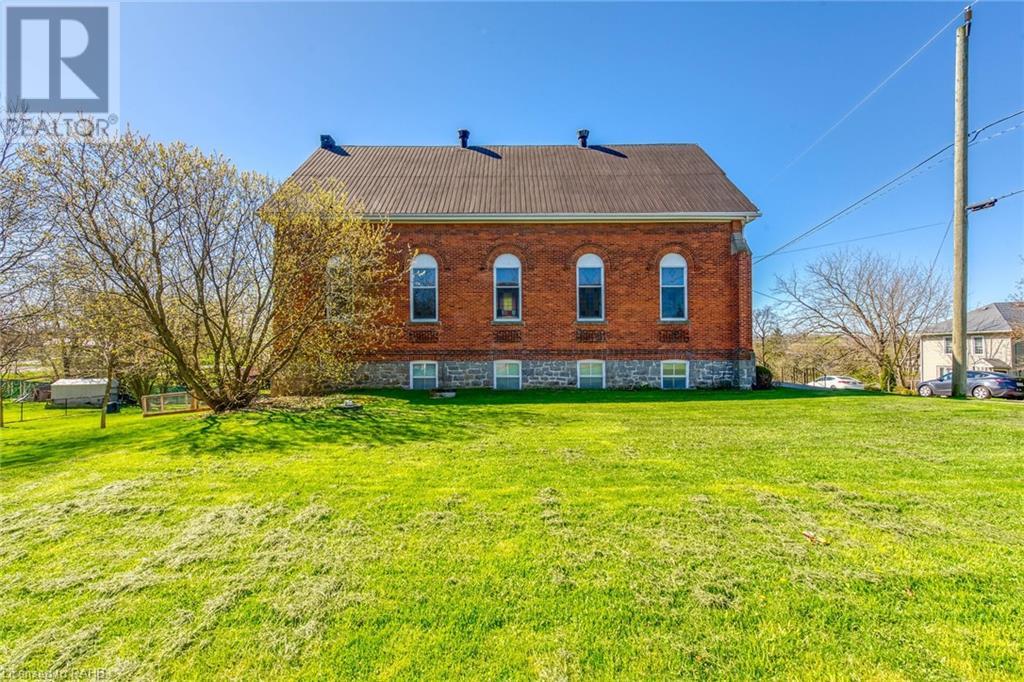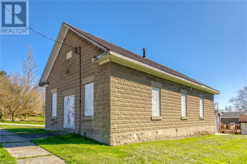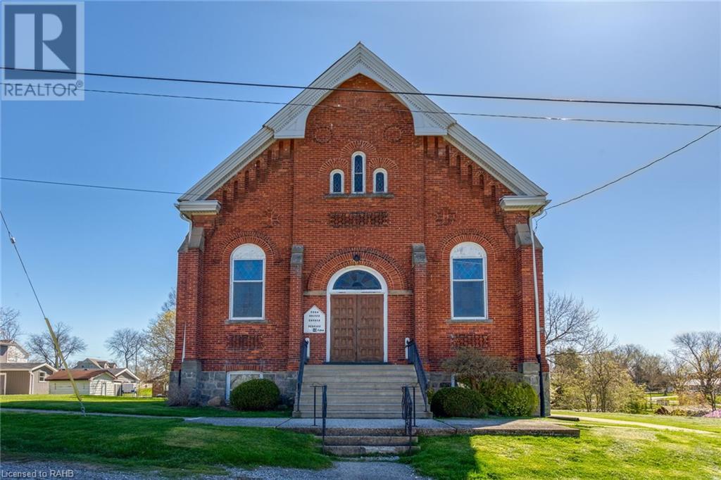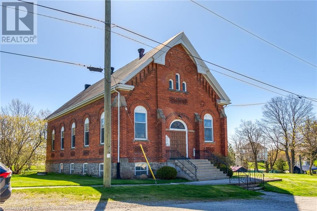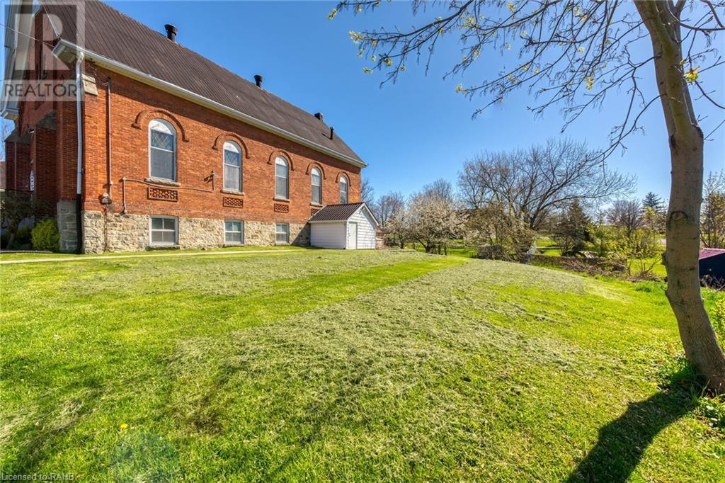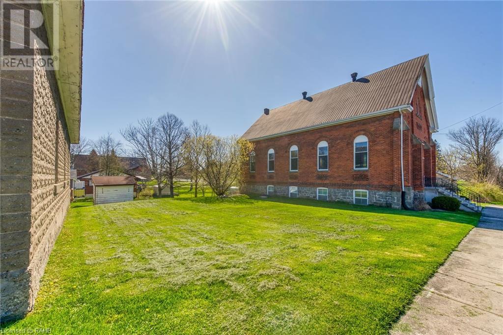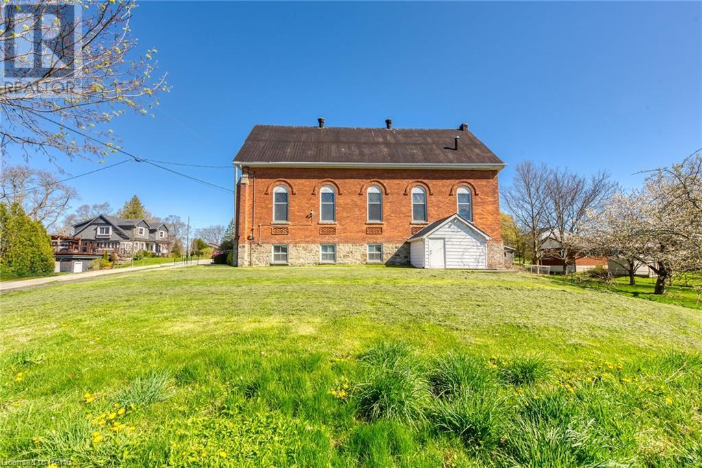 Well maintained solid brick community church. Attractive property in hamlet of York steps from the Grand River. Awe inspiring sanctuary with soaring decorative ceiling, plenty of wood accents, stained glass windows and office areas at each end of front choir / alter area. 3 staircases to lower level. Lower level has 3 rooms - a kitchen, main meeting space and classroom as well as an added exterior entrance containing 2-piece bath. Possibilities limited only by your imagination - building is 37'9 x 60'9 with 2 furnaces - 1 for each level and a dug well to water and cistern. Street parking available for 10+ vehicles. An additional approx. 27'6 x 50'6 block building with steel roof, wood floor and gas furnace (as is) is also included. RSA (id:55009)