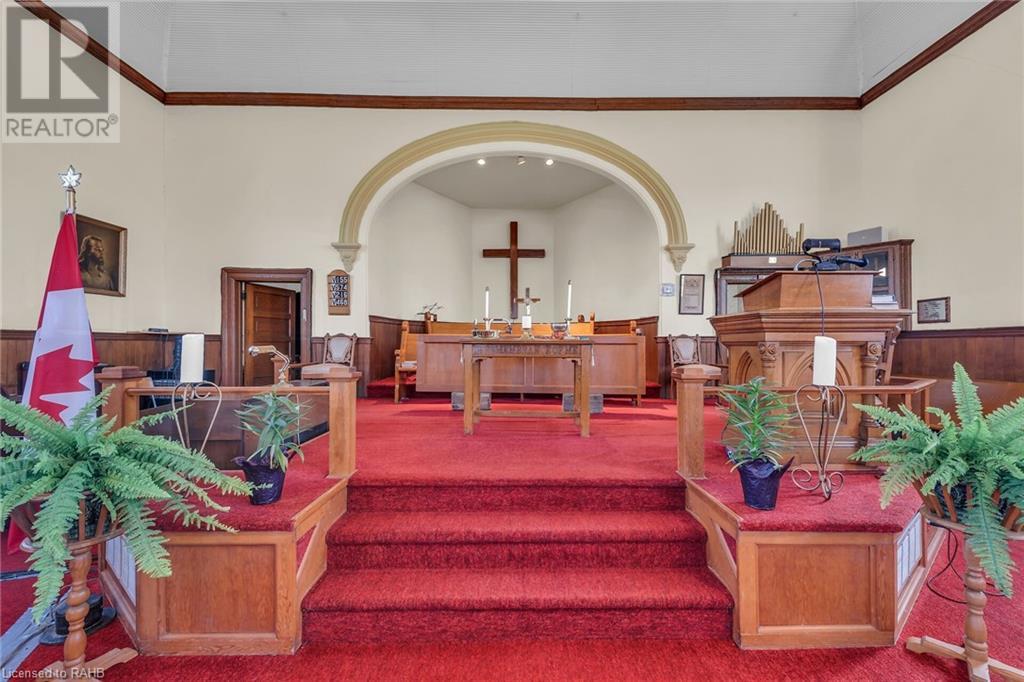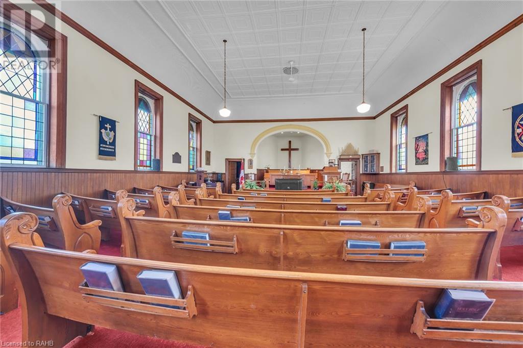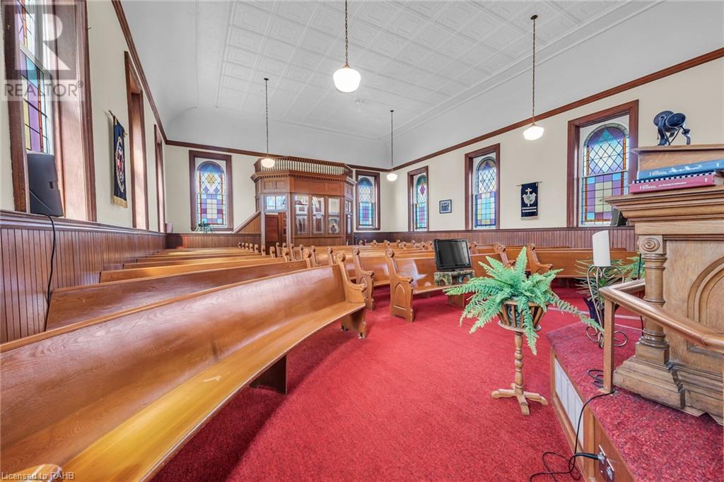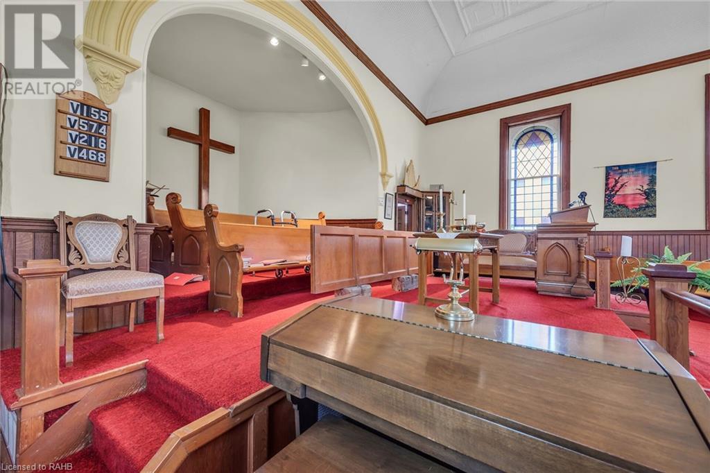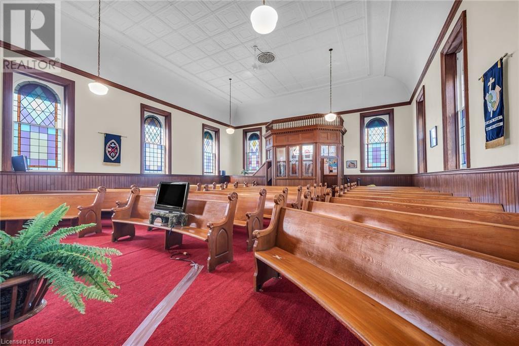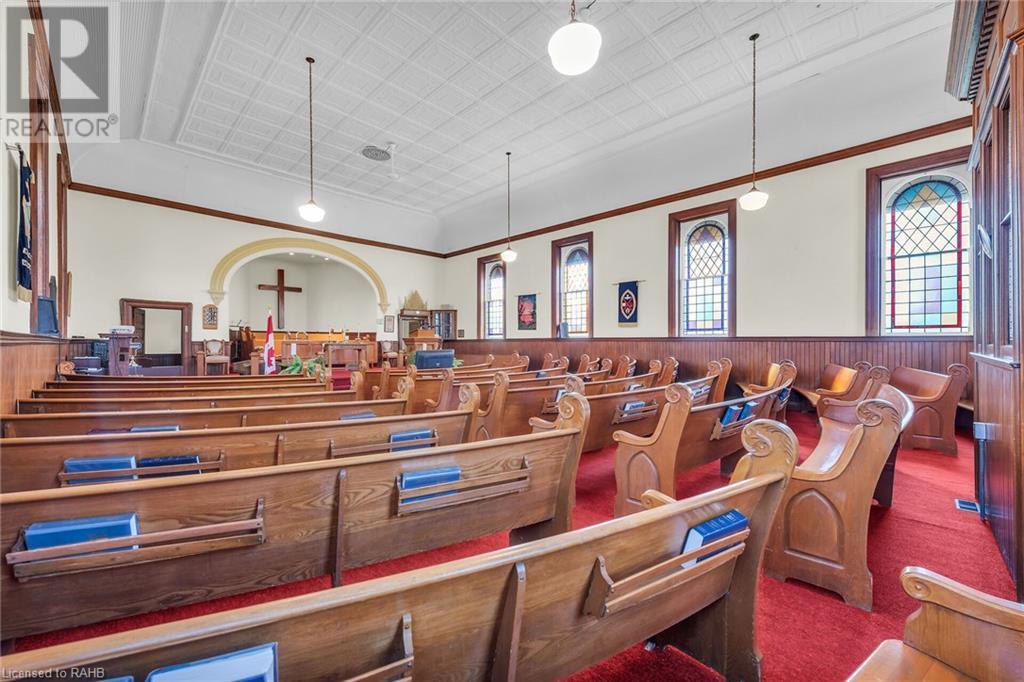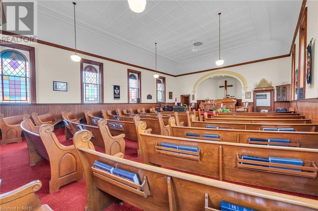 Well maintained solid brick community church. Attractive property in hamlet of York steps from the Grand River. Awe inspiring sanctuary with soaring decorative ceiling, plenty of wood accents, stained glass windows and office areas at each end of front choir / alter area. 3 staircases to lower level. Lower level has 3 rooms - a kitchen, main meeting space and classroom as well as an added exterior entrance containing 2-piece bath. Possibilities limited only by your imagination - building is 37'9 x 60'9 with 2 furnaces - 1 for each level and a dug well to water and cistern. Street parking available for 10+ vehicles. An additional approx. 27'6 x 50'6 block building with steel roof, wood floor and gas furnace (as is) is also included. RSA (id:55009)
