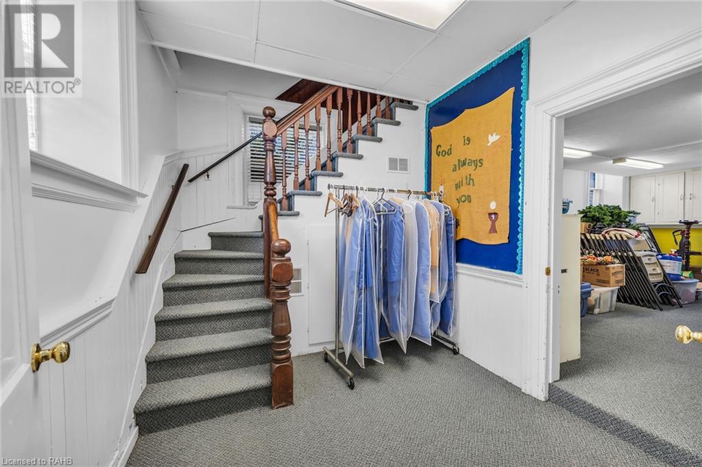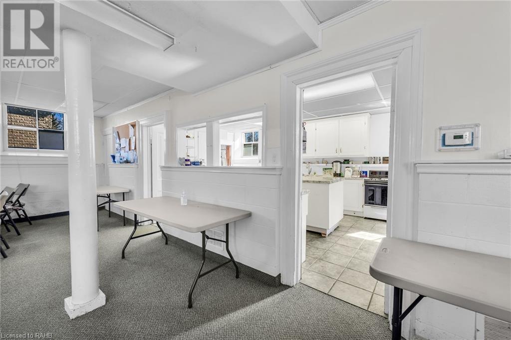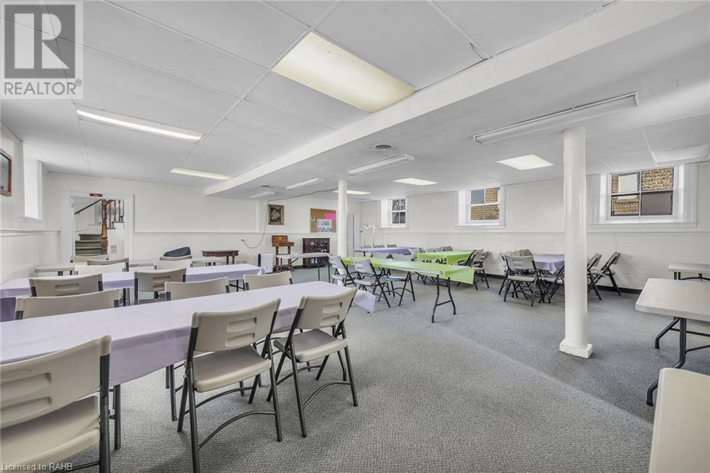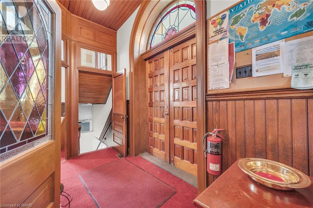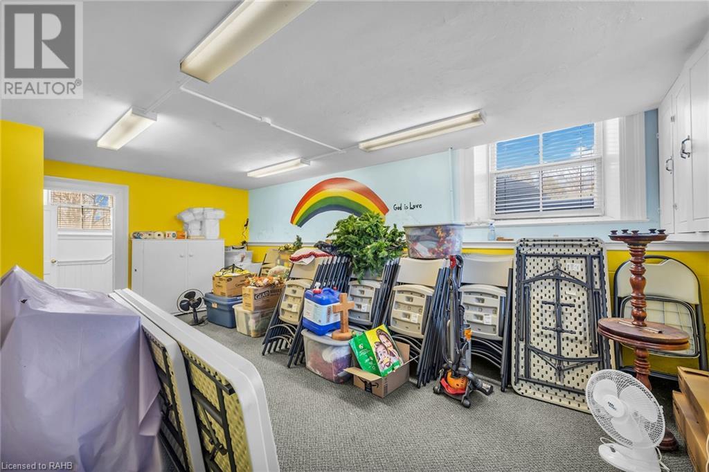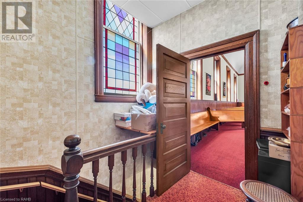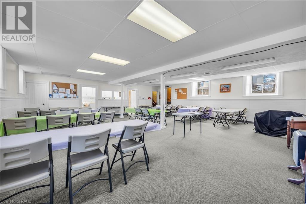 Well maintained solid brick community church. Attractive property in hamlet of York steps from the Grand River. Awe inspiring sanctuary with soaring decorative ceiling, plenty of wood accents, stained glass windows and office areas at each end of front choir / alter area. 3 staircases to lower level. Lower level has 3 rooms - a kitchen, main meeting space and classroom as well as an added exterior entrance containing 2-piece bath. Possibilities limited only by your imagination - building is 37'9 x 60'9 with 2 furnaces - 1 for each level and a dug well to water and cistern. Street parking available for 10+ vehicles. An additional approx. 27'6 x 50'6 block building with steel roof, wood floor and gas furnace (as is) is also included. RSA (id:55009)