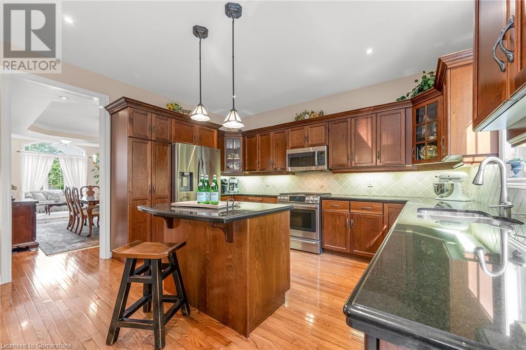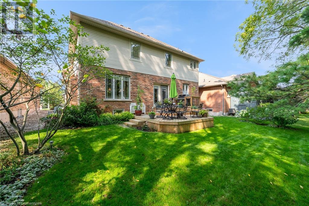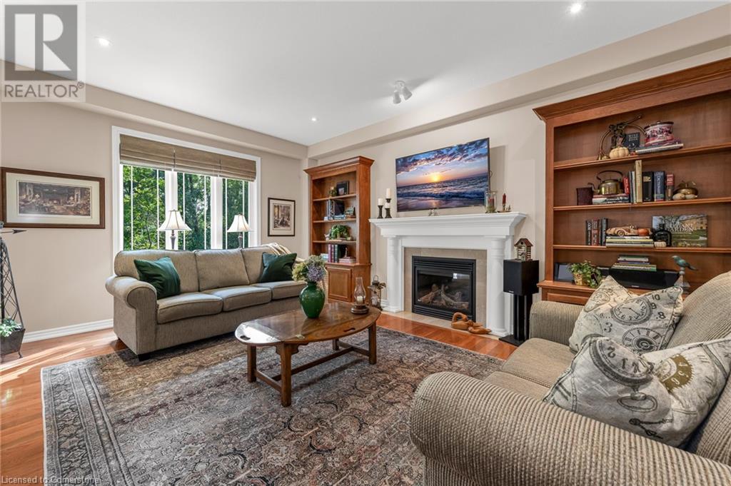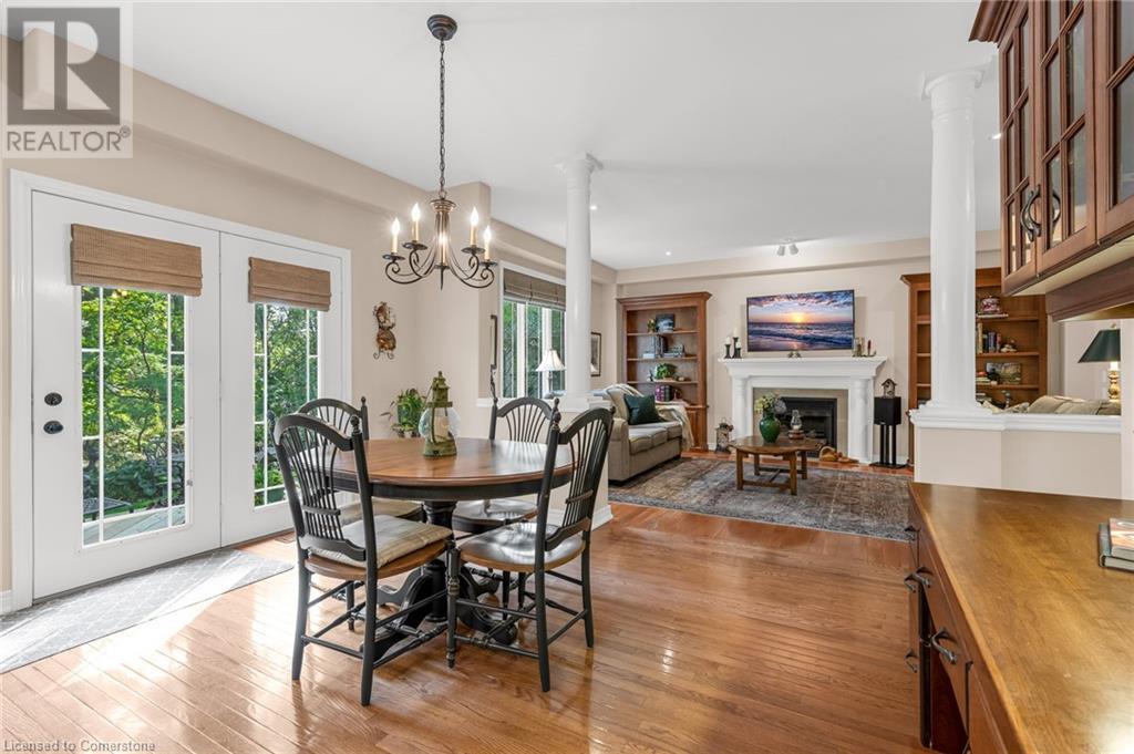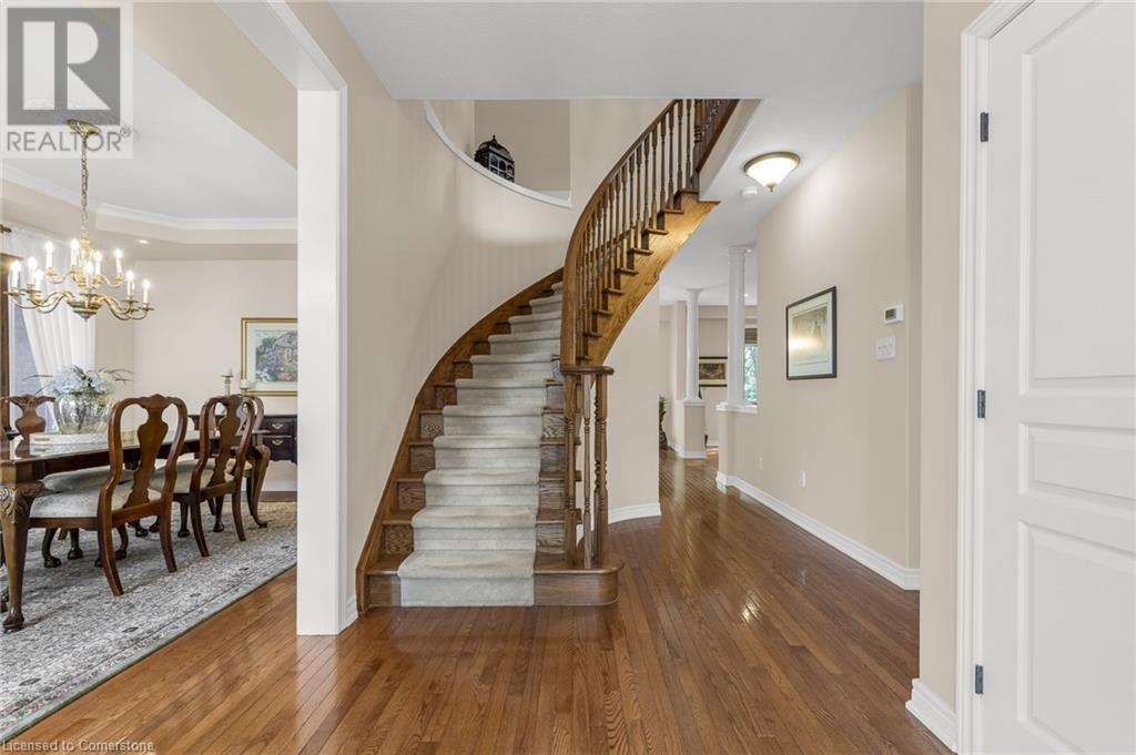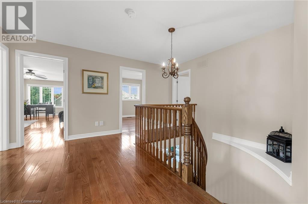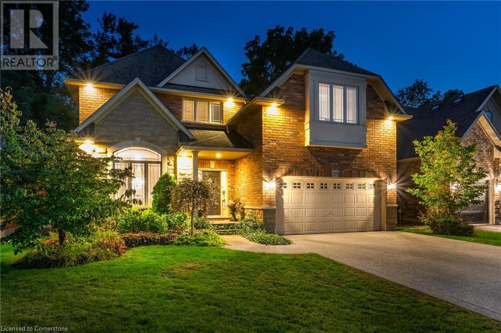Welcome to this stunning 2-storey home, offering over 3,000 sq ft of luxurious living space. Featuring 9ft ceilings on the main level and elegant hardwood flooring throughout, this home combines comfort and sophistication. The dining room boasts a coffered ceiling, adding a touch of grandeur, while the main floor living room is perfect for relaxing by the cozy gas fireplace, which seamlessly connects to the open-concept kitchen. The large eat-in kitchen is a chef’s dream, complete with granite countertops, a spacious island, a large pantry, and a walkout to the back patio for easy indoor-outdoor living. A beautiful circular oak staircase leads to the second level. The expansive primary bedroom features a walk-in closet and a spa-like 5-piece ensuite. Each of the 3 additional bedrooms is generously sized and offers its own walkin closet. The convenience of a second-floor laundry room adds practicality to this elegant home. The fully finished basement, includes an exercise area, family room, and plenty of storage. The driveway and larger garage provides ample space for large trucks or SUVs. The peaceful backyard, overlooking trees and farmers fields, offers serenity in this quiet enclave of executive homes. Located in Ancaster, this home is close to all amenities with easy access to major highways. (id:55009)
