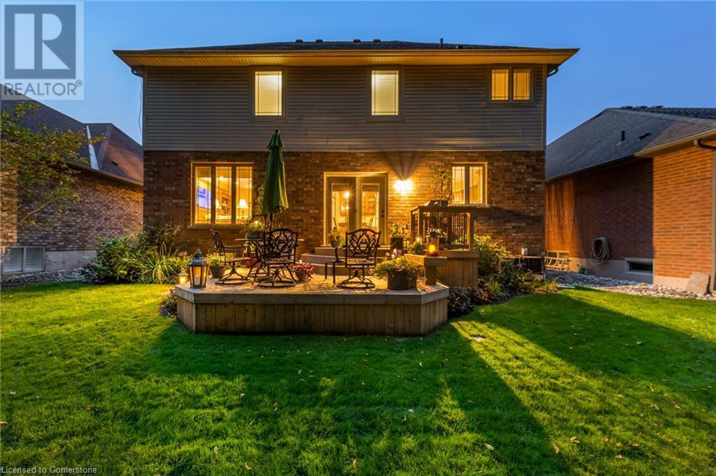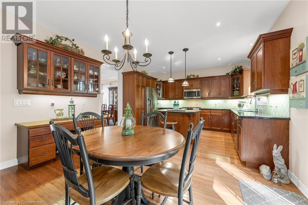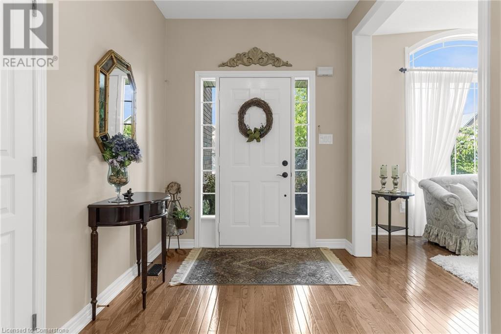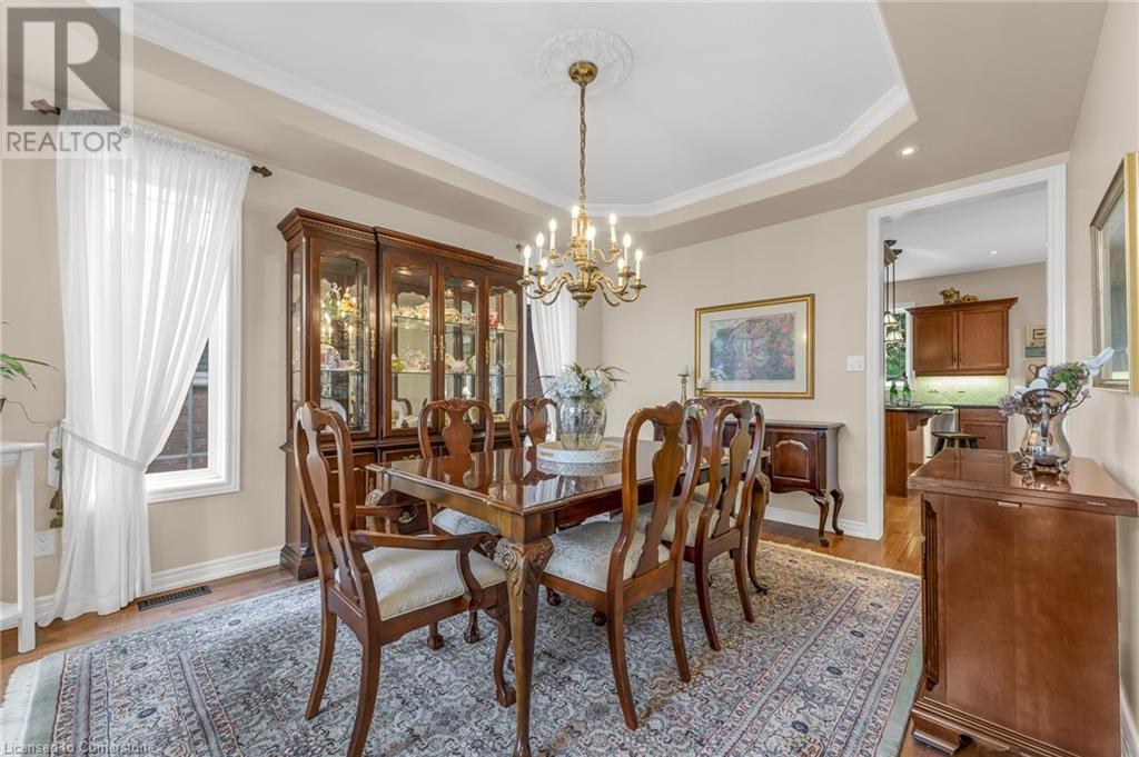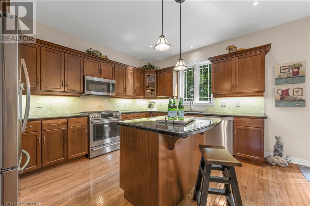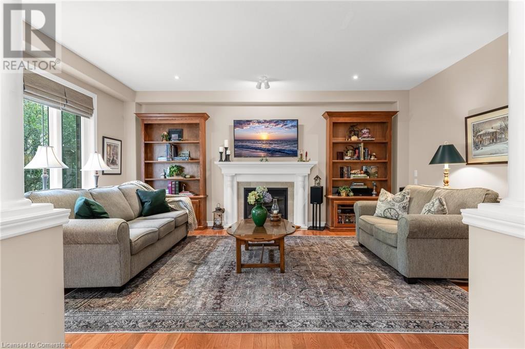 Welcome to this stunning 2-storey home, offering over 3,000 sq ft of luxurious living space. Featuring 9ft ceilings on the main level and elegant hardwood flooring throughout, this home combines comfort and sophistication. The dining room boasts a coffered ceiling, adding a touch of grandeur, while the main floor living room is perfect for relaxing by the cozy gas fireplace, which seamlessly connects to the open-concept kitchen. The large eat-in kitchen is a chef’s dream, complete with granite countertops, a spacious island, a large pantry, and a walkout to the back patio for easy indoor-outdoor living. A beautiful circular oak staircase leads to the second level. The expansive primary bedroom features a walk-in closet and a spa-like 5-piece ensuite. Each of the 3 additional bedrooms is generously sized and offers its own walkin closet. The convenience of a second-floor laundry room adds practicality to this elegant home. The fully finished basement, includes an exercise area, family room, and plenty of storage. The driveway and larger garage provides ample space for large trucks or SUVs. The peaceful backyard, overlooking trees and farmers fields, offers serenity in this quiet enclave of executive homes. Located in Ancaster, this home is close to all amenities with easy access to major highways. (id:55009)