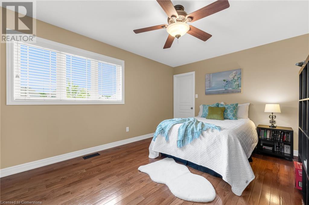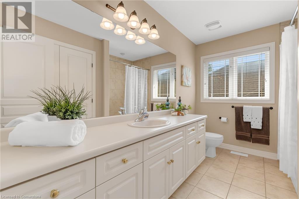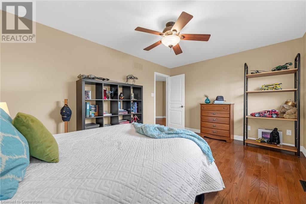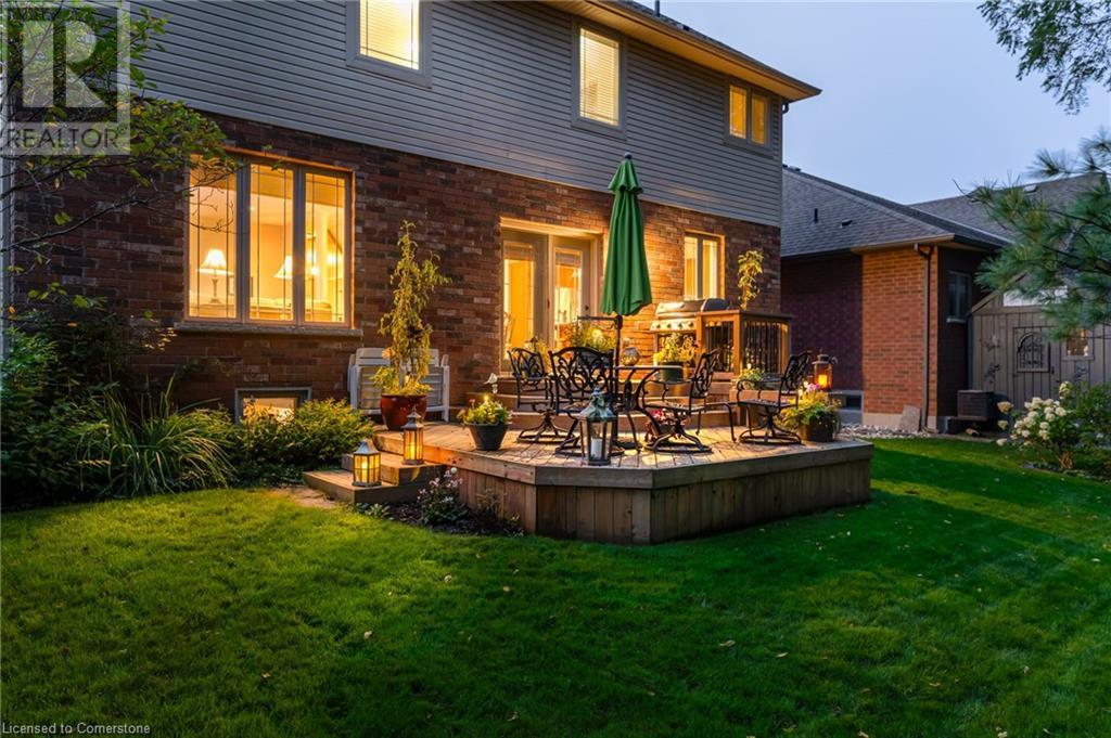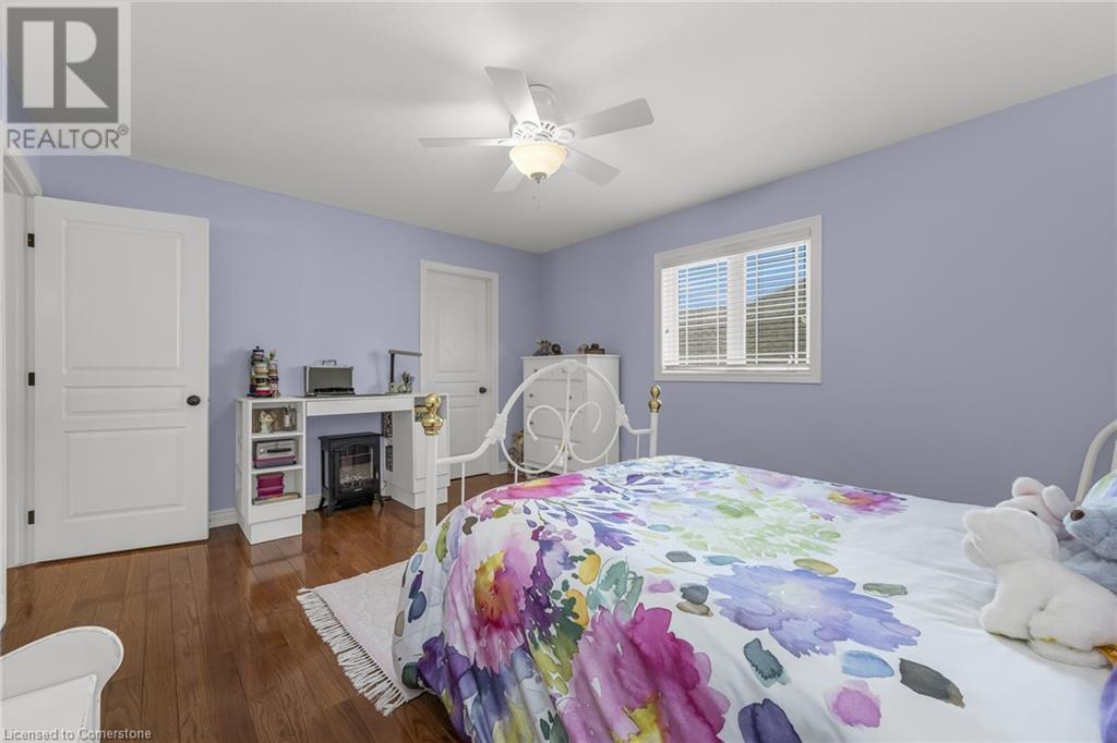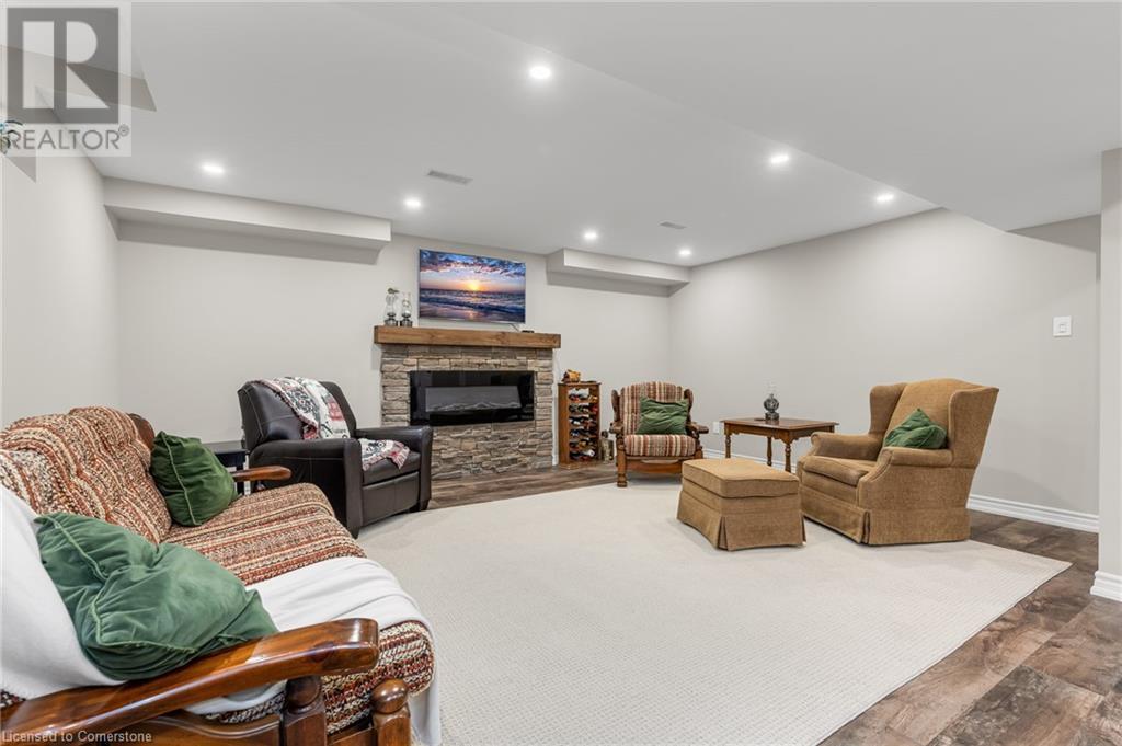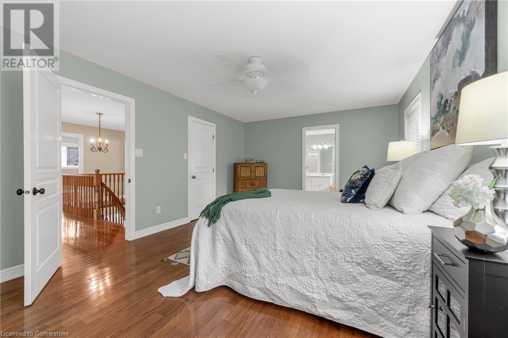 Welcome to this stunning 2-storey home, offering over 3,000 sq ft of luxurious living space. Featuring 9ft ceilings on the main level and elegant hardwood flooring throughout, this home combines comfort and sophistication. The dining room boasts a coffered ceiling, adding a touch of grandeur, while the main floor living room is perfect for relaxing by the cozy gas fireplace, which seamlessly connects to the open-concept kitchen. The large eat-in kitchen is a chef’s dream, complete with granite countertops, a spacious island, a large pantry, and a walkout to the back patio for easy indoor-outdoor living. A beautiful circular oak staircase leads to the second level. The expansive primary bedroom features a walk-in closet and a spa-like 5-piece ensuite. Each of the 3 additional bedrooms is generously sized and offers its own walkin closet. The convenience of a second-floor laundry room adds practicality to this elegant home. The fully finished basement, includes an exercise area, family room, and plenty of storage. The driveway and larger garage provides ample space for large trucks or SUVs. The peaceful backyard, overlooking trees and farmers fields, offers serenity in this quiet enclave of executive homes. Located in Ancaster, this home is close to all amenities with easy access to major highways. (id:55009)