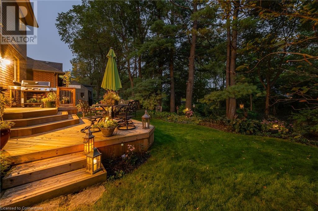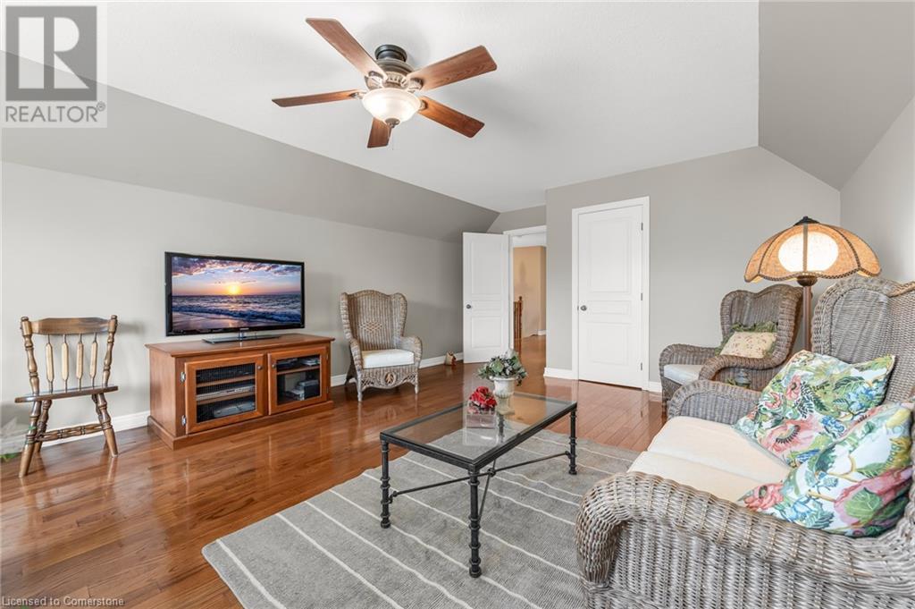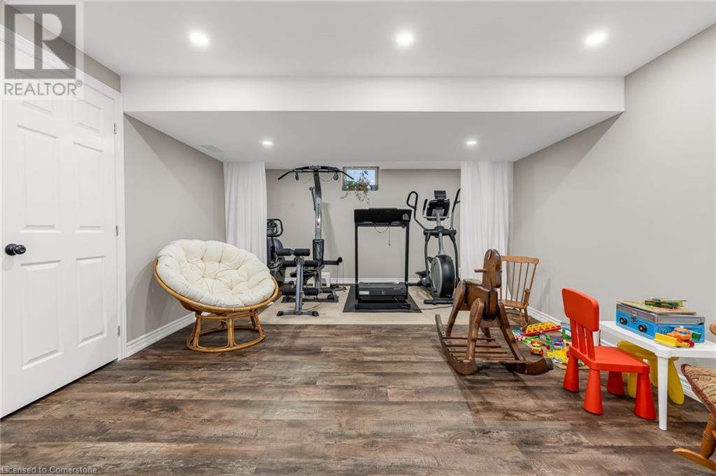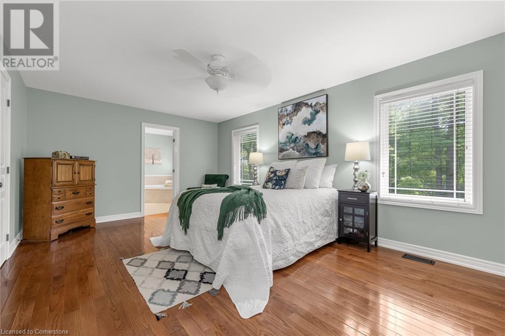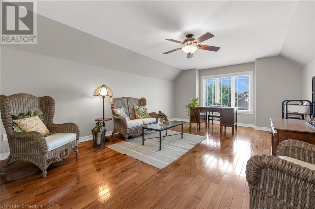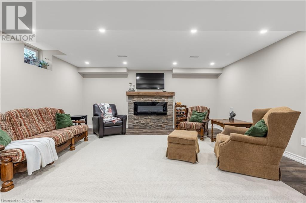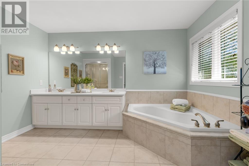 Welcome to this stunning 2-storey home, offering over 3,000 sq ft of luxurious living space. Featuring 9ft ceilings on the main level and elegant hardwood flooring throughout, this home combines comfort and sophistication. The dining room boasts a coffered ceiling, adding a touch of grandeur, while the main floor living room is perfect for relaxing by the cozy gas fireplace, which seamlessly connects to the open-concept kitchen. The large eat-in kitchen is a chef’s dream, complete with granite countertops, a spacious island, a large pantry, and a walkout to the back patio for easy indoor-outdoor living. A beautiful circular oak staircase leads to the second level. The expansive primary bedroom features a walk-in closet and a spa-like 5-piece ensuite. Each of the 3 additional bedrooms is generously sized and offers its own walkin closet. The convenience of a second-floor laundry room adds practicality to this elegant home. The fully finished basement, includes an exercise area, family room, and plenty of storage. The driveway and larger garage provides ample space for large trucks or SUVs. The peaceful backyard, overlooking trees and farmers fields, offers serenity in this quiet enclave of executive homes. Located in Ancaster, this home is close to all amenities with easy access to major highways. (id:55009)