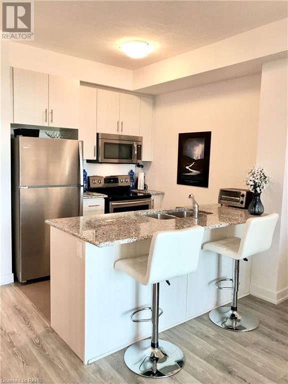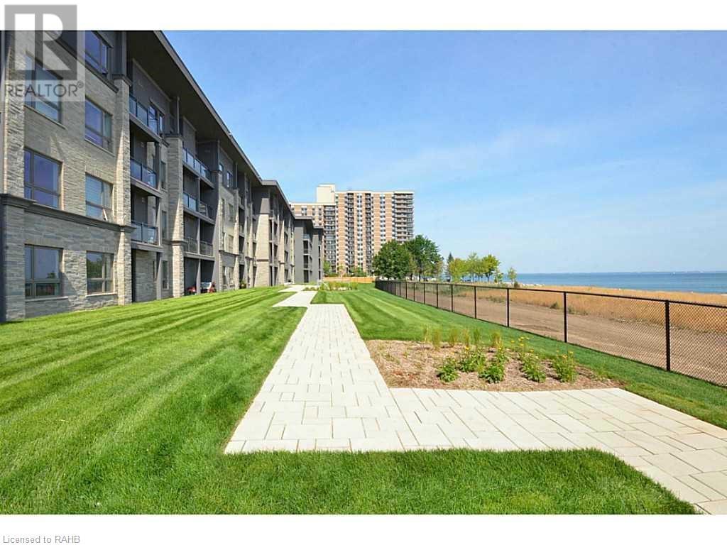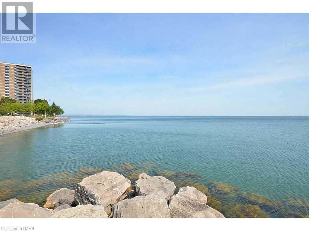 Stunning Waterfront Condo in desirable Community Beach located on the SHORES OF LAKE ONTARIO. LAKEFRONT 1 BED+DEN WITH DIRECT WATER VIEWS FROM EACH ROOM & FROM YOUR PRIVATE TERRACE. Easy walk out access to the waterfront trail! Prof designed w/luxurious finishes & S.S appliances, laminate floors, granite counters, in-suite laundry w/stackable Washer & Dryer. High ceilings & walk-in closet. 1 underground parking spot/1 storage locker. Located along a strip of waterfront with spectacular lake & Escarpment views including Toronto skyline. Community offers many amenities to complement its idyllic lakeside setting. Network of hiking trails, sandy beach, parks, dog-friendly zones, rooftop terrace with BBQs, party room w/kitchenette and fitness room & bike locker. Must see! RSA (id:55009)