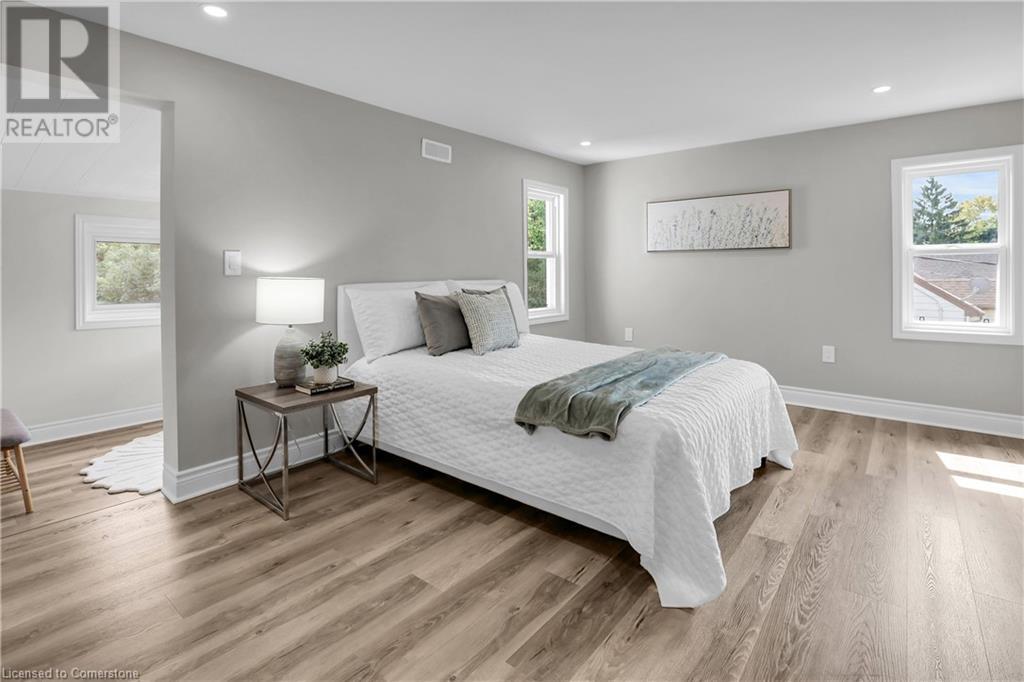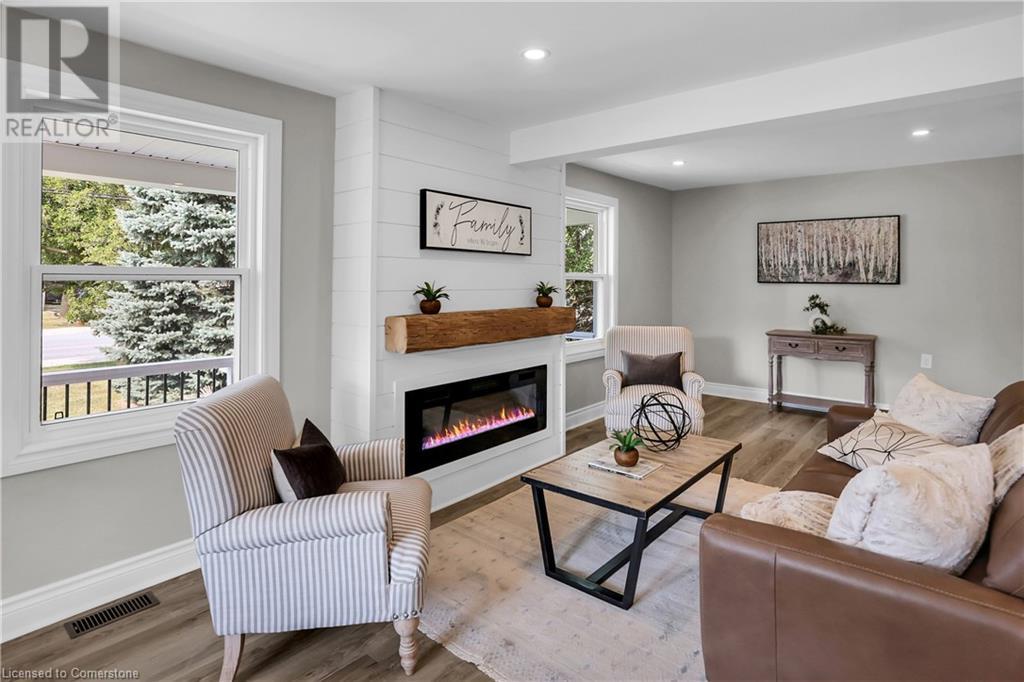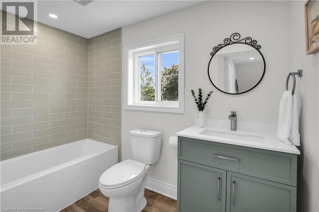 PARK-LIKE PROPERTY ... This BEAUTIFULLY RENOVATED, 3 bedRm, 3 bath, 2-storey home is nestled on a 66’ x 250’ extra deep, landscaped property at 356 Aqueduct Street in Welland, just steps away from the Welland Canal Recreational Trail, Seaway Mall, Welland Jackfish, Niagara College & only minutes to 406. It feels like home from the moment you step onto the covered, semi-wraparound porch. Main level has luxury vinyl flooring & BRAND-NEW windows throughout. Bright & spacious livRm boasts electric fireplace w/shiplap surround & raw wood mantel, complete w/electricity for an entertainment system! OVERSIZED kitchen features new S/S appliances, QUARTZ countertops, ceramic tile backsplash, sleek cabinets (some w/glass fronts & B/I lighting), opening to dining area w/WALK OUT through patio doors. Enjoy peaceful evenings on the XL deck w/custom, BUILT-IN BAR & SWINGING SEATS overlooking the extremely private yard w/cozy firepit & surrounded by mature trees! Upper level branches off into two sections ~ XL primary suite w/beautiful 4-pc ensuite & separate nook (office, exercise, extra closet space … you decide!), while the other side offers two generous bedRms & 4-pc bath. FINISHED lower level features a recRm w/potlights, laundry & storage. Detached, TANDEM garage provides access to both back yard & extra-long doublewide driveway w/plenty of parking for recreational vehicles (Boat launch nearby!). CLICK ON MULTIMEDIA for virtual tour, drone photos, floor plans & more. (id:55009)