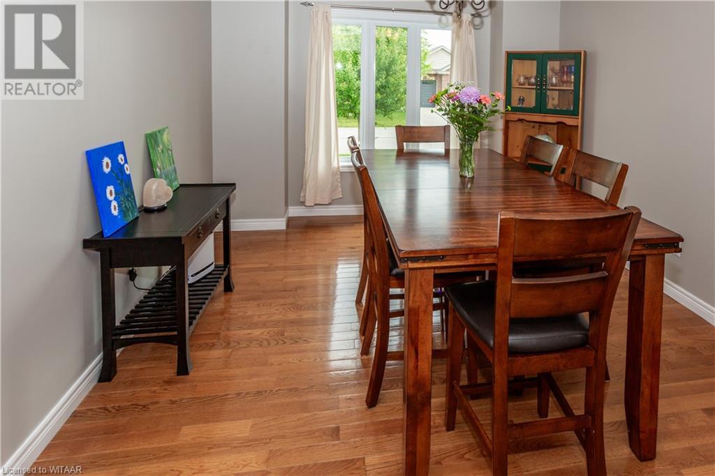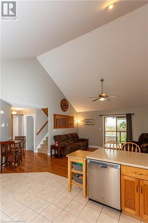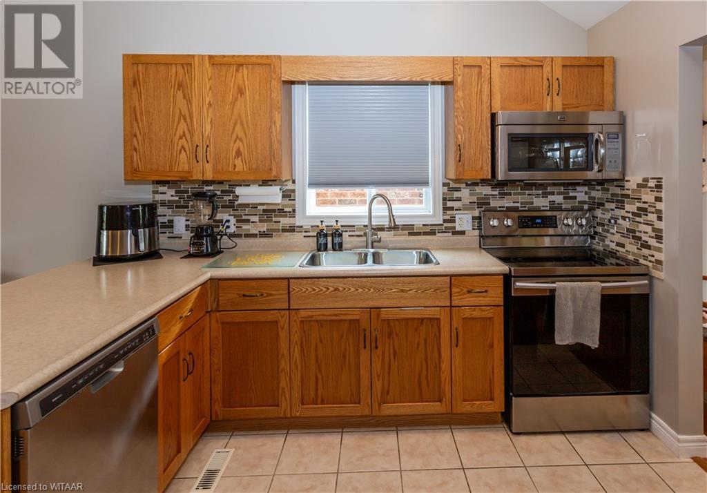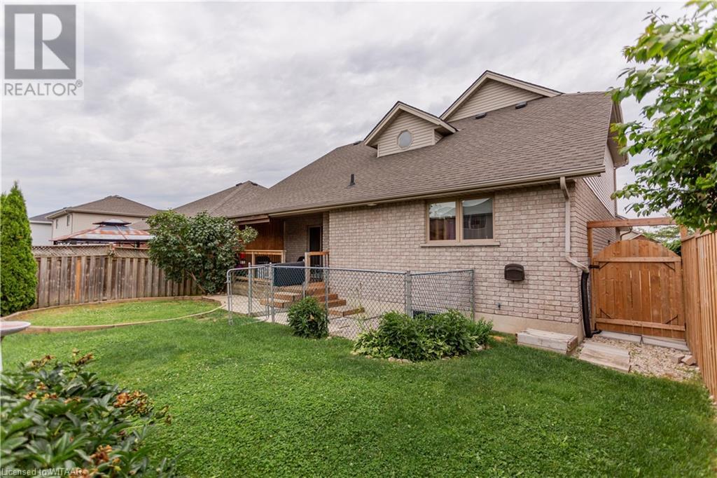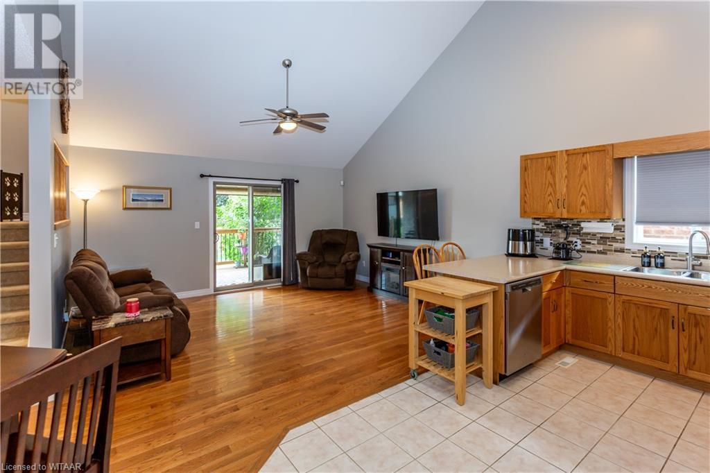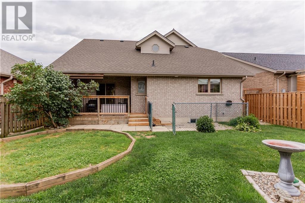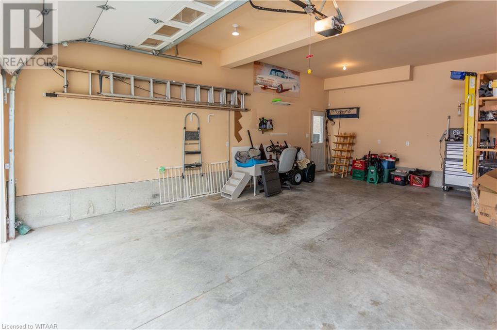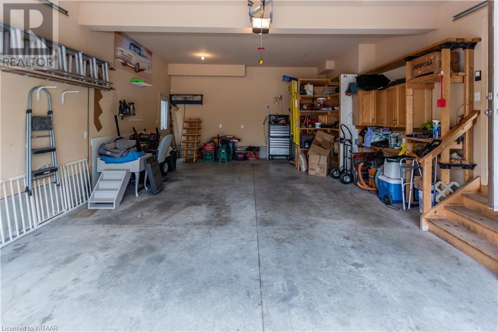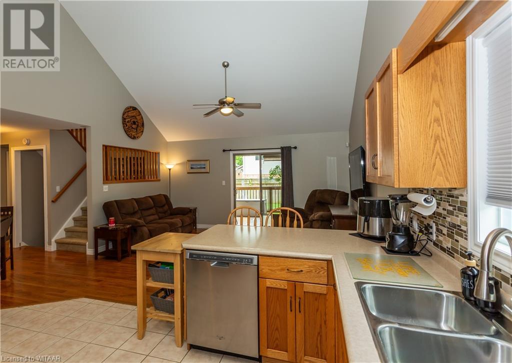 Welcome to 359 Parrott Place. This bright 2 storey, 3 bedroom, 2 full bath house is located on a desirable quiet street. Foyer leads to the open concept kitchen & living room with vaulted ceiling. Dining room is off kitchen. The large primary bedroom is on main level with walk in closet, 4 piece ensuite bathroom with water closet. Living room accesses theback yard covered porch 13.5 x 9.10. Second level has 2 bedrooms and 4 piece bathroom. Lower level has a family room, large utility & laundry room, both with plenty of storage. Double car garage is supersized 25.9 x 18, extra deep. Garage has 220 volt plug with heater. Back yard has a ring for an above ground pool that is included. Close to shopping, 401/403, schools and conservation walking trails. (id:55009)