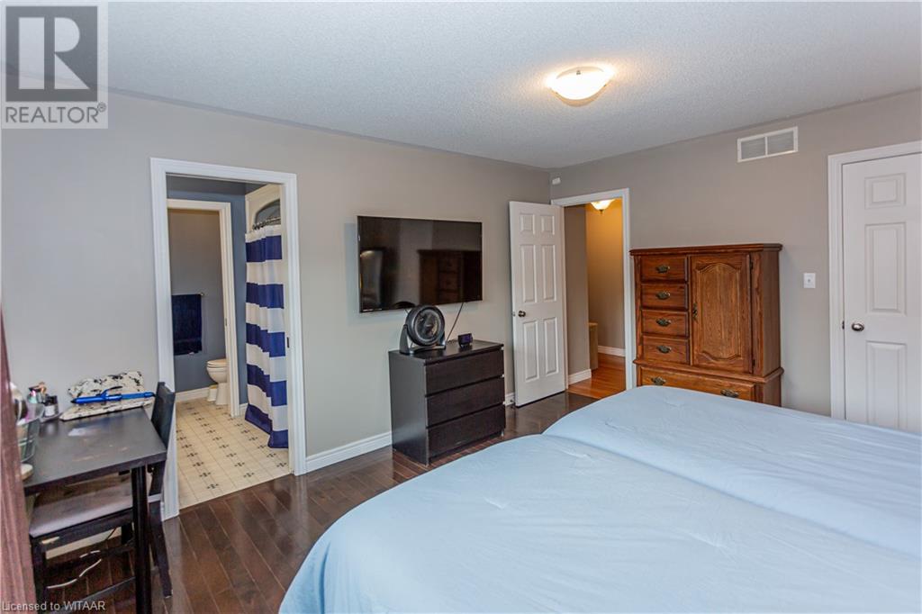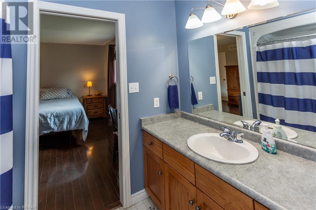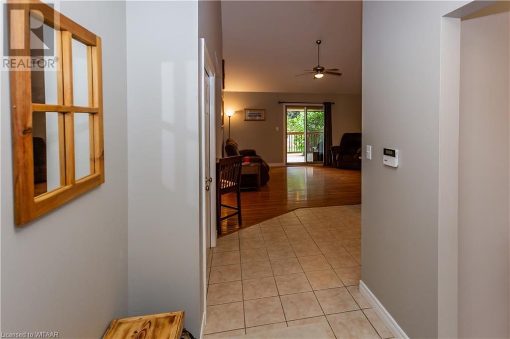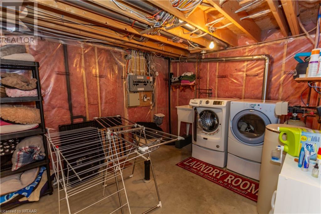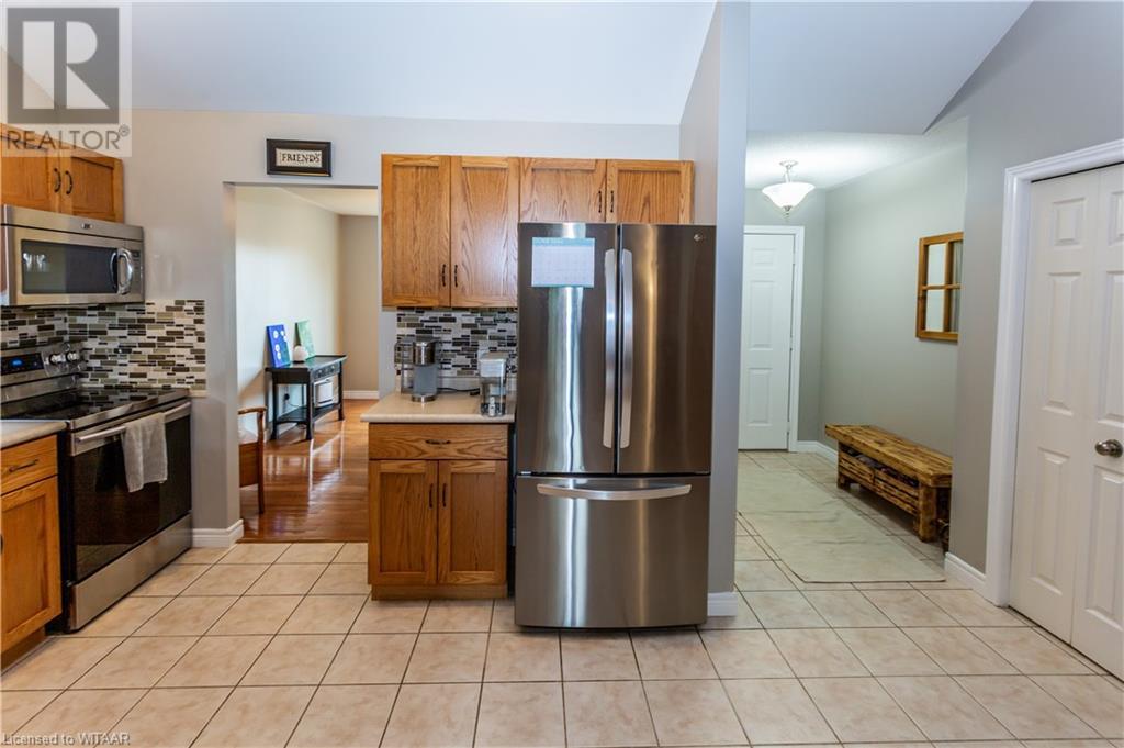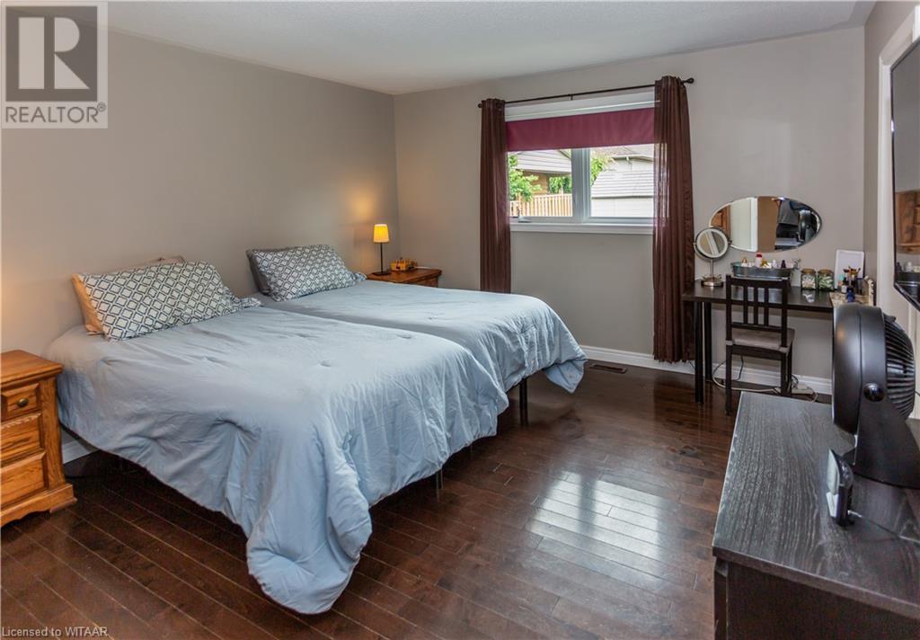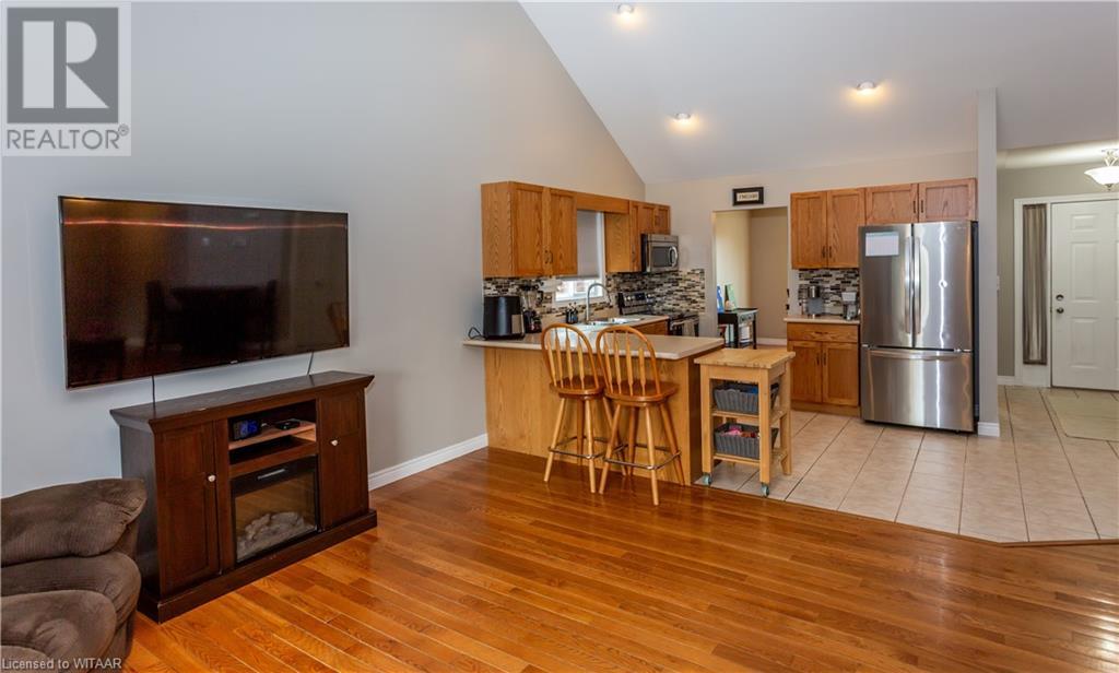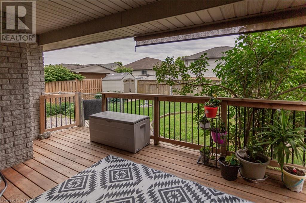 Welcome to 359 Parrott Place. This bright 2 storey, 3 bedroom, 2 full bath house is located on a desirable quiet street. Foyer leads to the open concept kitchen & living room with vaulted ceiling. Dining room is off kitchen. The large primary bedroom is on main level with walk in closet, 4 piece ensuite bathroom with water closet. Living room accesses theback yard covered porch 13.5 x 9.10. Second level has 2 bedrooms and 4 piece bathroom. Lower level has a family room, large utility & laundry room, both with plenty of storage. Double car garage is supersized 25.9 x 18, extra deep. Garage has 220 volt plug with heater. Back yard has a ring for an above ground pool that is included. Close to shopping, 401/403, schools and conservation walking trails. (id:55009)