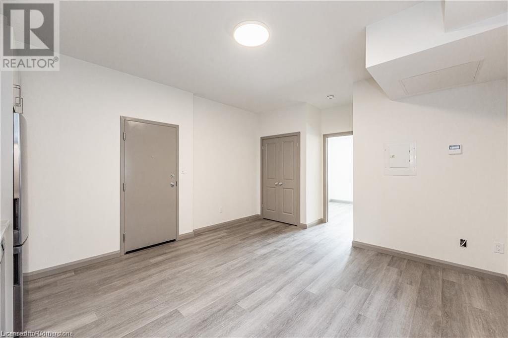 Open concept and bright 1 bedroom, 1 bathroom apartment for lease in a beautiful building constructed in 2022! Includes a security system with fob access. Steps to both Main Street E and King St W along with restaurants, shops, and hospitals. This apartment has 9 ft ceilings tons of natural light and modern finishes including subway tiled bath, vinyl flooring, and stainless steel appliances. Private parking in the rear driveway available for an extra $50 per month. (id:55009)
