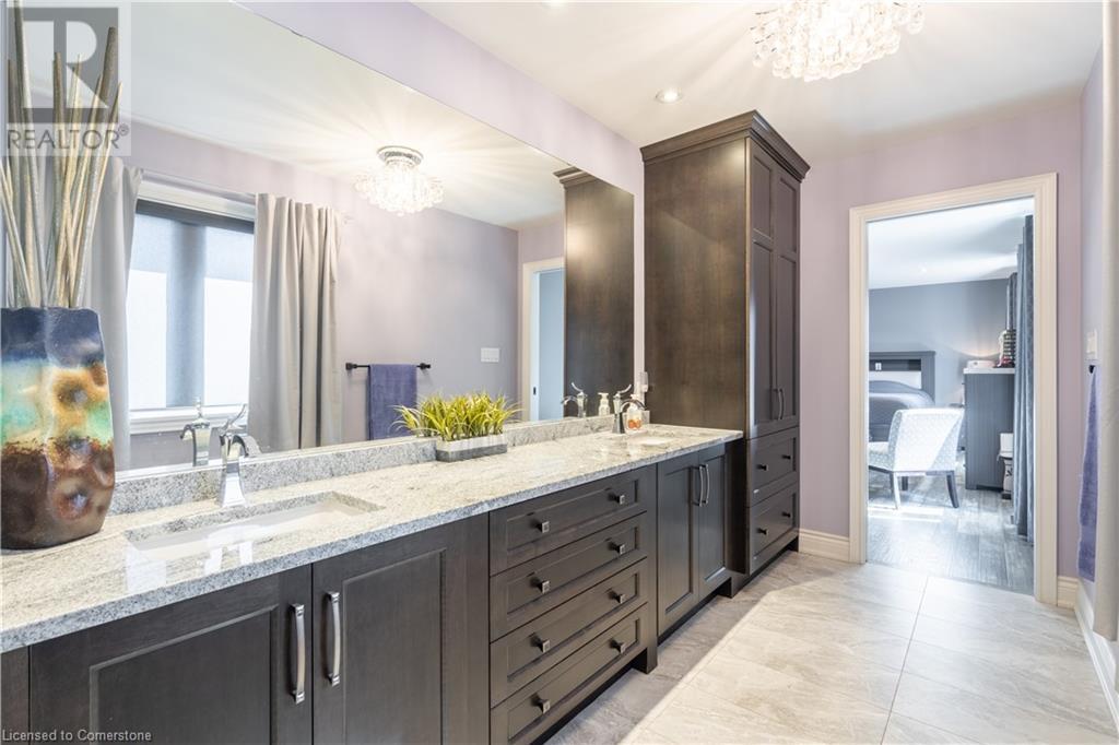 Welcome to Luxury and to 36 Kingspoint Circle. A 3000 sq ft Home with over 4000 sq ft of Total Living Space. Extended Quartz Eat-In Kitchen by Del Piore. 10' Main Floor Ceilings, Wainscoting, Crown Moulding, Coffered Ceilings. Potential In-Law Suite in Basement with 9' ceilings. 2 Gas Fireplaces. Each Bedroom Upstairs has an Ensuite and Large Walk in Closets. 2nd Floor Laundry plus Basement Laundry. Pot lights Galore, Inside and Out. 200 Amp Service. Inclusions are the Following : All Appliances, 5 Televisions & Wall Mounts, Hunter Douglas Window Coverings, Security System with Cameras & Surround Sound System with Speakers & Covered 6 Seat Hot Tub. Double Garage (with Hot & Cold Water Tap and Finished Walls). 4 Car Driveway. Full Brick. No Carpet. Located near Fifty Point Conservation Area & Marina. Quick Access to QEW and 60 Seconds Winona Crossing Shopping Plaza & to Costco Gas Station!! Great Detached Home For Sale in Stoney Creek by the Lake & One to Add to your Property Search. RSA. Watch iGuide Virtual Tour Link for Interactive Experience. (id:55009)