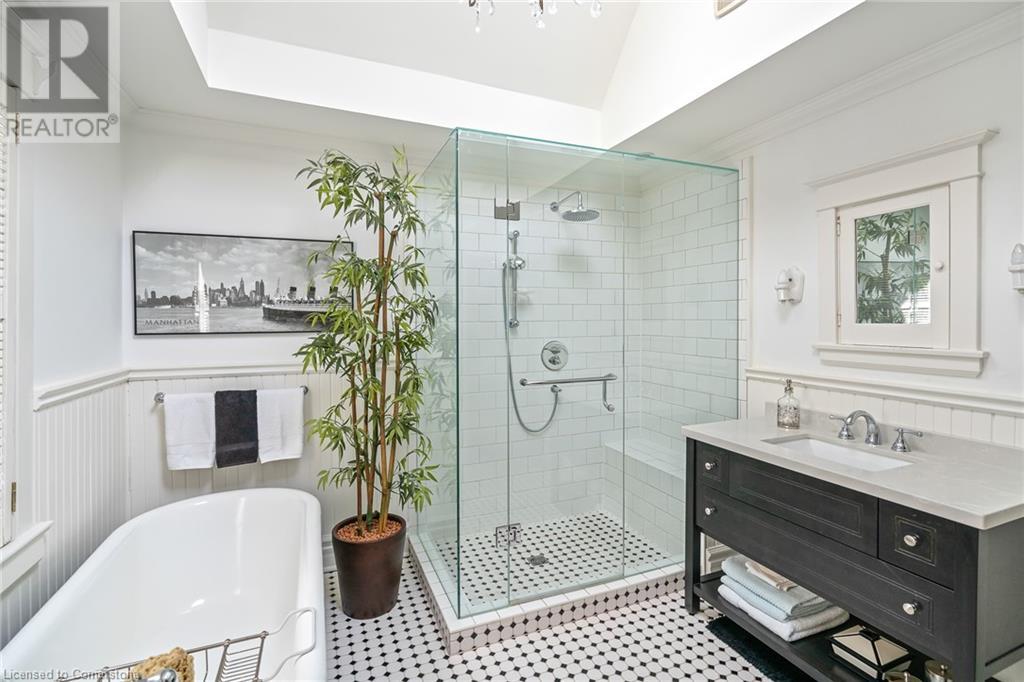 LOOK NO FURTHER! Live the ultimate Niagara-On-The-Lake lifestyle in this PRIME LOCATION, residing in this charming Edwardian Residence (Circa 1906) Complete w/ wrap-around porch & spectacular water views across the NOTL Golf Course & Lake Ontario. Walk to world class theatre, restaurants, boutiques, and more. This spacious home filled w/ character & periodic details has been lovingly cared for & updated. The main flr is perfect for entertaining or relaxing. This flr includes elegant living rm, spacious formal dining rm, home office, den/library, gourmet kitchen w/ large island & eat-in area. Two fireplaces, laundry rm & guest bath complete this flr. Notice the original staircase as you enter the upper level. Here you will find a large primary bedrm suite w/ water views, 3 generous closets & ensuite. There are 2 addtnl bedrms & full bath on this floor. BONUS SPACE is a coach house w/ kitchenette & 3-pc bath, currently used as an artist’s studio. So many possibilities for this space. 2 Addntl outbuilding/sheds for storage.The gardens are full of vibrant greenery, plants, trees & shrubs creating an inviting atmosphere, including a pond w/ flowing waterfall & outdoor dining space. The long driveway provides ample parking leads to the rear yard, covered bk porch & addtnl entrance to the home. Many upgrades in the recent years listed on the feature sheet attached. Just imagine those lazy summer days enjoying a cool beverage watching the world go by in your own private retreat. (id:55009)