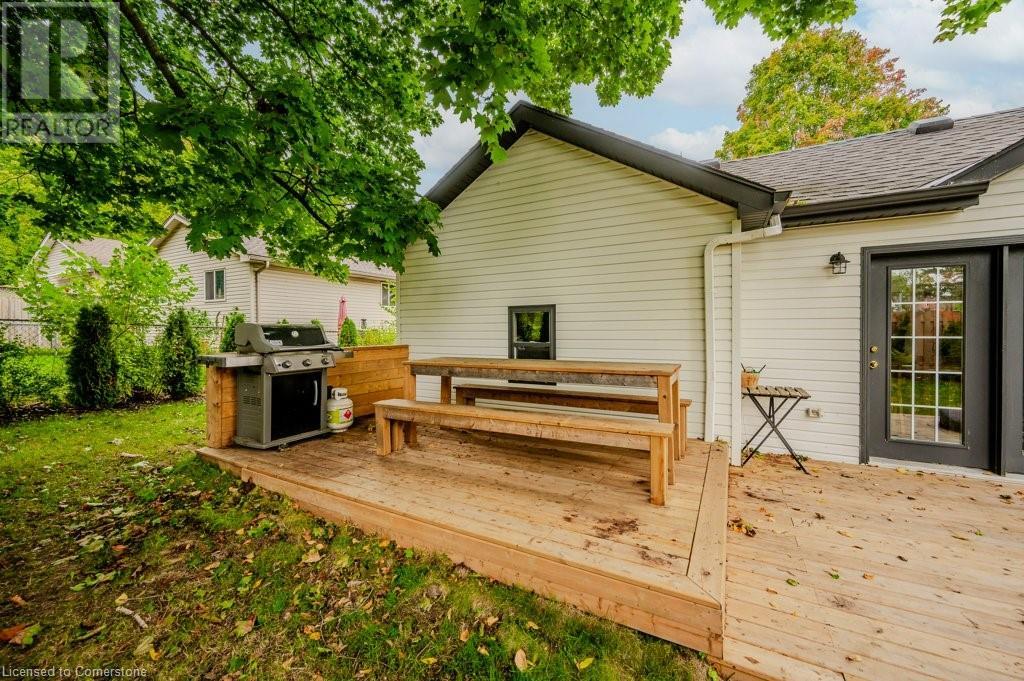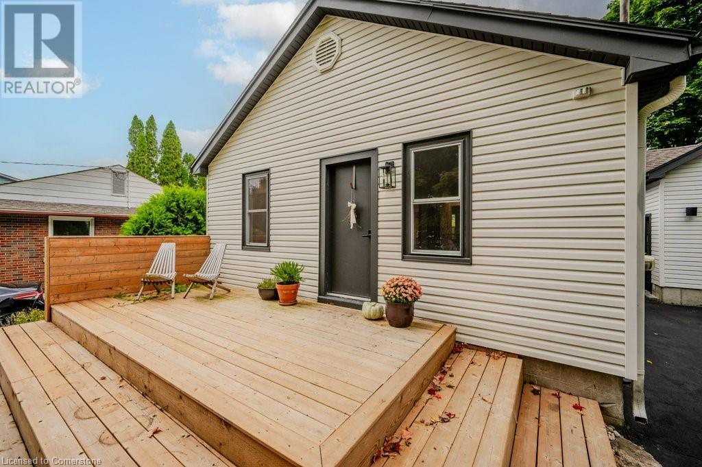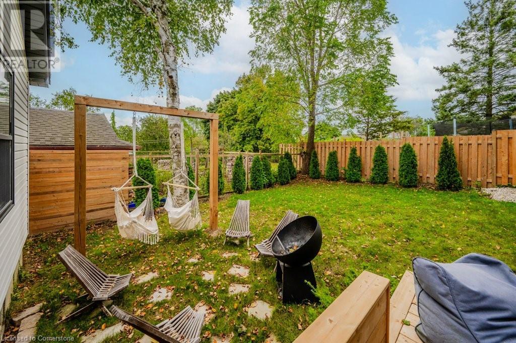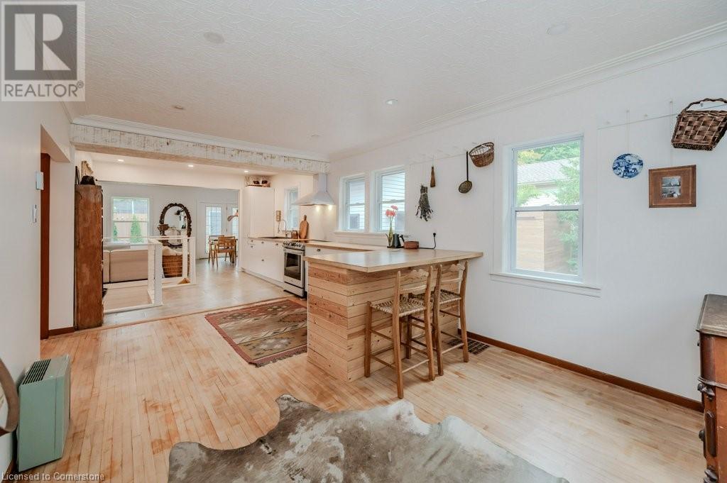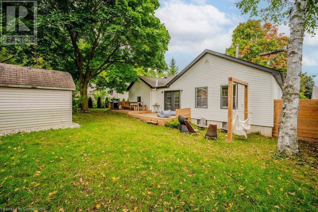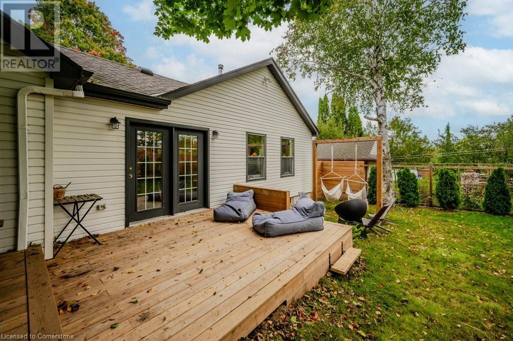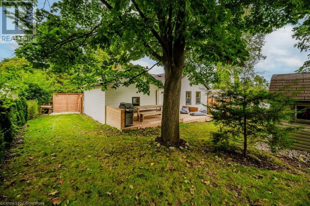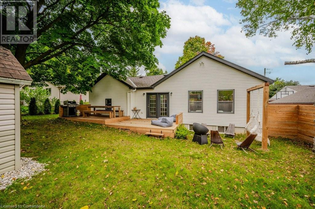 WOW!! Rustic mid-century modern and organically updated detached bungalow located on a dead-end tree-lined street with an extra wide 62’ x 115’ lot. This move-in ready home offers over 1,900 square feet of living space featuring 2+2 bedrooms and 1.5 bathrooms, with an open-concept main floor living area. The main floor is perfect for entertaining flowing seamlessly from the foyer into the bright, open-concept kitchen (new 2022), boasting bamboo countertops with breakfast bar, a chef-style sink, and built-in hidden appliances. Beyond you will find the dining area and cozy living room with a double garden door walk-out to the extensive deck. Rustic hardwood floors in the main floor bedrooms, and open stairs leading to the finished basement (2022). The lower level offers a family room with a stylish concrete floor and a handy bar area with floating built-in cabinets, a third bedroom, and a versatile flex room that can be used as a 4th bedroom, den, home office, or hobby space. A convenient 2-piece bathroom, laundry, and storage as well. The exterior showcases a newly landscaped yard, complete with new fencing, cedar bushes, front & back decks, a fun hammock chair swing structure to enjoy, and a resealed driveway for up to four cars. Also, a fully insulated oversized single-car garage (currently used as a home gym). Additional highlights include pot lights found throughout the home, carpet-free living, a newer furnace installed in 2022, an owned water softener, updated wiring, and new plumbing extending to the road. Conveniently located close to trails, parks, and schools, this home is ready for you to move in and enjoy! (id:55009)