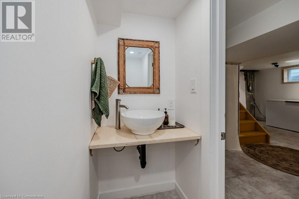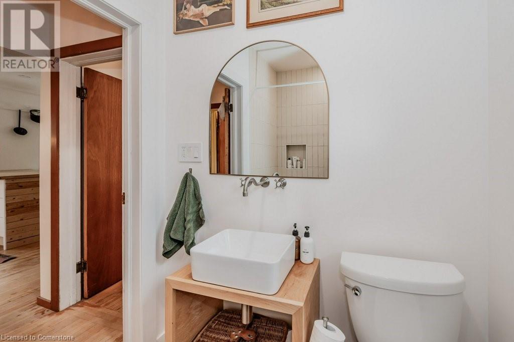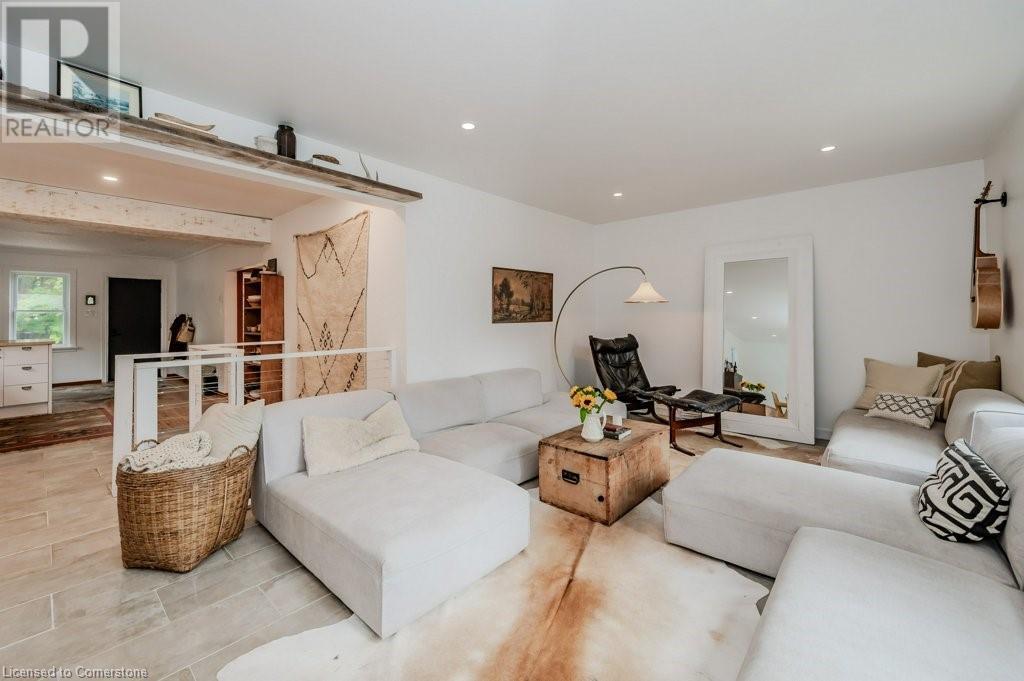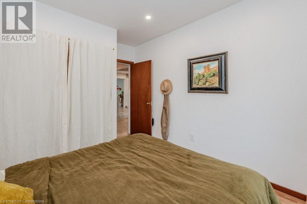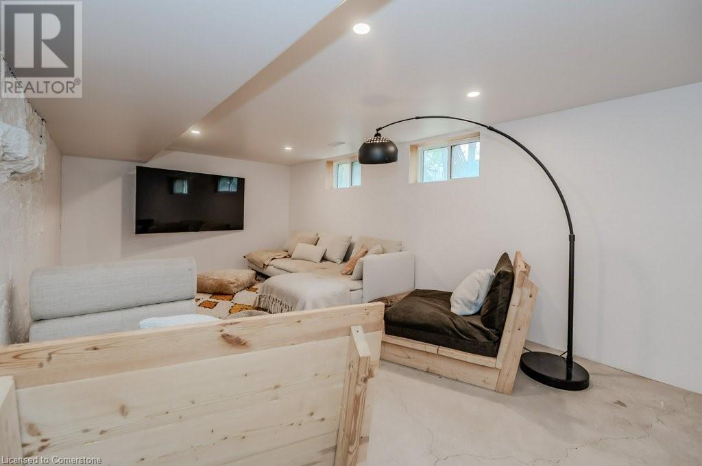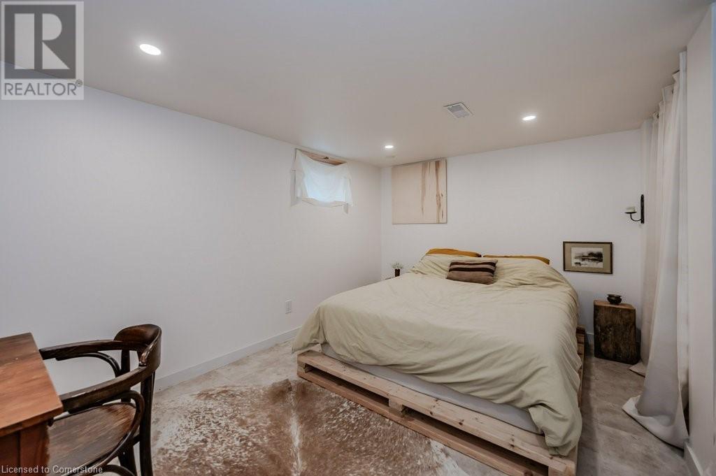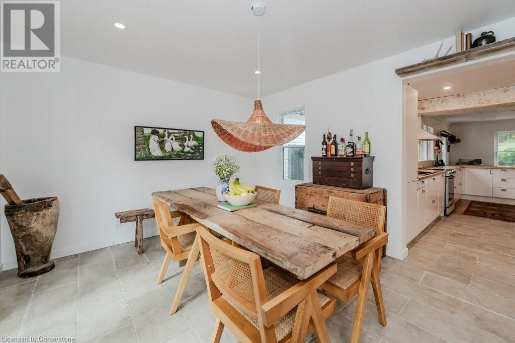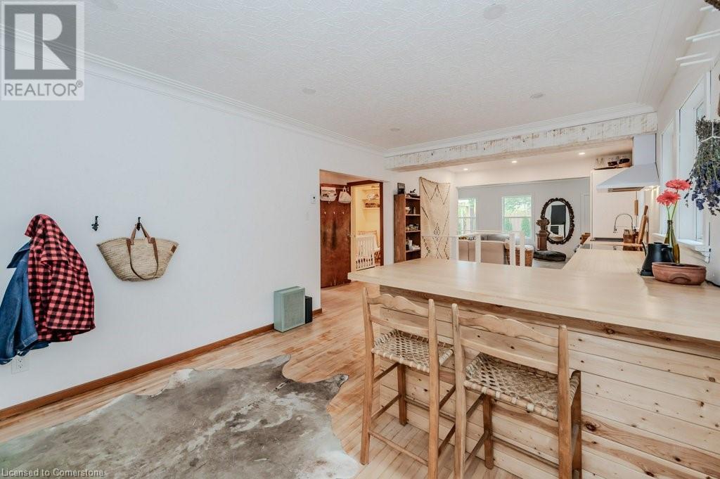 WOW!! Rustic mid-century modern and organically updated detached bungalow located on a dead-end tree-lined street with an extra wide 62’ x 115’ lot. This move-in ready home offers over 1,900 square feet of living space featuring 2+2 bedrooms and 1.5 bathrooms, with an open-concept main floor living area. The main floor is perfect for entertaining flowing seamlessly from the foyer into the bright, open-concept kitchen (new 2022), boasting bamboo countertops with breakfast bar, a chef-style sink, and built-in hidden appliances. Beyond you will find the dining area and cozy living room with a double garden door walk-out to the extensive deck. Rustic hardwood floors in the main floor bedrooms, and open stairs leading to the finished basement (2022). The lower level offers a family room with a stylish concrete floor and a handy bar area with floating built-in cabinets, a third bedroom, and a versatile flex room that can be used as a 4th bedroom, den, home office, or hobby space. A convenient 2-piece bathroom, laundry, and storage as well. The exterior showcases a newly landscaped yard, complete with new fencing, cedar bushes, front & back decks, a fun hammock chair swing structure to enjoy, and a resealed driveway for up to four cars. Also, a fully insulated oversized single-car garage (currently used as a home gym). Additional highlights include pot lights found throughout the home, carpet-free living, a newer furnace installed in 2022, an owned water softener, updated wiring, and new plumbing extending to the road. Conveniently located close to trails, parks, and schools, this home is ready for you to move in and enjoy! (id:55009)