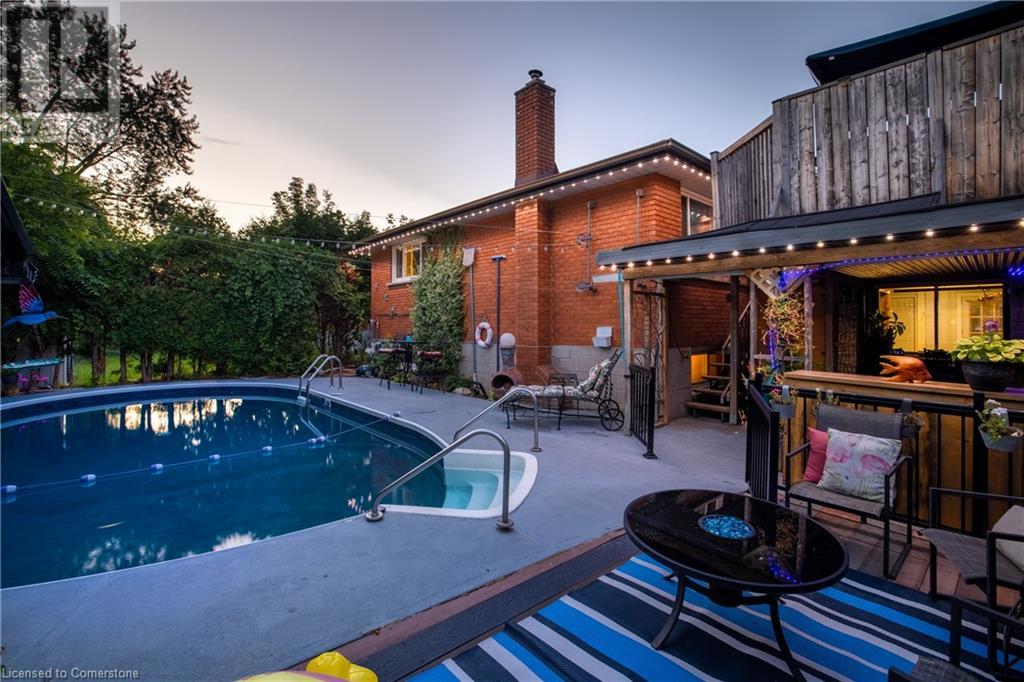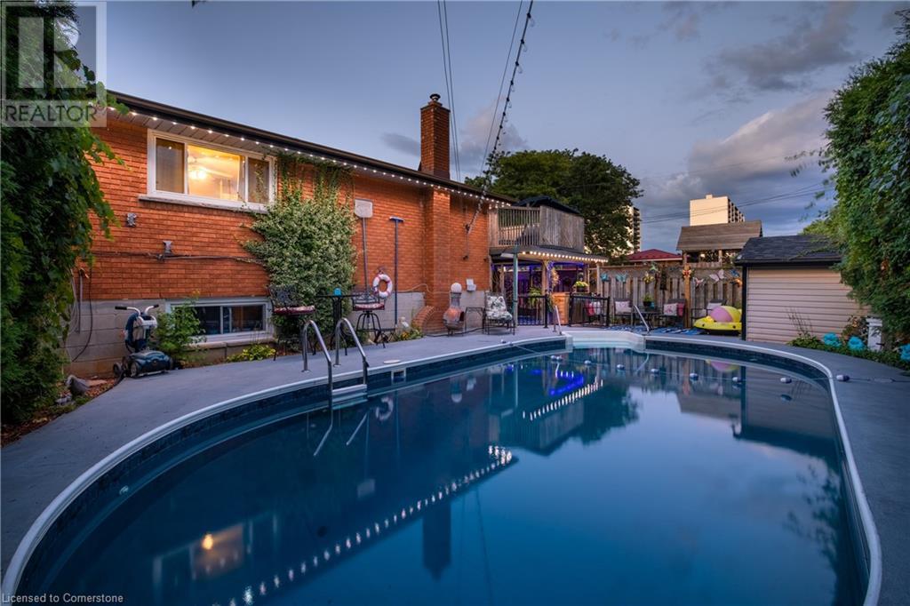 Welcome to 37 Gainsborough Rd, Hamilton! This stunning 4-level backsplit offers a perfect blend of style, comfort, and convenience. Featuring 4 spacious bedrooms and 2 full bathrooms, this home is ideal for growing families or those seeking extra space. The updated kitchen boasts elegant granite countertops, perfect for both casual meals and entertaining. Step outside to your private oasis, featuring a beautiful in-ground pool, a covered patio perfect for outdoor gatherings, and a private infrared sauna. The home is elegantly accented with gemstone lighting surrounding the entire property. The fully equipped in-law suite, with its own separate entrance, includes a full kitchen and cozy family room—ideal for extended family or potential rental income. Recent updates include a new roof (2021), furnace, and A/C (2021), providing peace of mind for years to come. Located just steps from Eastgate Square, bus routes, and with easy access to the QEW, this home is perfectly situated near all amenities. Don’t miss out on this incredible opportunity to own a versatile and well-maintained property in a prime location! (id:55009)