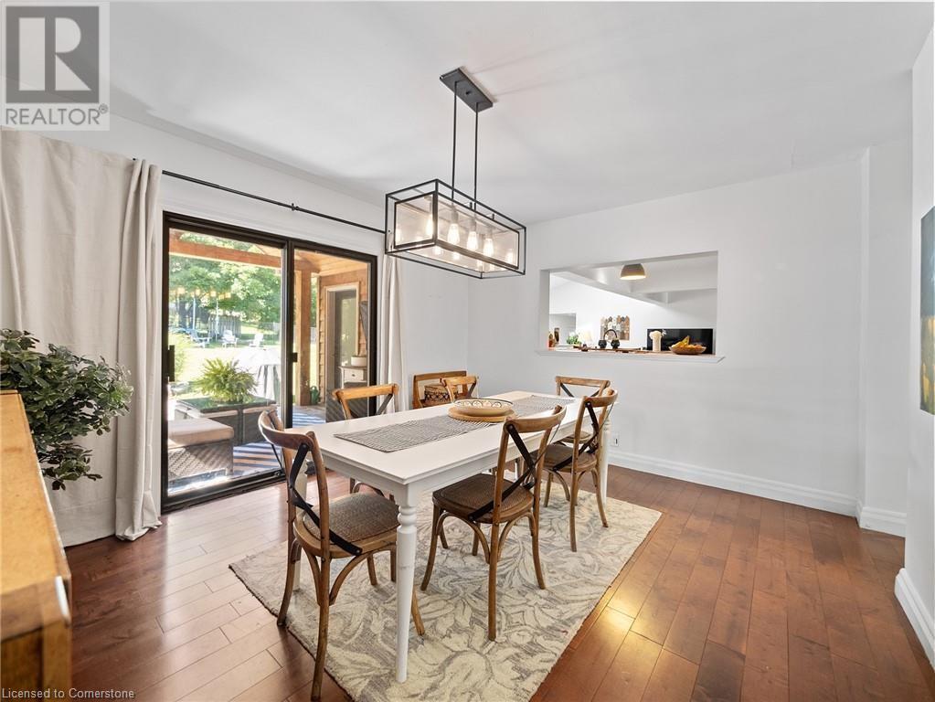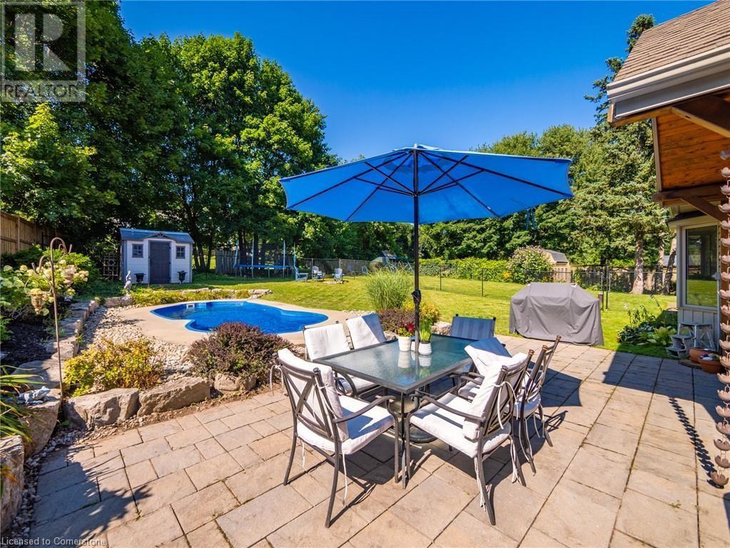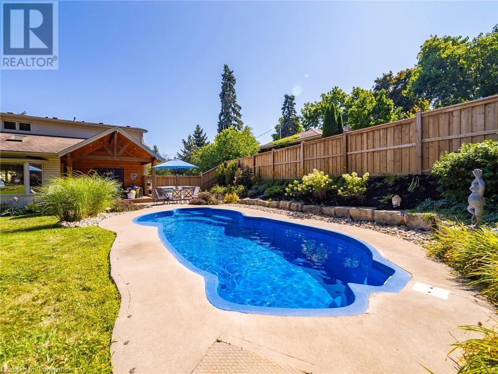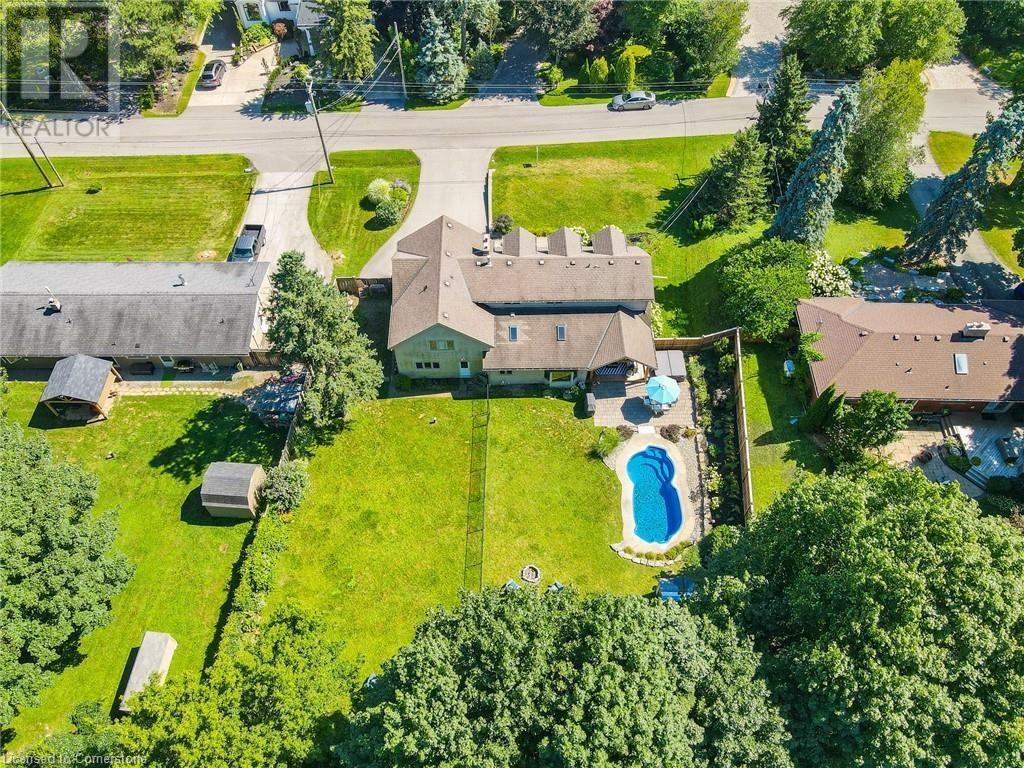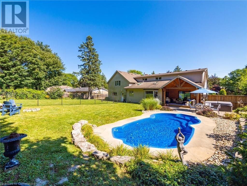 Naturally blending its modern interior, sleek exterior, and picturesque landscape, this 3000 sqft home is a true work of art. Feel the city drop into the background as you pull into the driveway. The exterior of the home features clean lines and a minimalist architectural design. Your private backyard oasis features a timber covered porch, salt water pool, hot tub, and is fully fenced. The home has a soft colour palette. The open concept living space is flooded with natural light, creating a calm and Zen-like atmosphere. The expansive kitchen features a large island, along with a full wall of windows offering unobstructed views of the property and pool. Upstairs the windows and light continue in four generous size bedrooms, the primary bedroom featuring a large ensuite bath, his and her closets. The main level has an additional bedroom/office, bathroom, dining area, family room, laundry and living area with double sided gas fireplace! The lower level is partially finished with a recroom and crafts room, which can be easily converted into a second kitchen. Located 5 min drive from Dundas with artisan shops, cafes and restaurants. Walk to trails, Webster’s Falls, Christie Lake Conservation Area, Spencer Gorge and Dundas Peak. 15 min drive to Aldershot Go Station and hwy 403 to Toronto and Niagara. This modern home is a true masterpiece, offering the perfect balance of luxury and natural beauty. (id:55009)