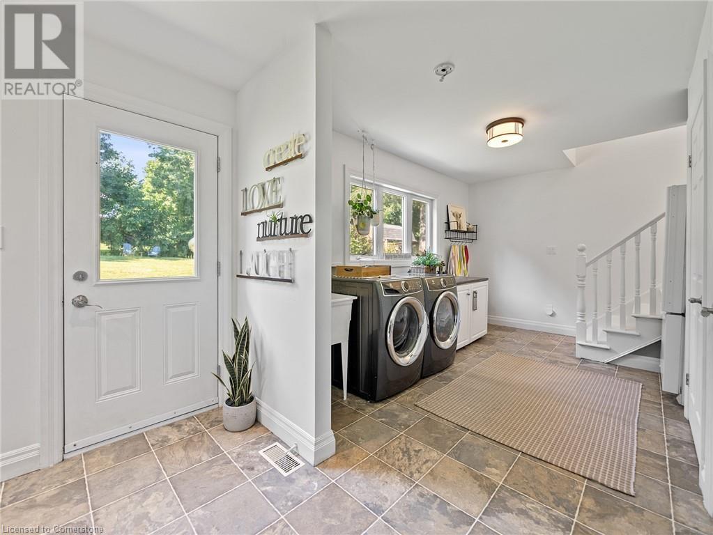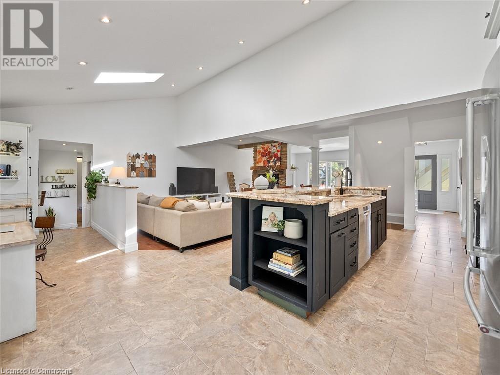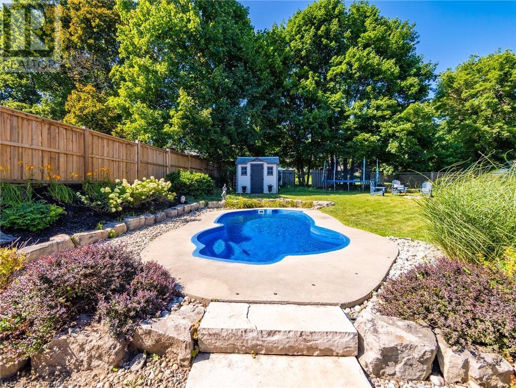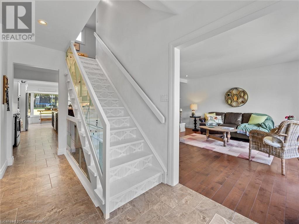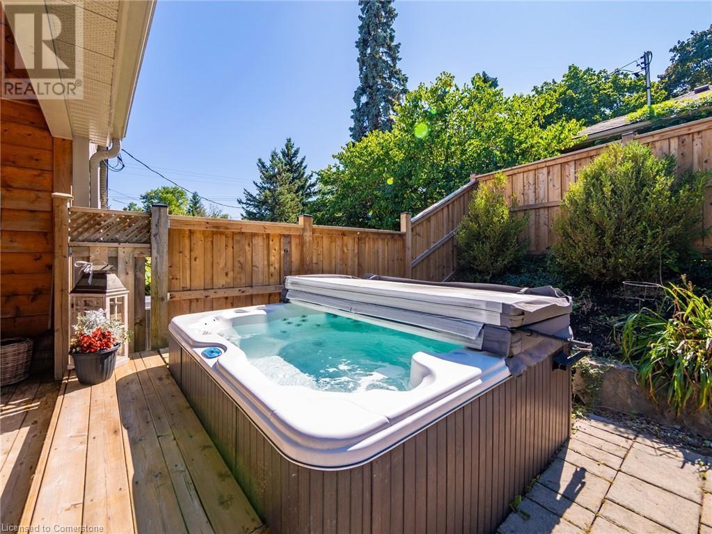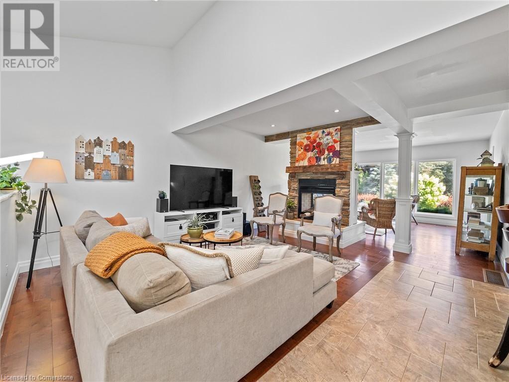 Naturally blending its modern interior, sleek exterior, and picturesque landscape, this 3000 sqft home is a true work of art. Feel the city drop into the background as you pull into the driveway. The exterior of the home features clean lines and a minimalist architectural design. Your private backyard oasis features a timber covered porch, salt water pool, hot tub, and is fully fenced. The home has a soft colour palette. The open concept living space is flooded with natural light, creating a calm and Zen-like atmosphere. The expansive kitchen features a large island, along with a full wall of windows offering unobstructed views of the property and pool. Upstairs the windows and light continue in four generous size bedrooms, the primary bedroom featuring a large ensuite bath, his and her closets. The main level has an additional bedroom/office, bathroom, dining area, family room, laundry and living area with double sided gas fireplace! The lower level is partially finished with a recroom and crafts room, which can be easily converted into a second kitchen. Located 5 min drive from Dundas with artisan shops, cafes and restaurants. Walk to trails, Webster’s Falls, Christie Lake Conservation Area, Spencer Gorge and Dundas Peak. 15 min drive to Aldershot Go Station and hwy 403 to Toronto and Niagara. This modern home is a true masterpiece, offering the perfect balance of luxury and natural beauty. (id:55009)