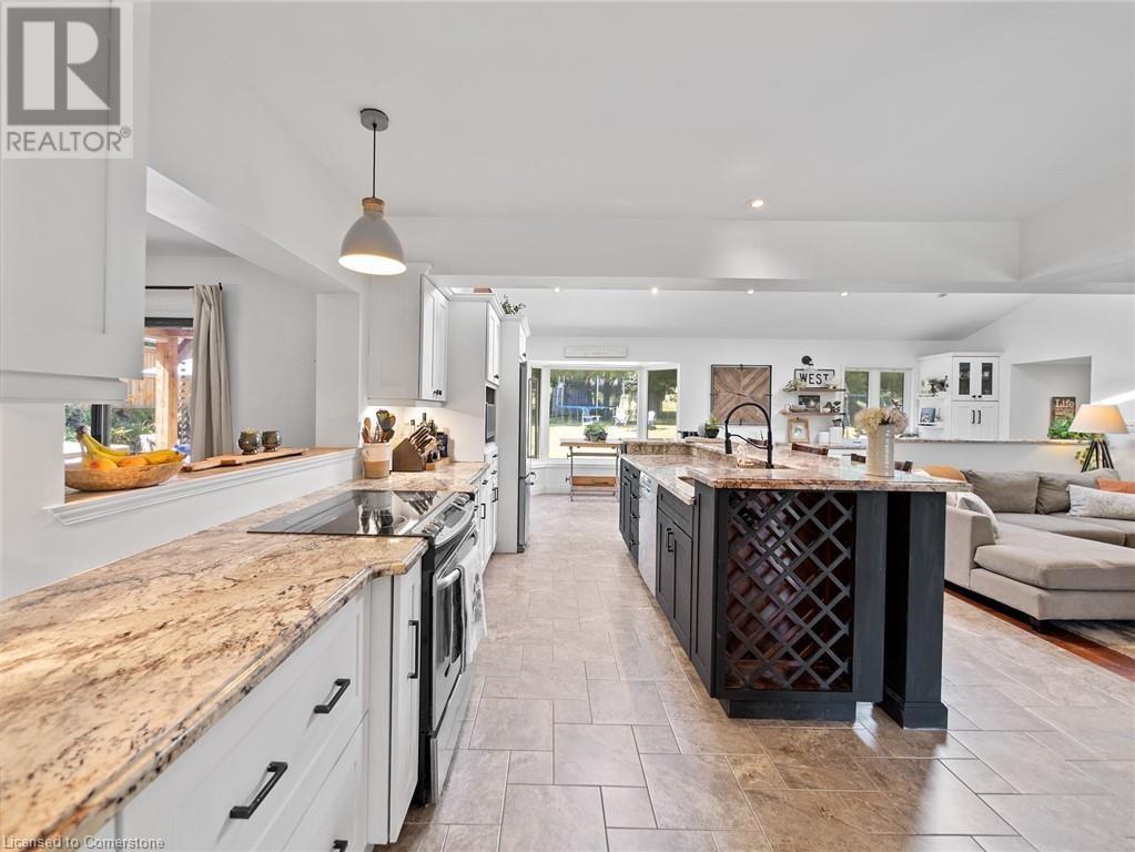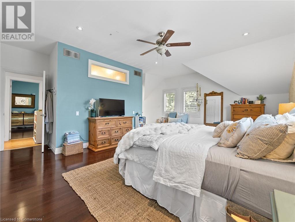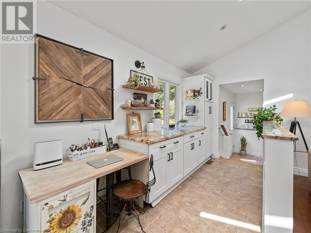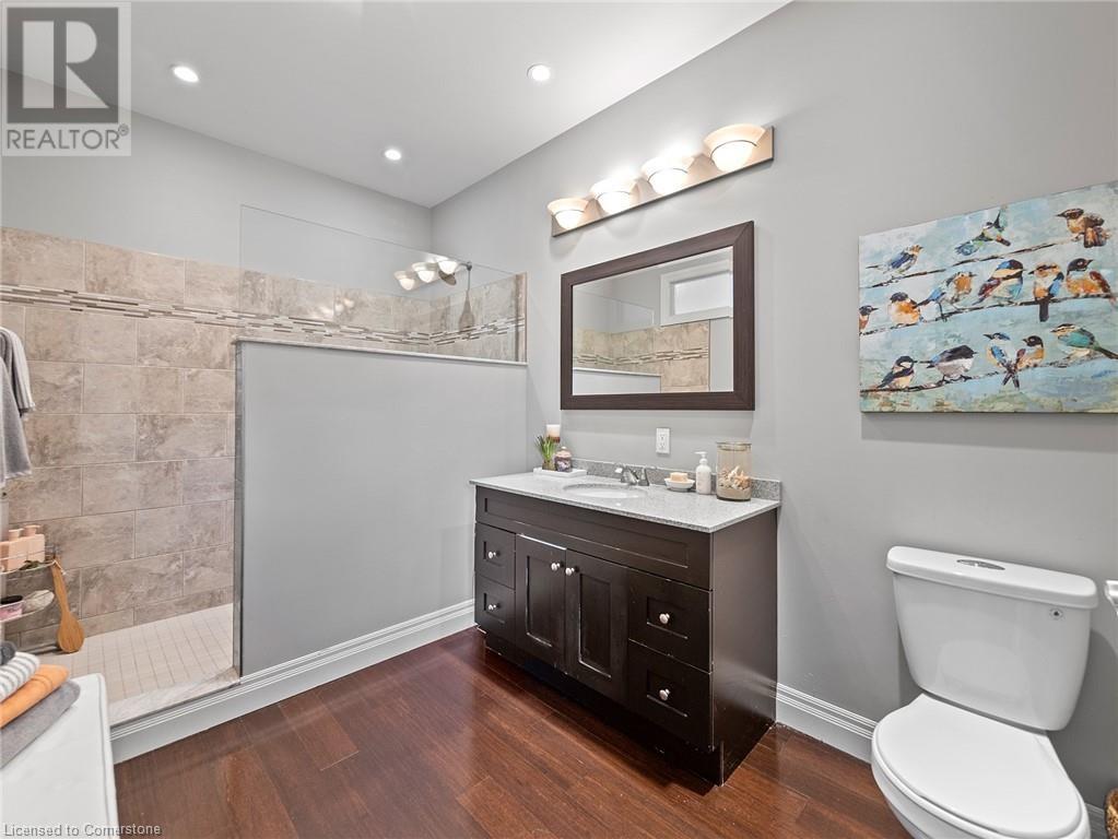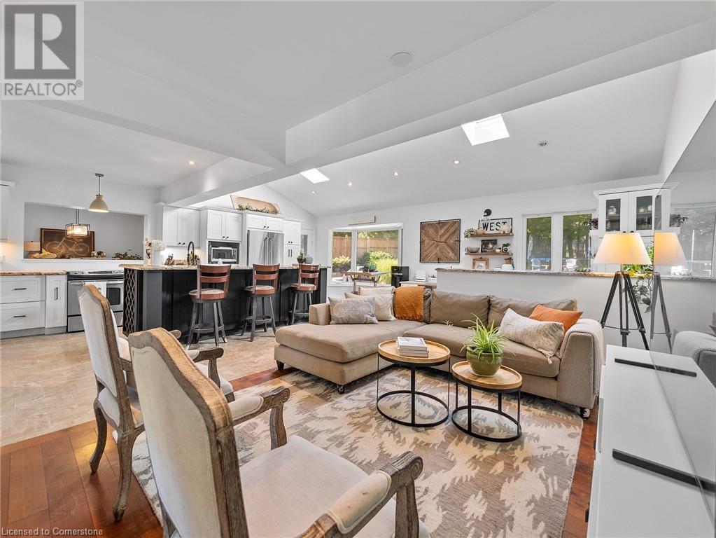 Naturally blending its modern interior, sleek exterior, and picturesque landscape, this 3000 sqft home is a true work of art. Feel the city drop into the background as you pull into the driveway. The exterior of the home features clean lines and a minimalist architectural design. Your private backyard oasis features a timber covered porch, salt water pool, hot tub, and is fully fenced. The home has a soft colour palette. The open concept living space is flooded with natural light, creating a calm and Zen-like atmosphere. The expansive kitchen features a large island, along with a full wall of windows offering unobstructed views of the property and pool. Upstairs the windows and light continue in four generous size bedrooms, the primary bedroom featuring a large ensuite bath, his and her closets. The main level has an additional bedroom/office, bathroom, dining area, family room, laundry and living area with double sided gas fireplace! The lower level is partially finished with a recroom and crafts room, which can be easily converted into a second kitchen. Located 5 min drive from Dundas with artisan shops, cafes and restaurants. Walk to trails, Webster’s Falls, Christie Lake Conservation Area, Spencer Gorge and Dundas Peak. 15 min drive to Aldershot Go Station and hwy 403 to Toronto and Niagara. This modern home is a true masterpiece, offering the perfect balance of luxury and natural beauty. (id:55009)